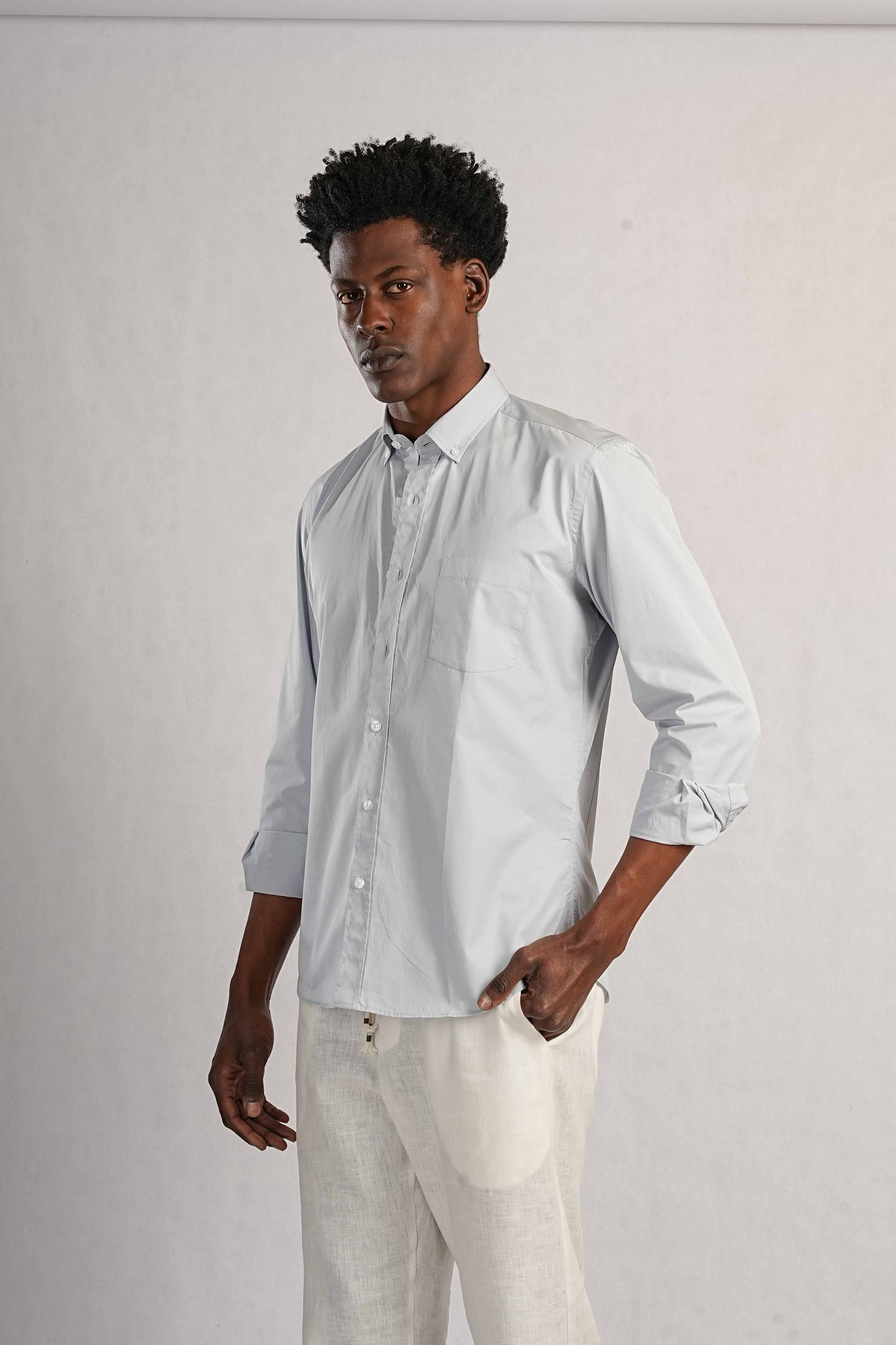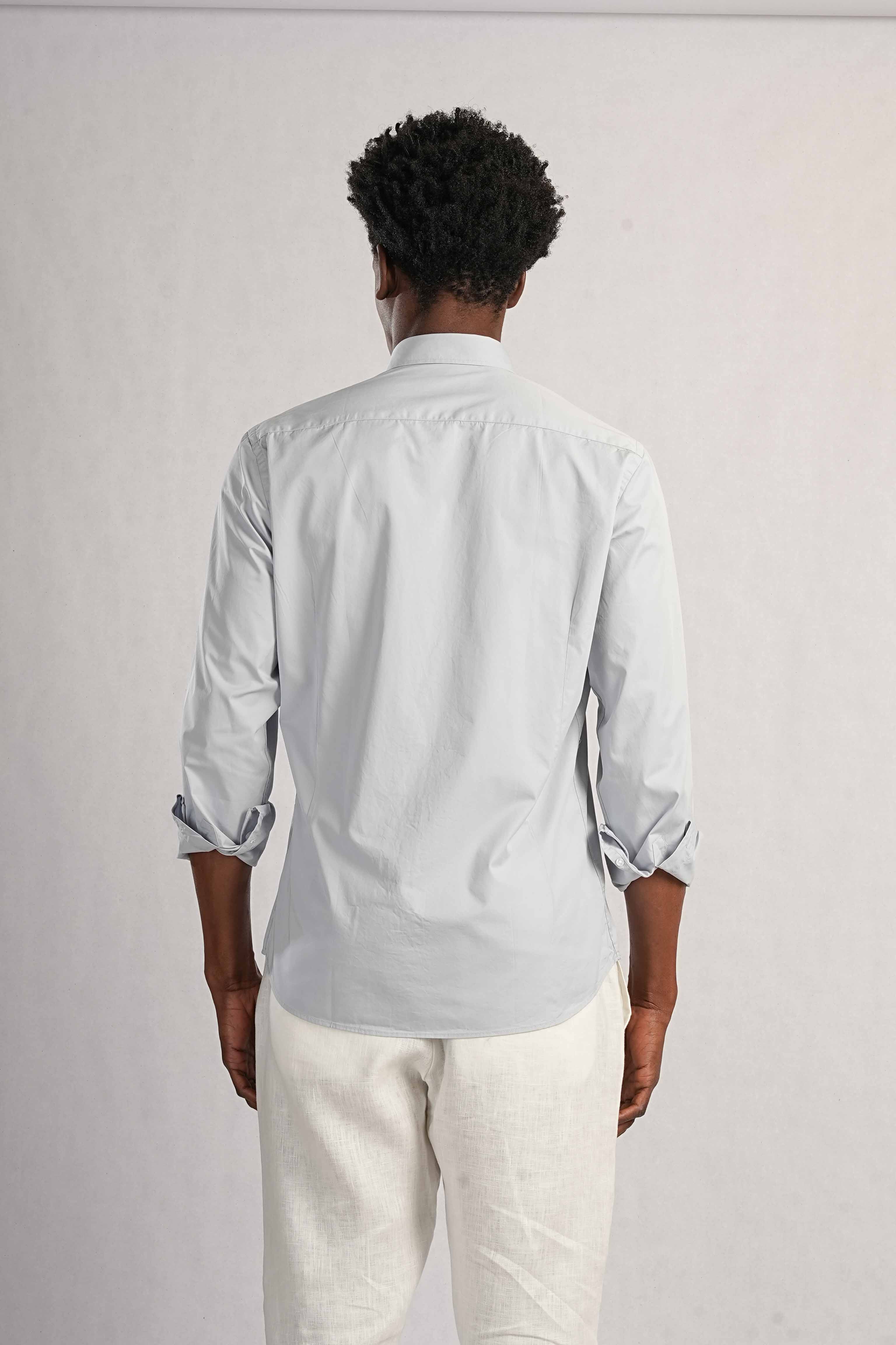 Slim fit shirt made of cotton fabric. Italian collar and long sleeves with buttoned cuffs. Front button closure.