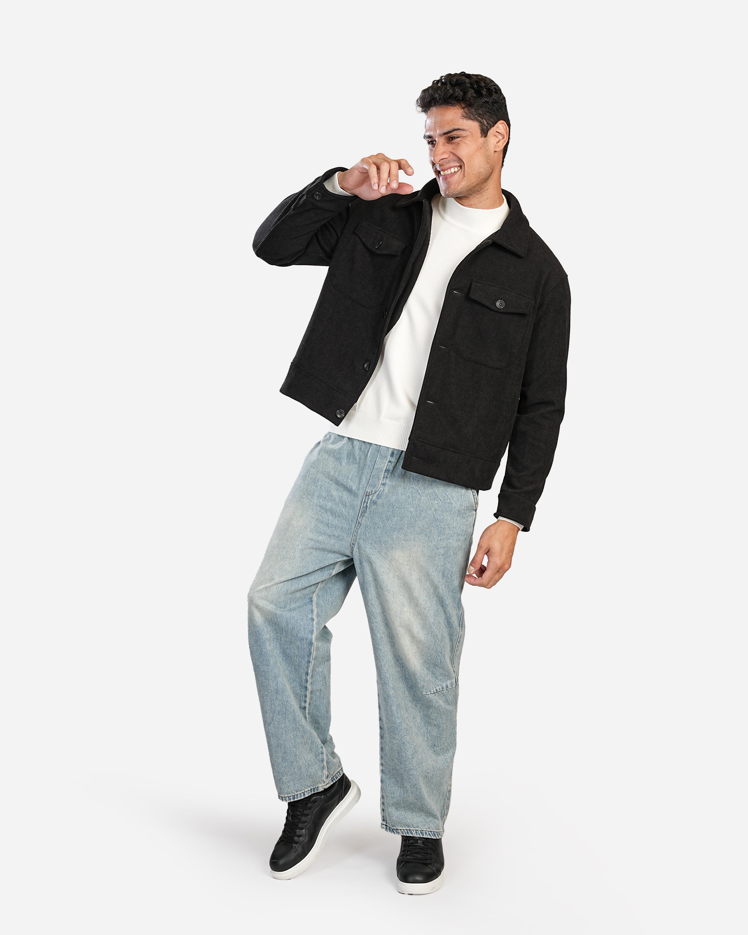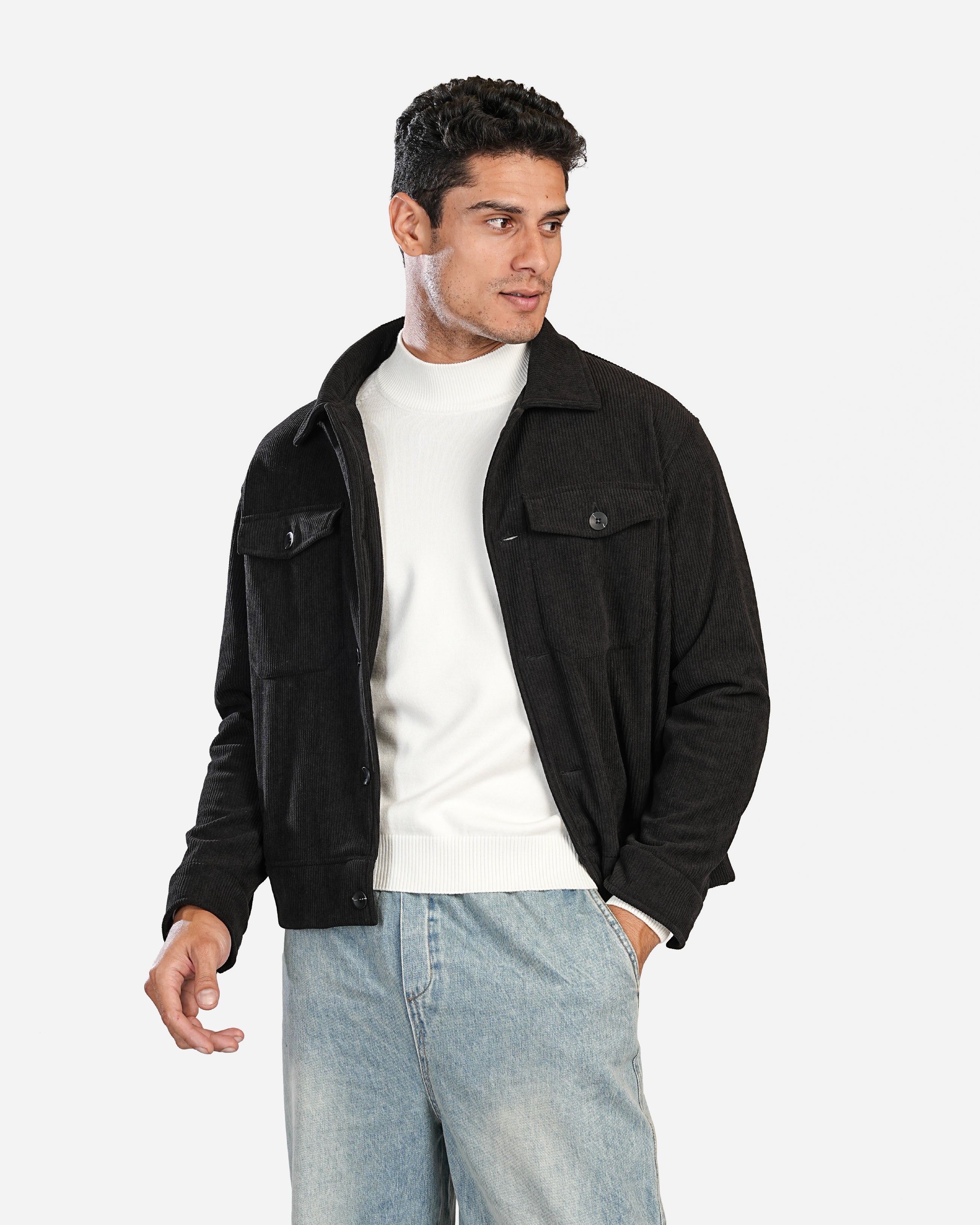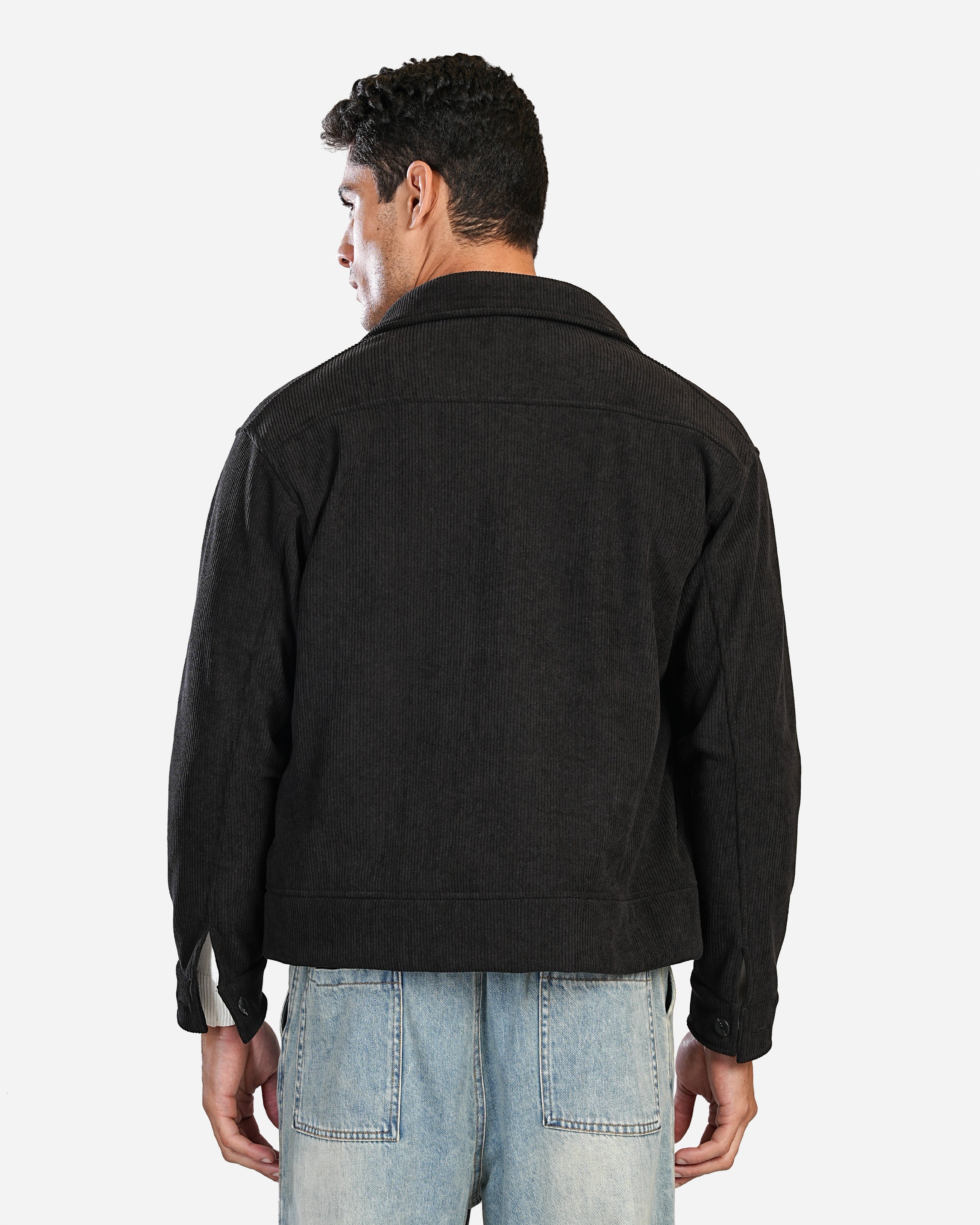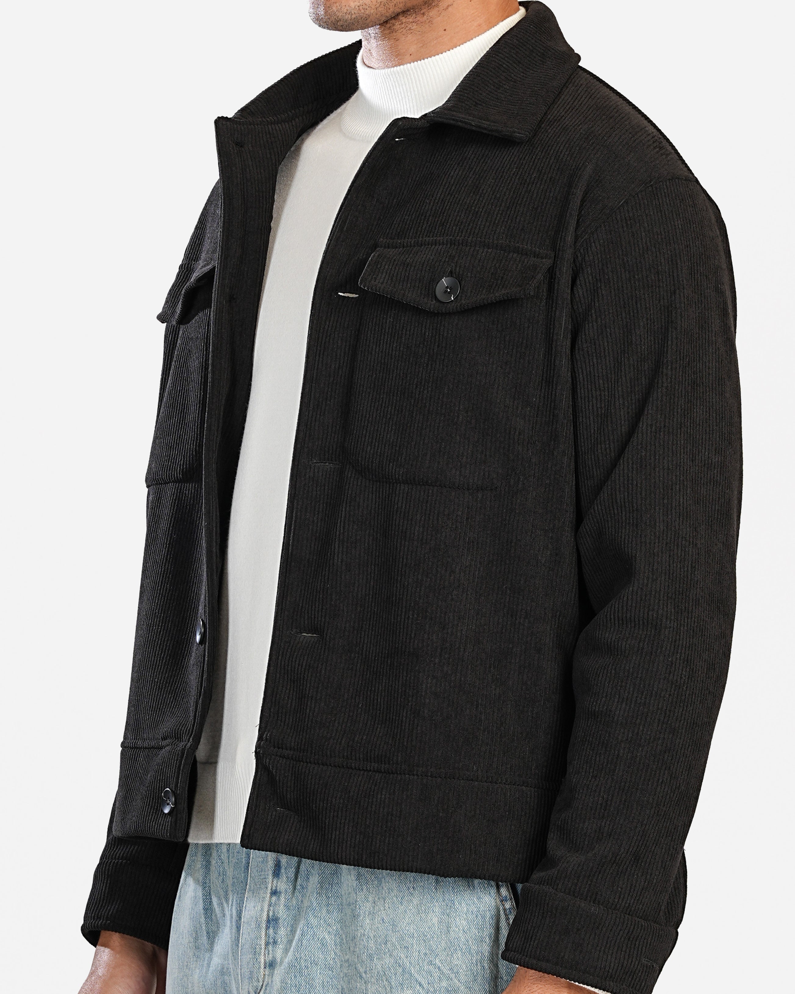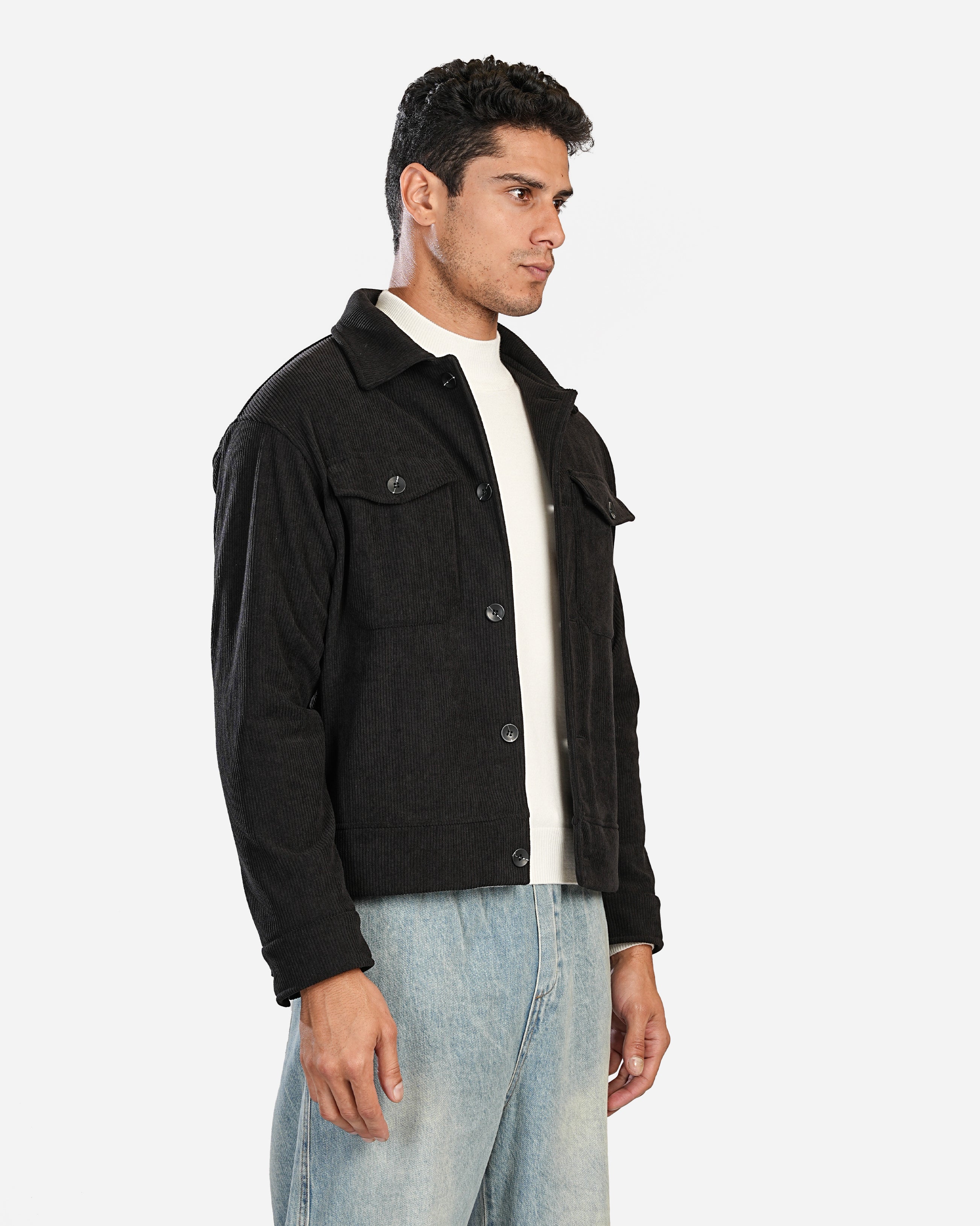 BLACK CORDUROY BUTTON-UP OVERSHIRT W25