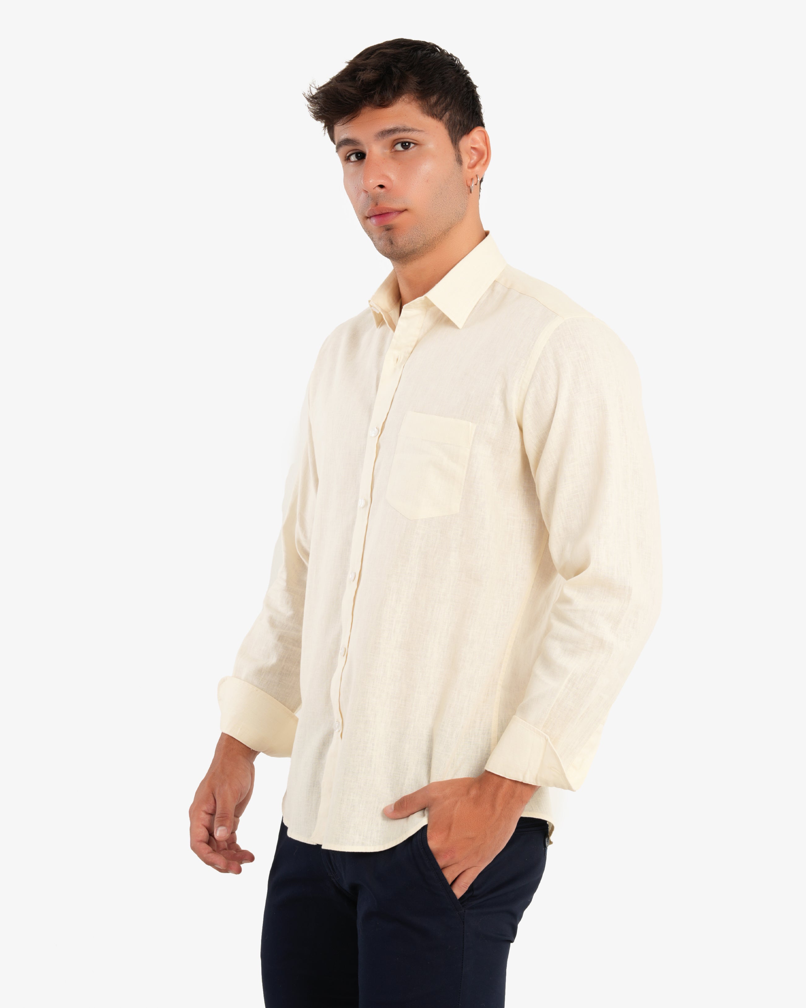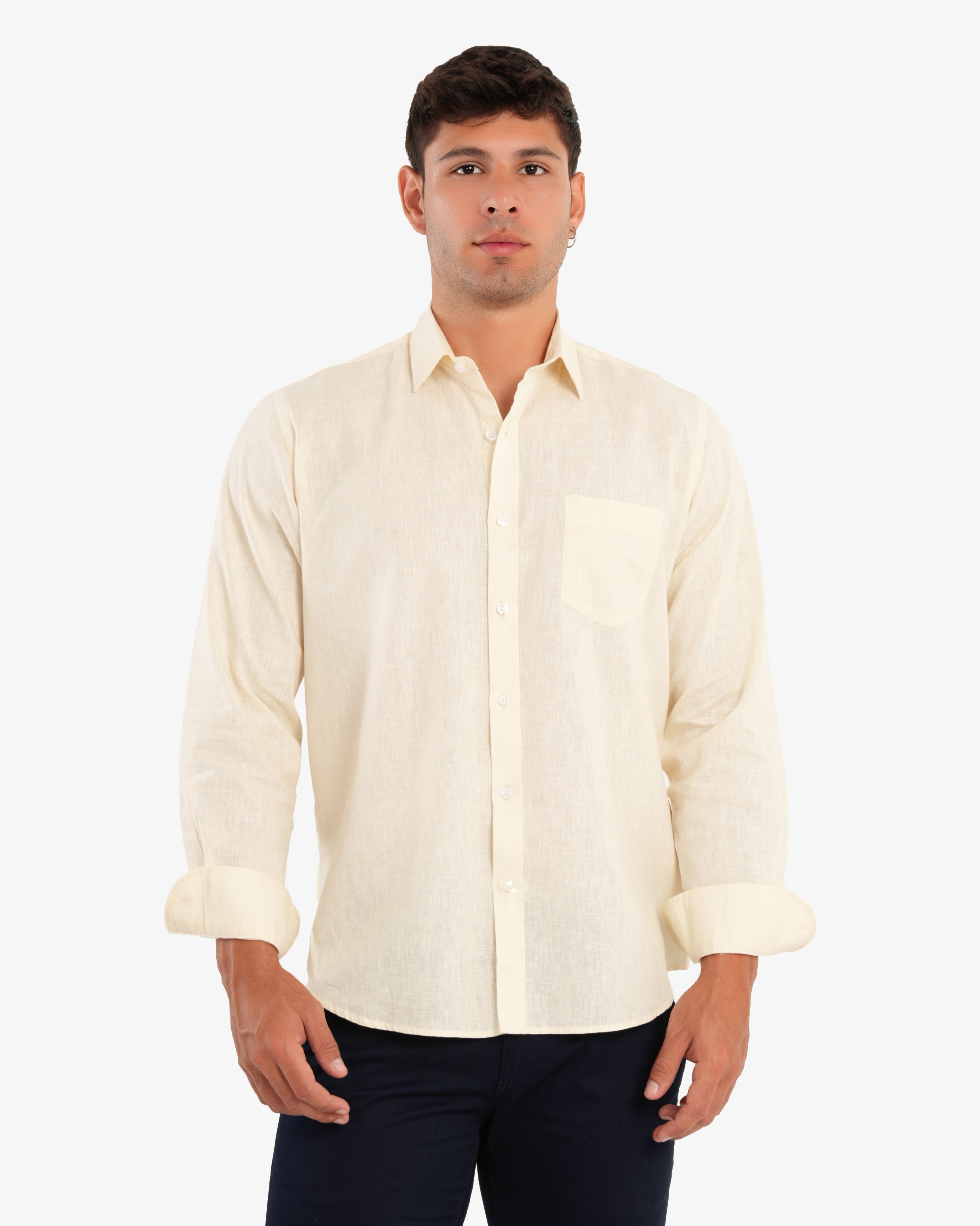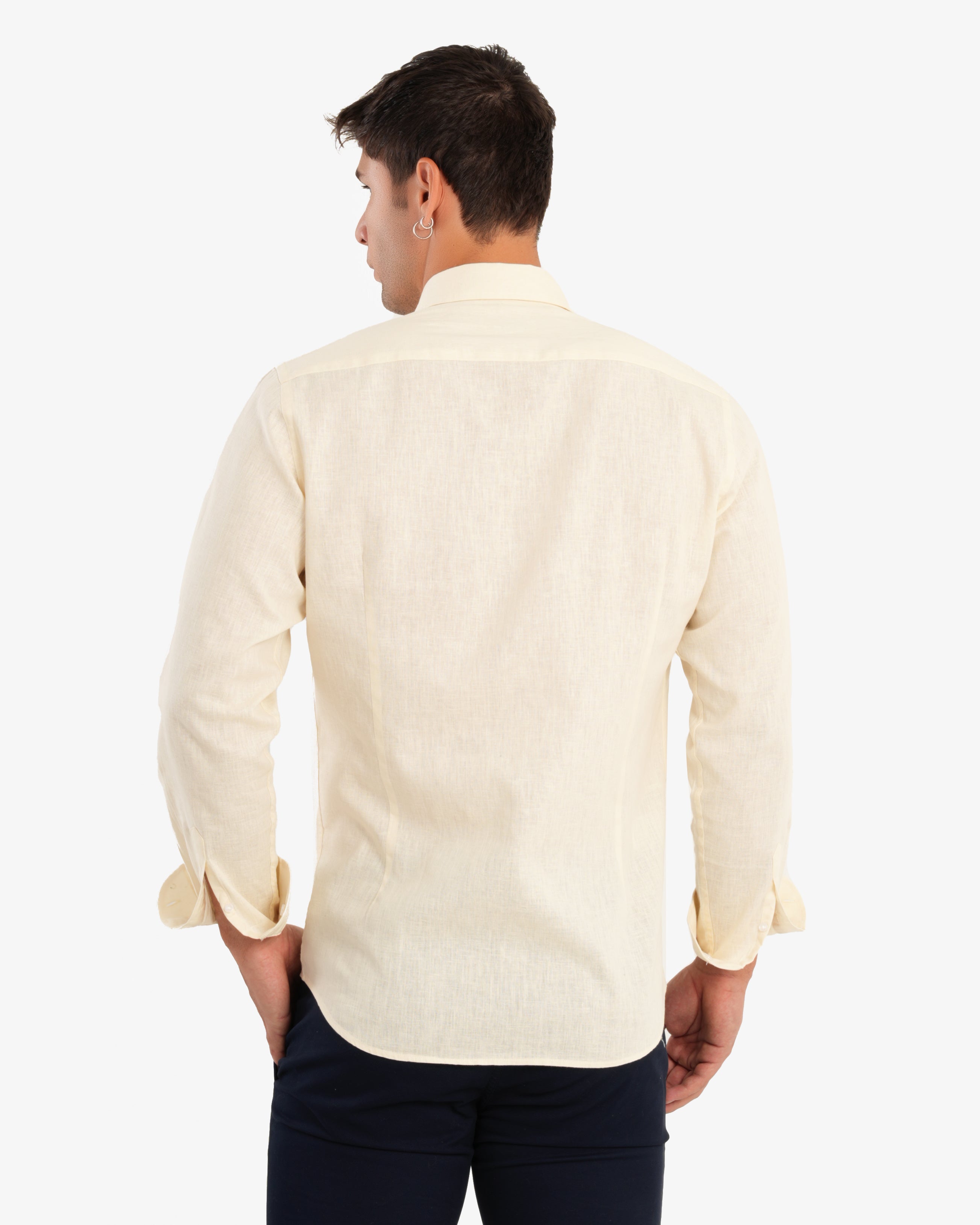 LINEN COTTON BRIGHT YELLOW SLIM FIT SHIRT S26