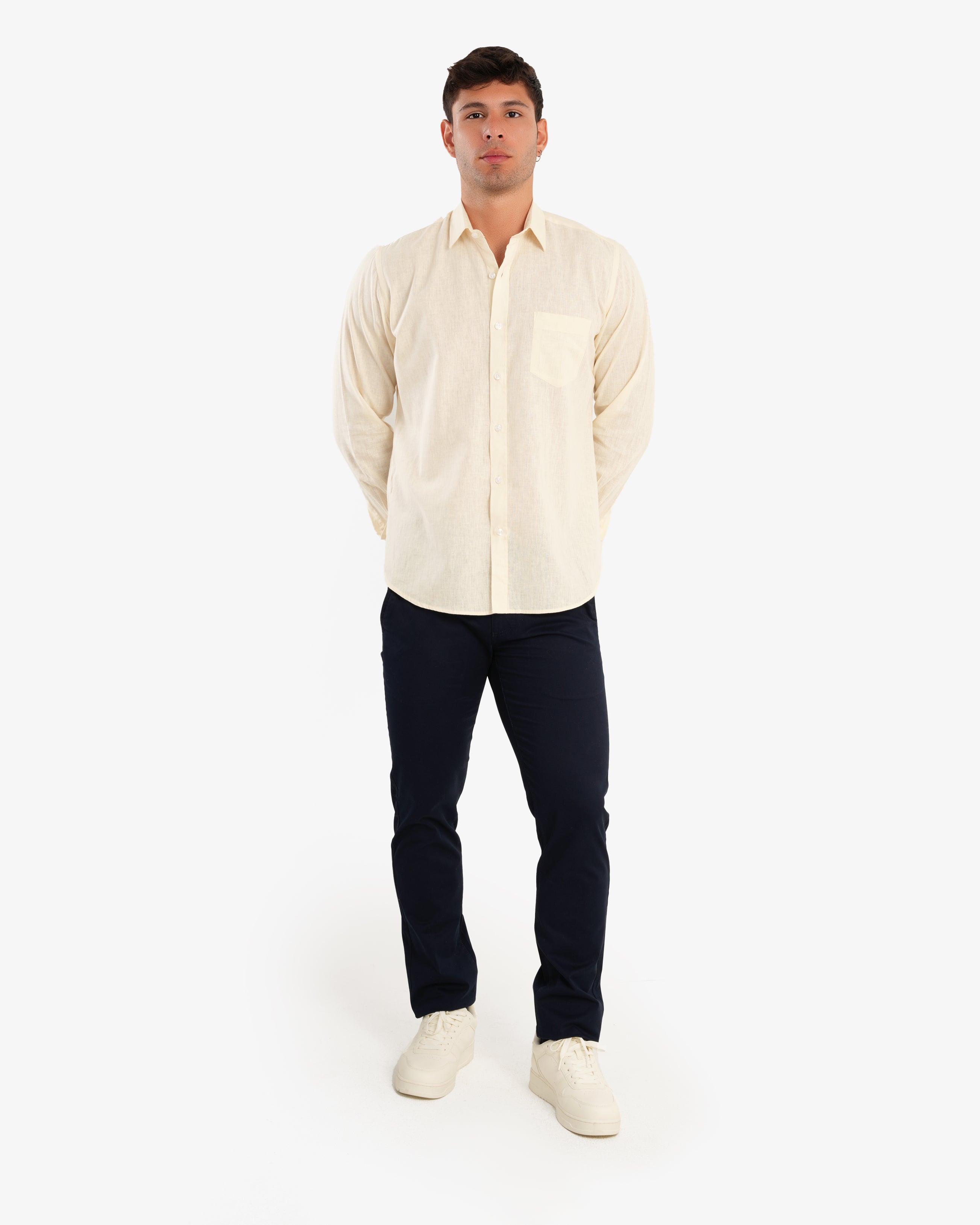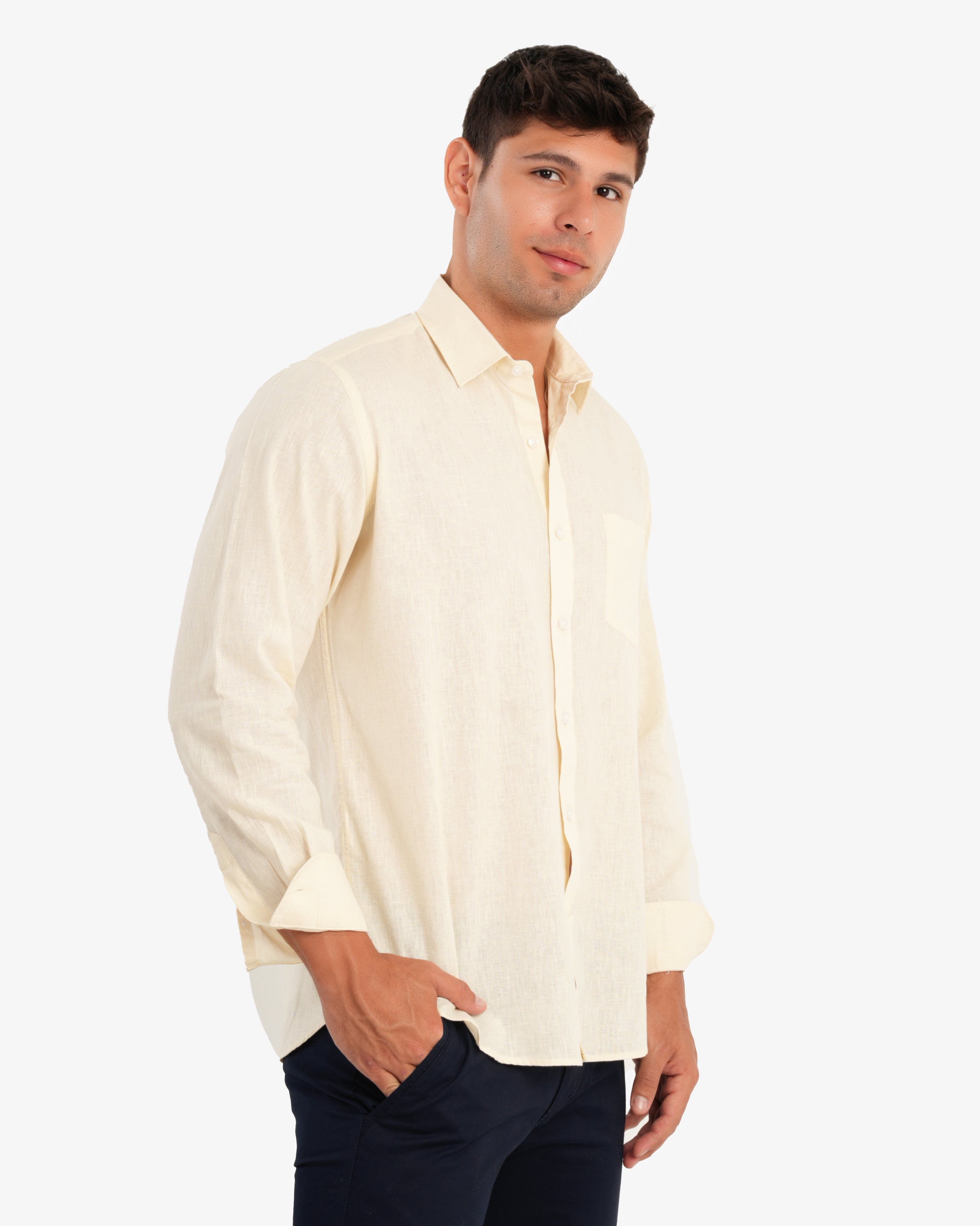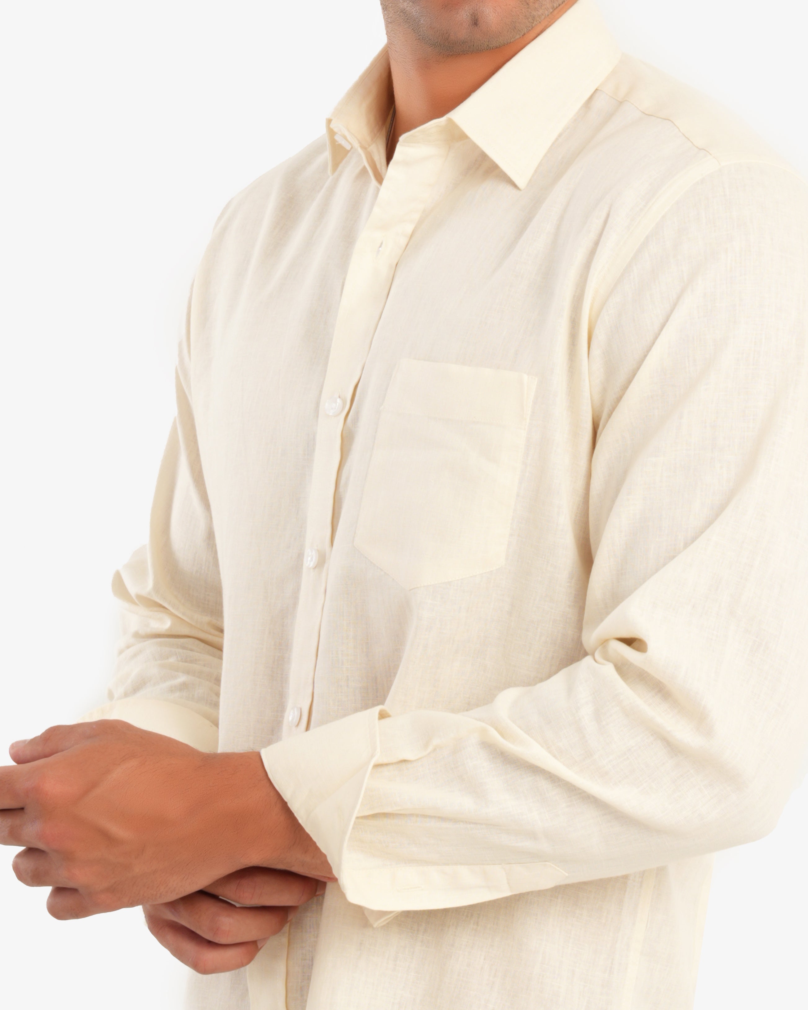 LINEN COTTON BRIGHT YELLOW SLIM FIT SHIRT S26