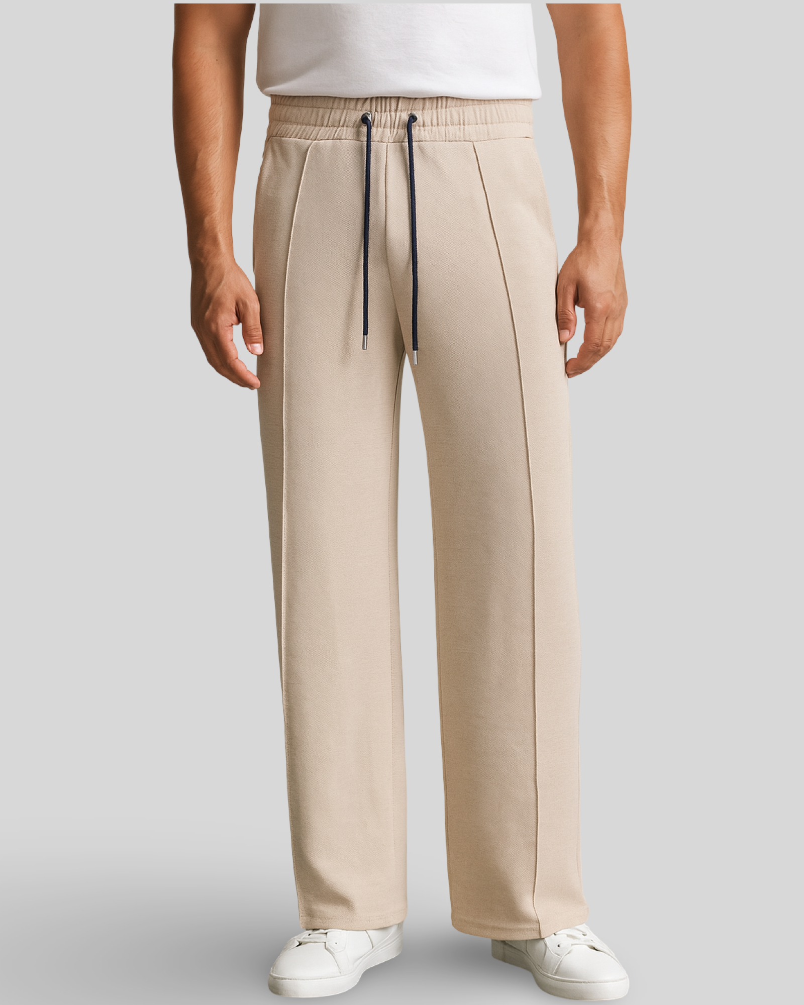Fit and Design: They feature a relaxed, straight-leg cut that tapers slightly towards the ankles, providing a comfortable yet tailored fit. The pants include subtle side stitching details that add a touch of sophistication.