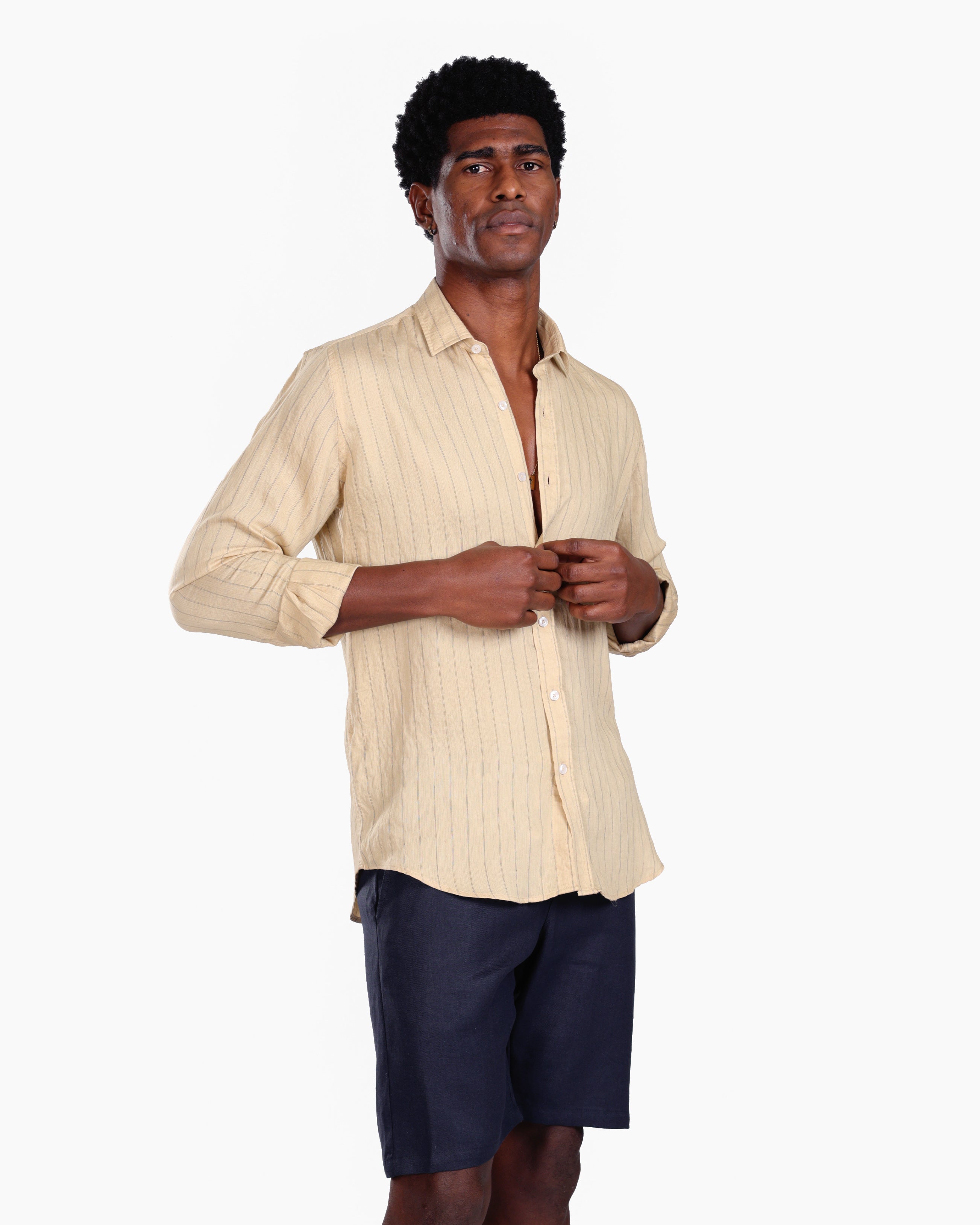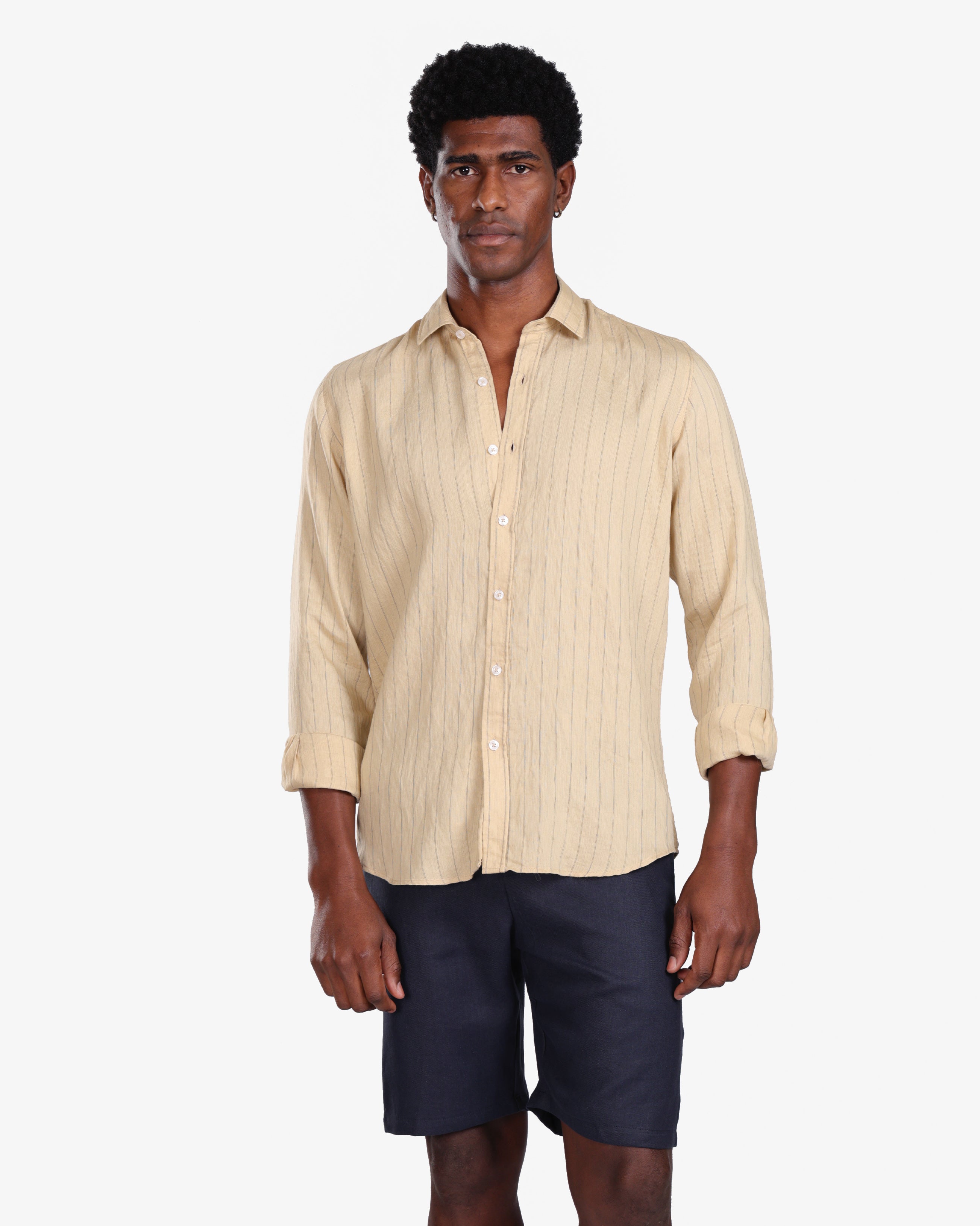 YELLOW PINSTRIPE LINEN SHIRT S26