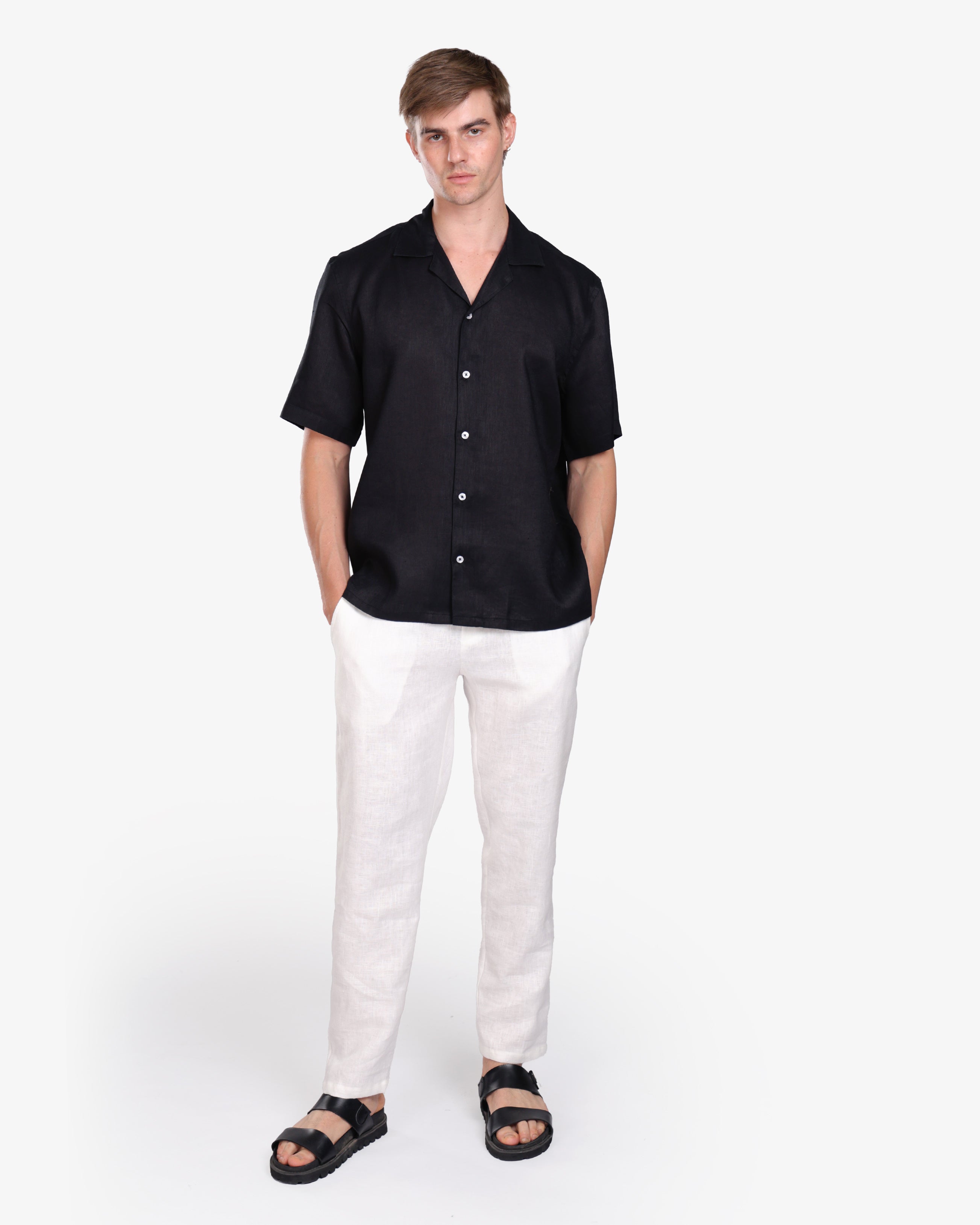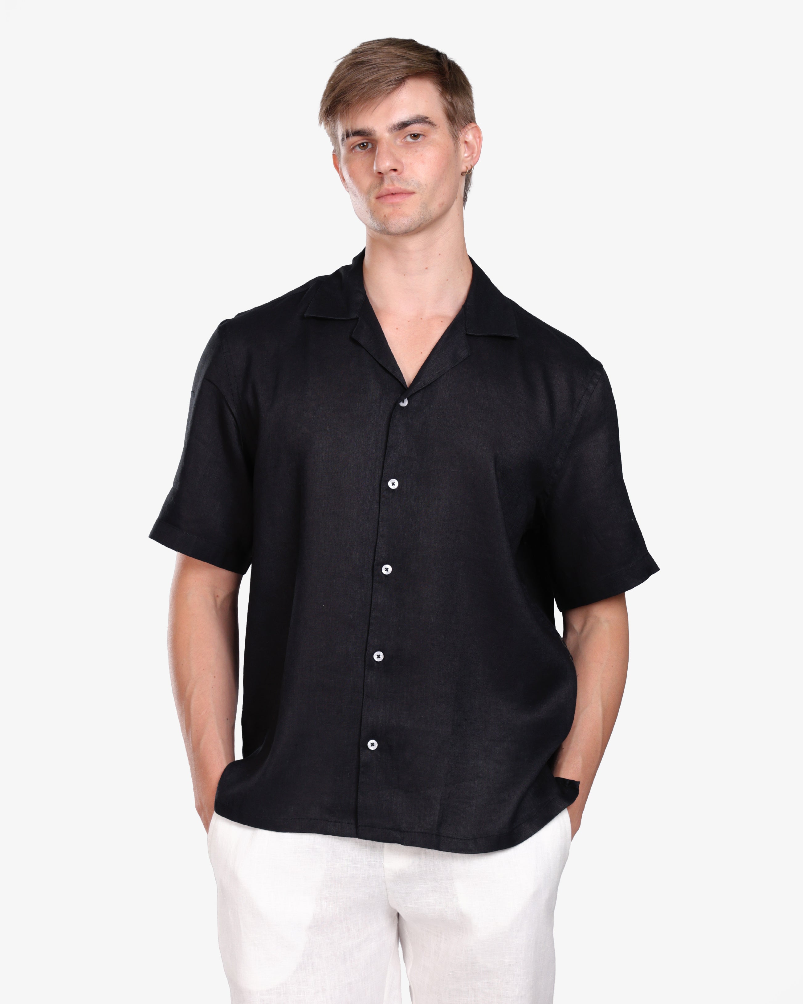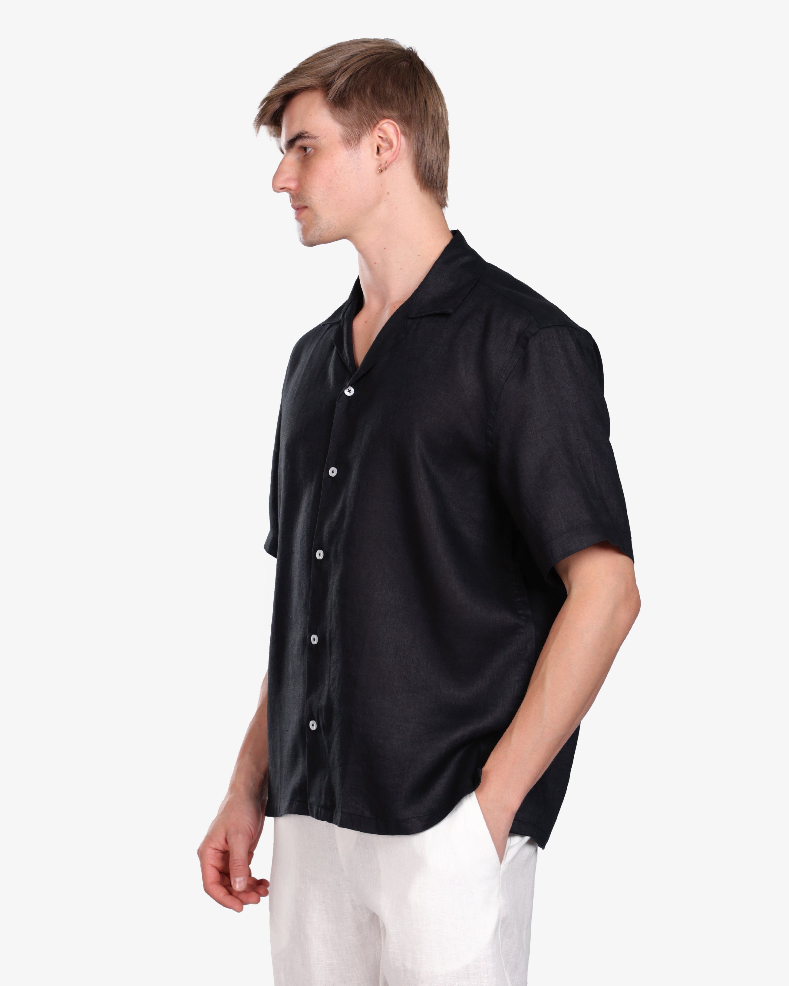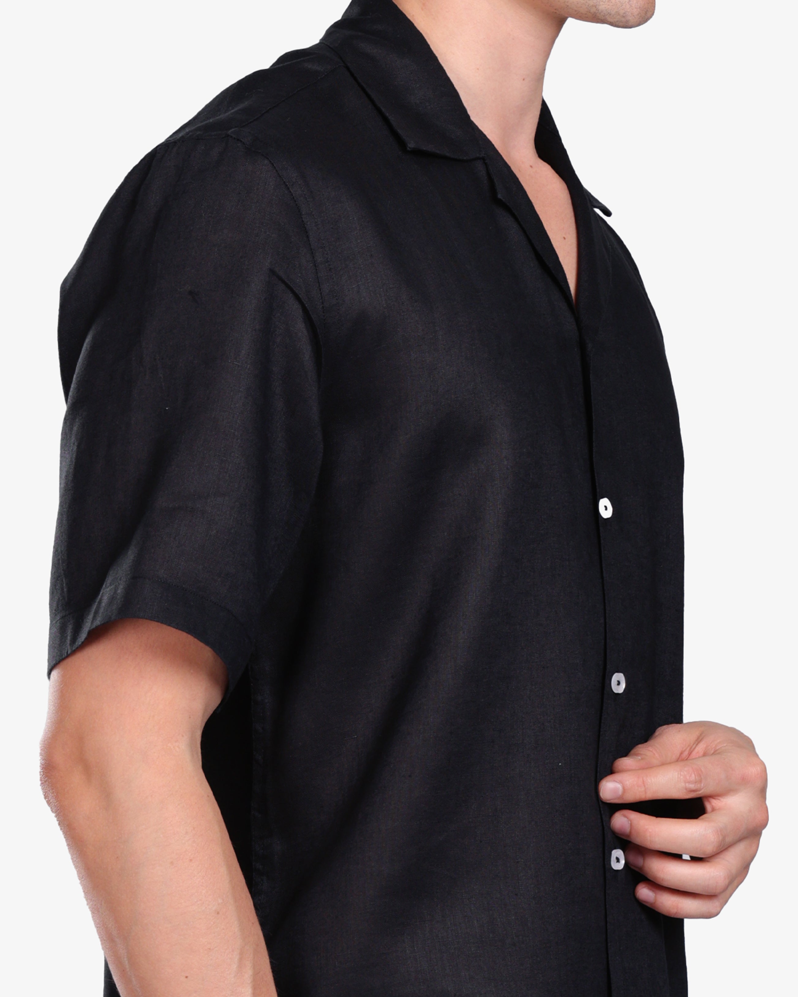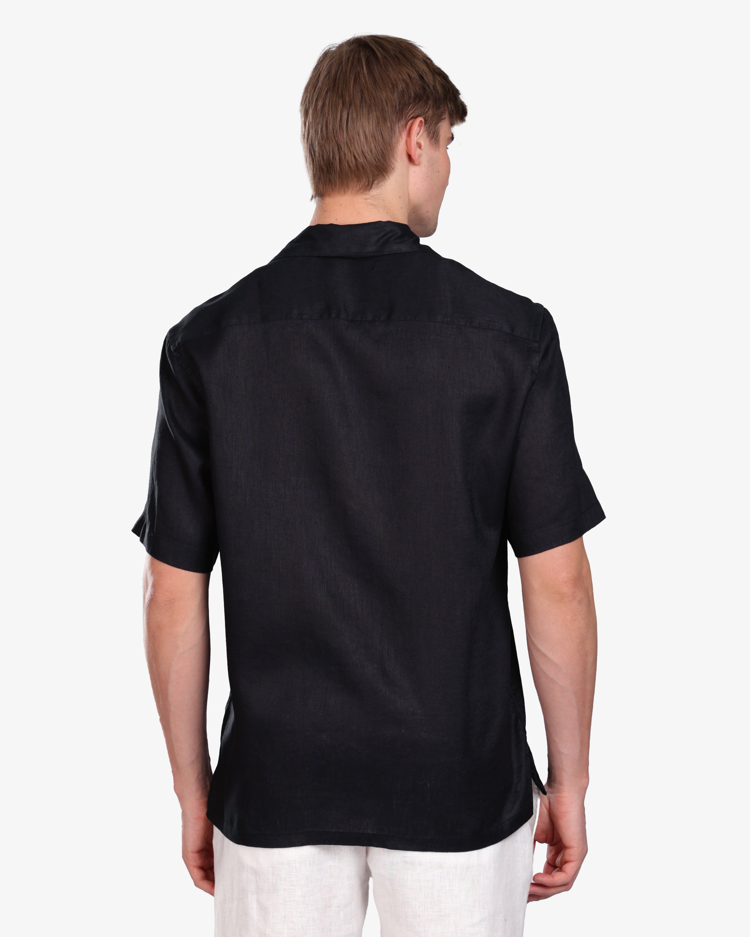 BLACK 100% LINEN SHORT SLEEVE SHIRT S26