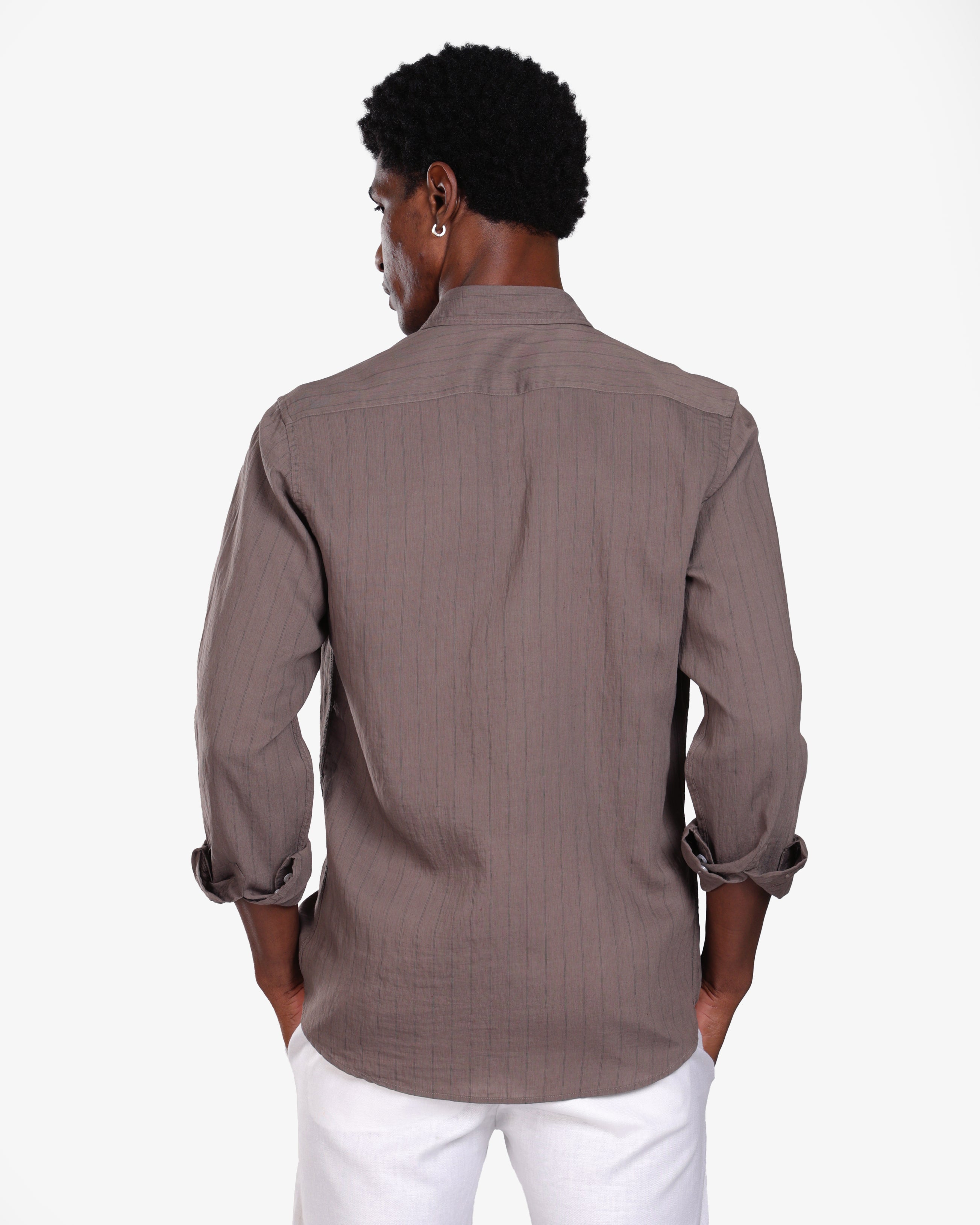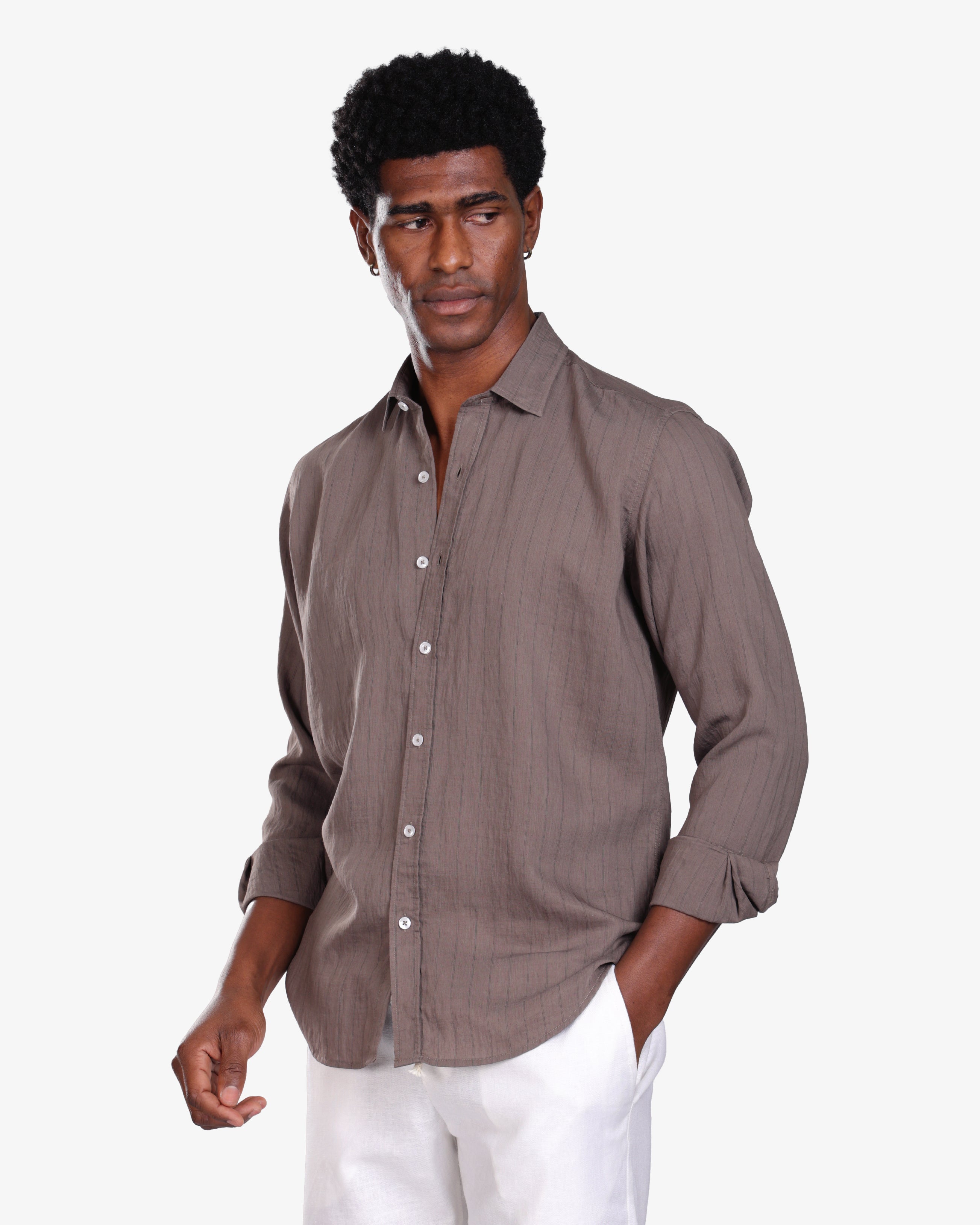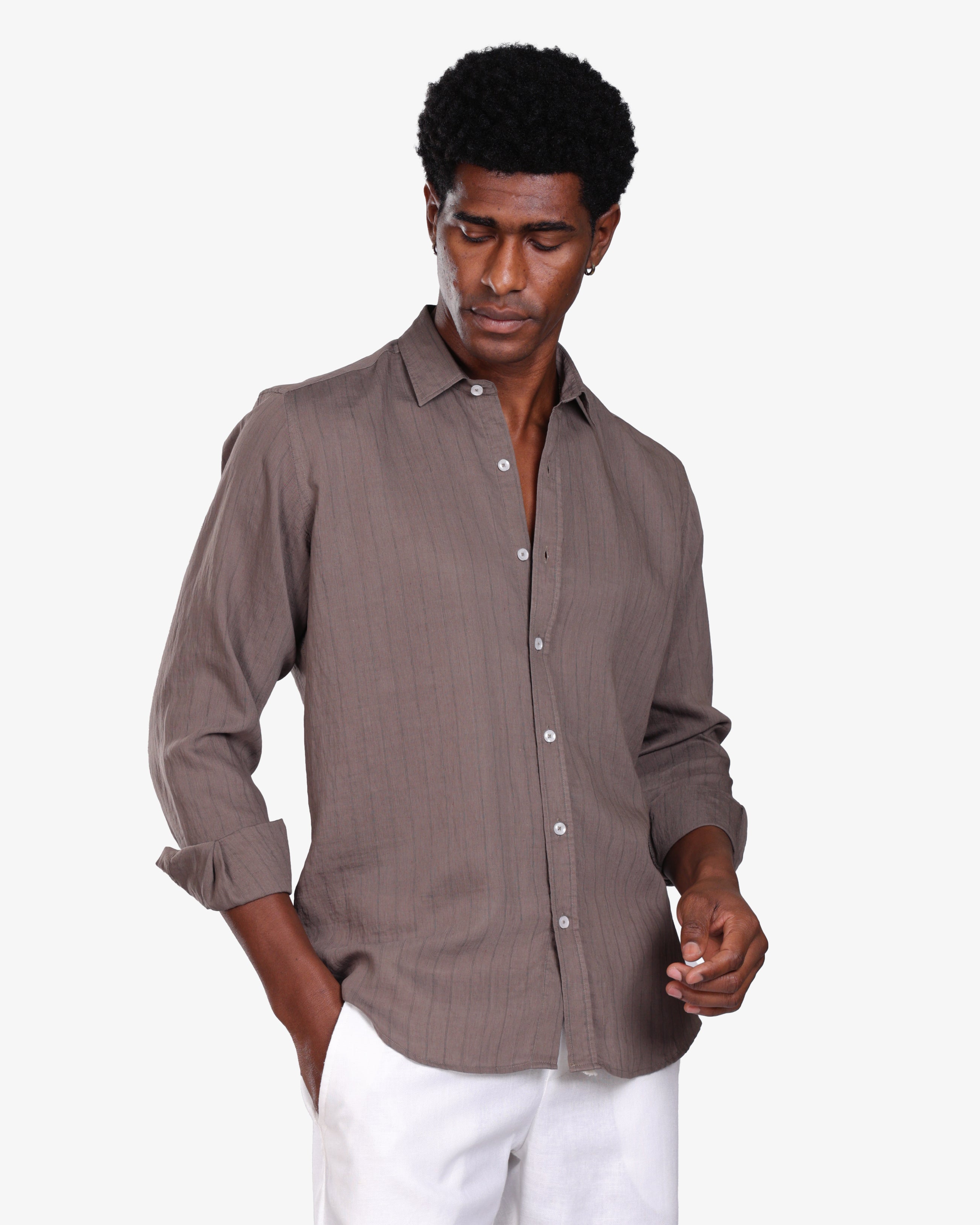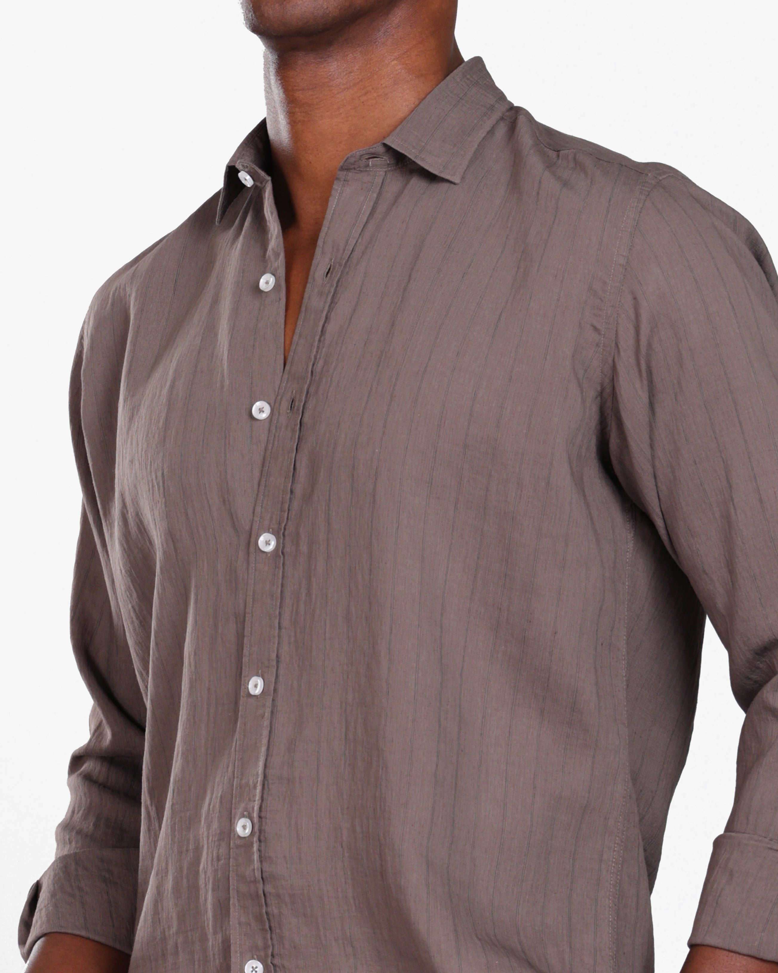 SEPIA BROWN PINSTRIPE LINEN SHIRT S26