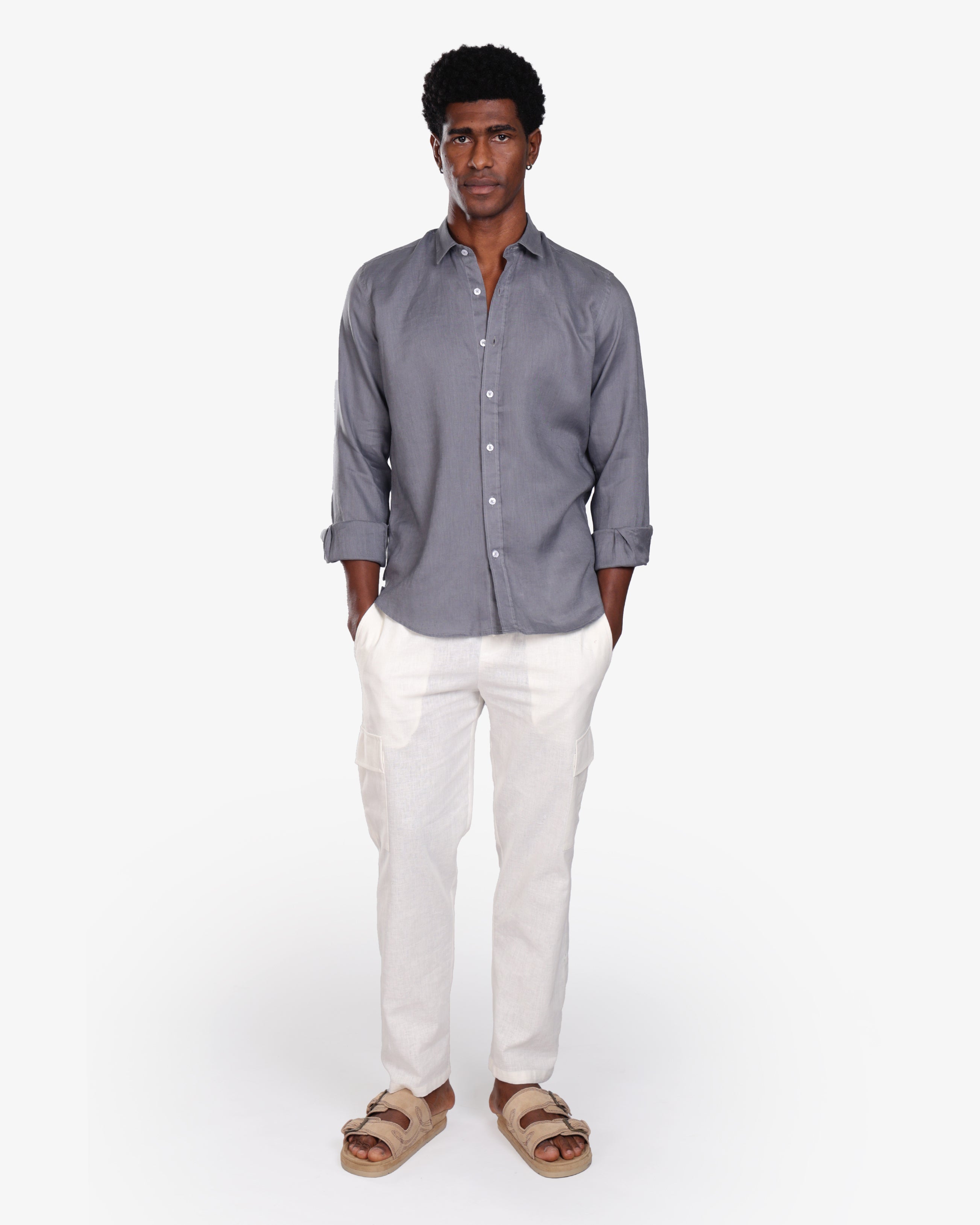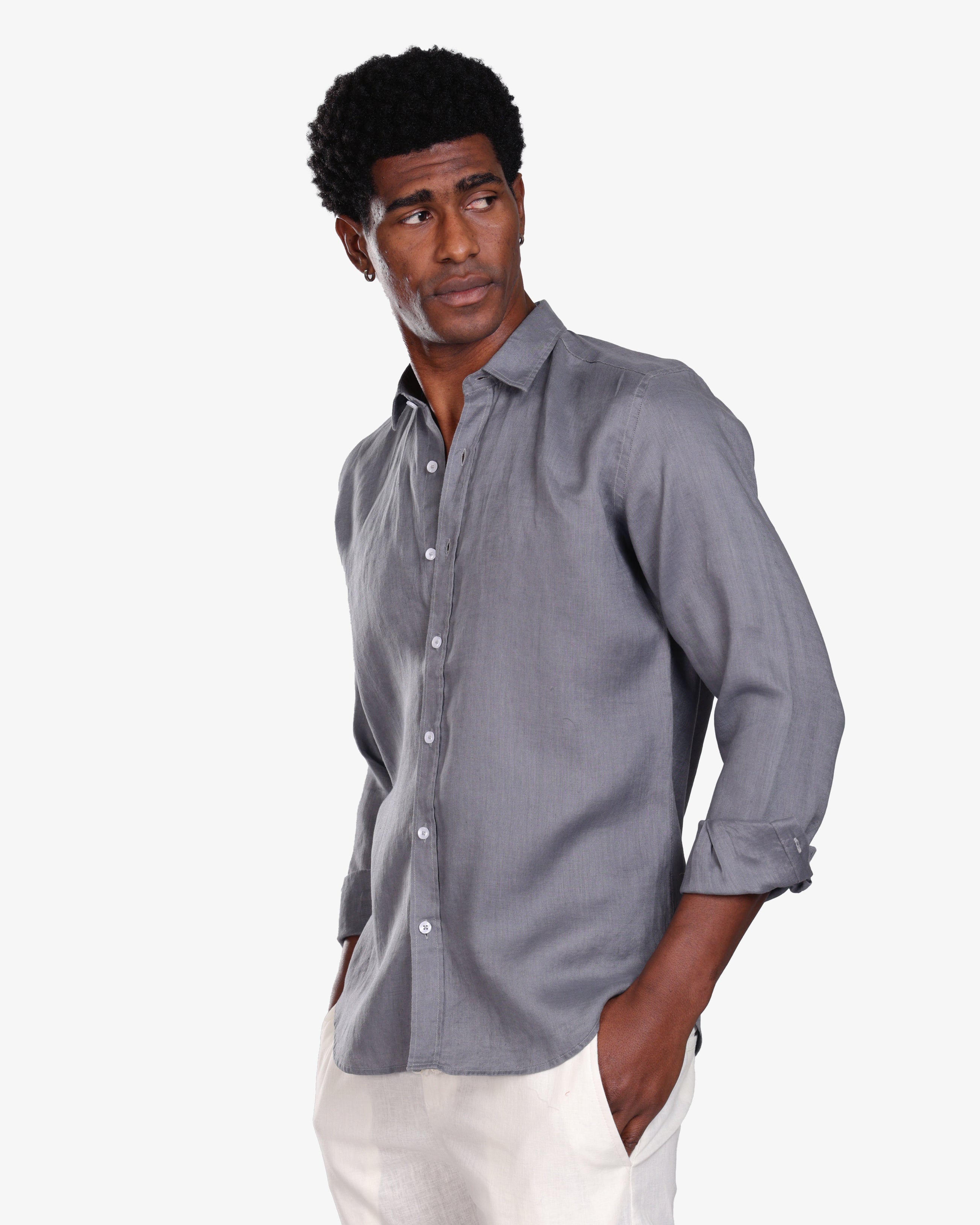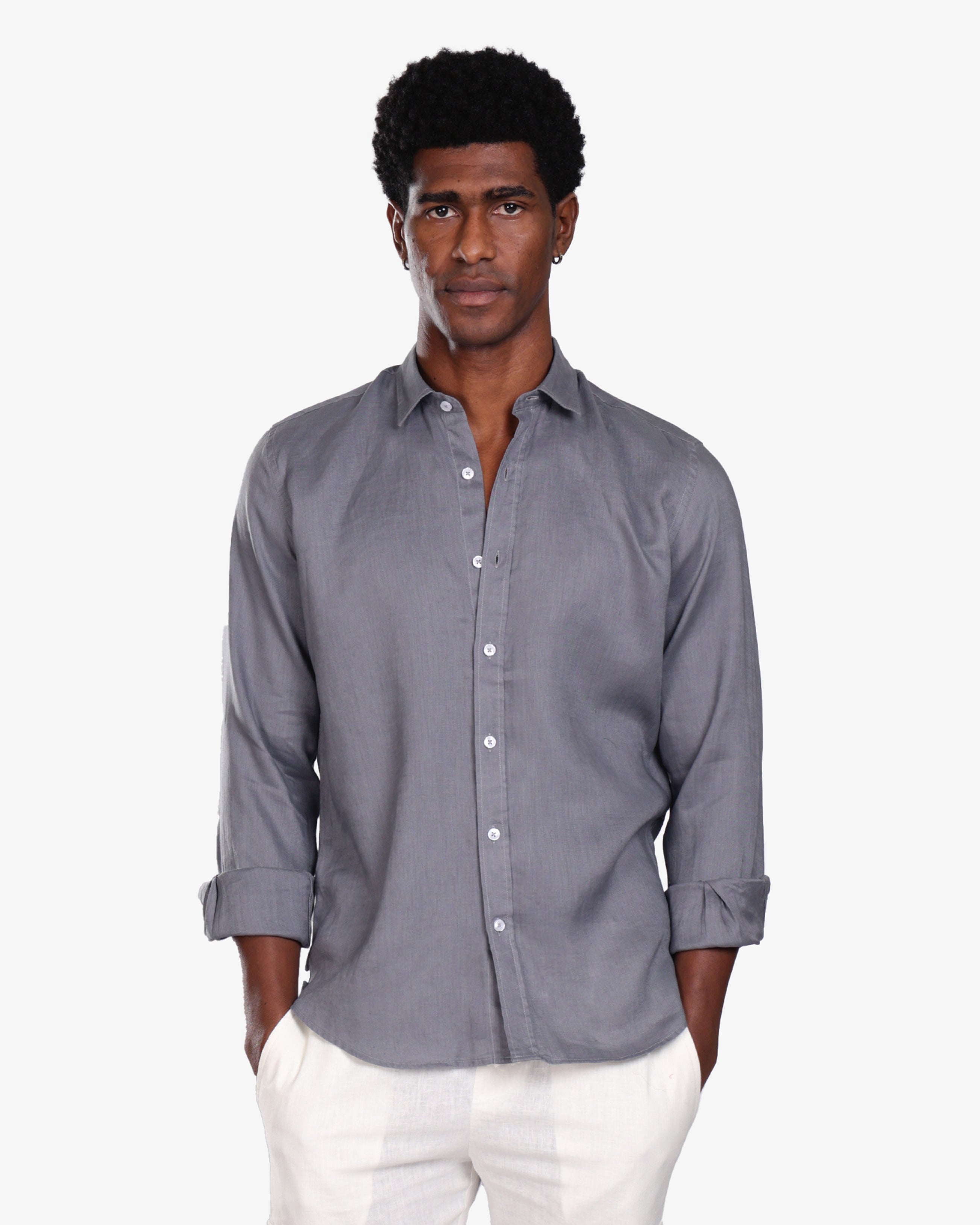 GREY 100% LINEN SHIRT S26