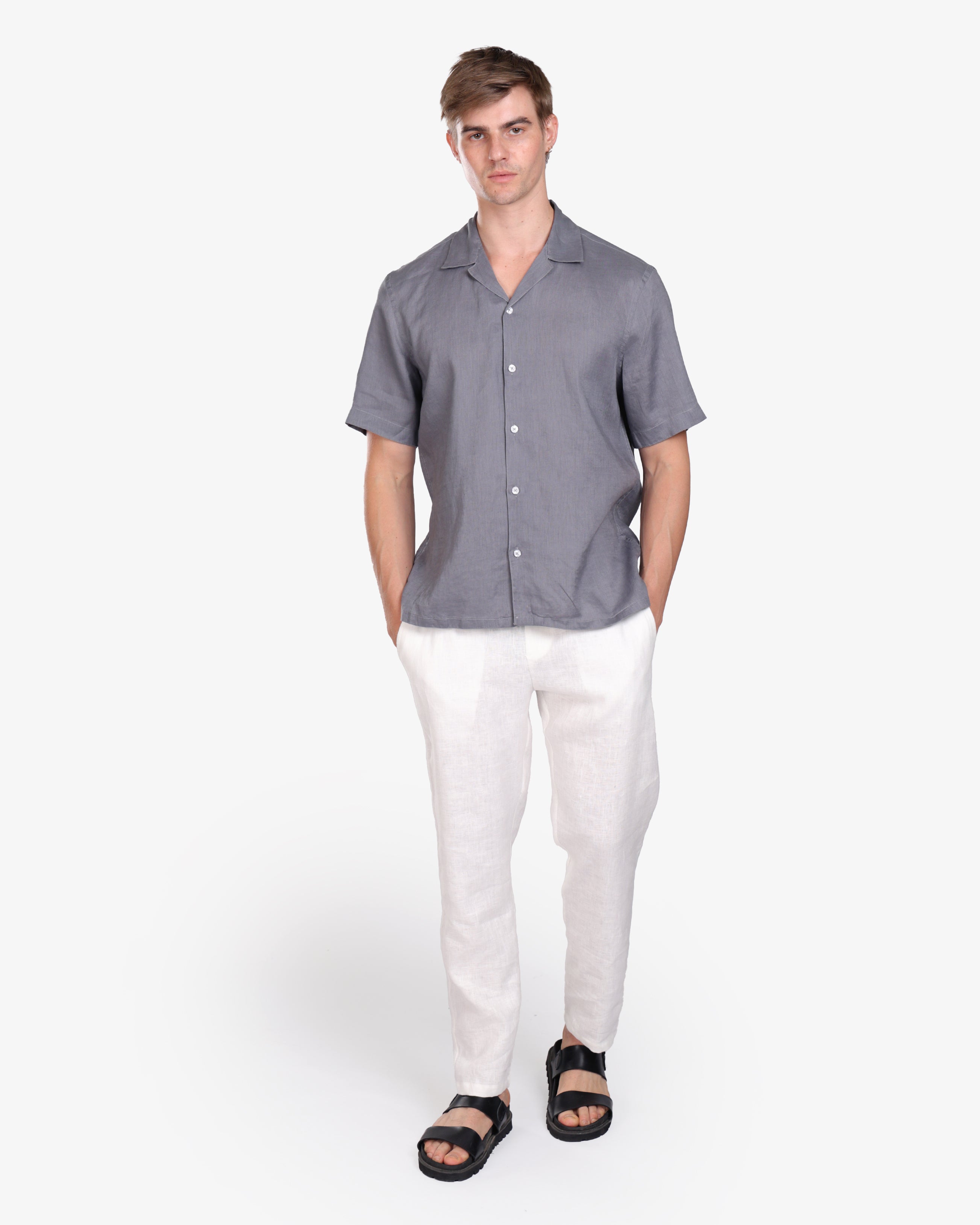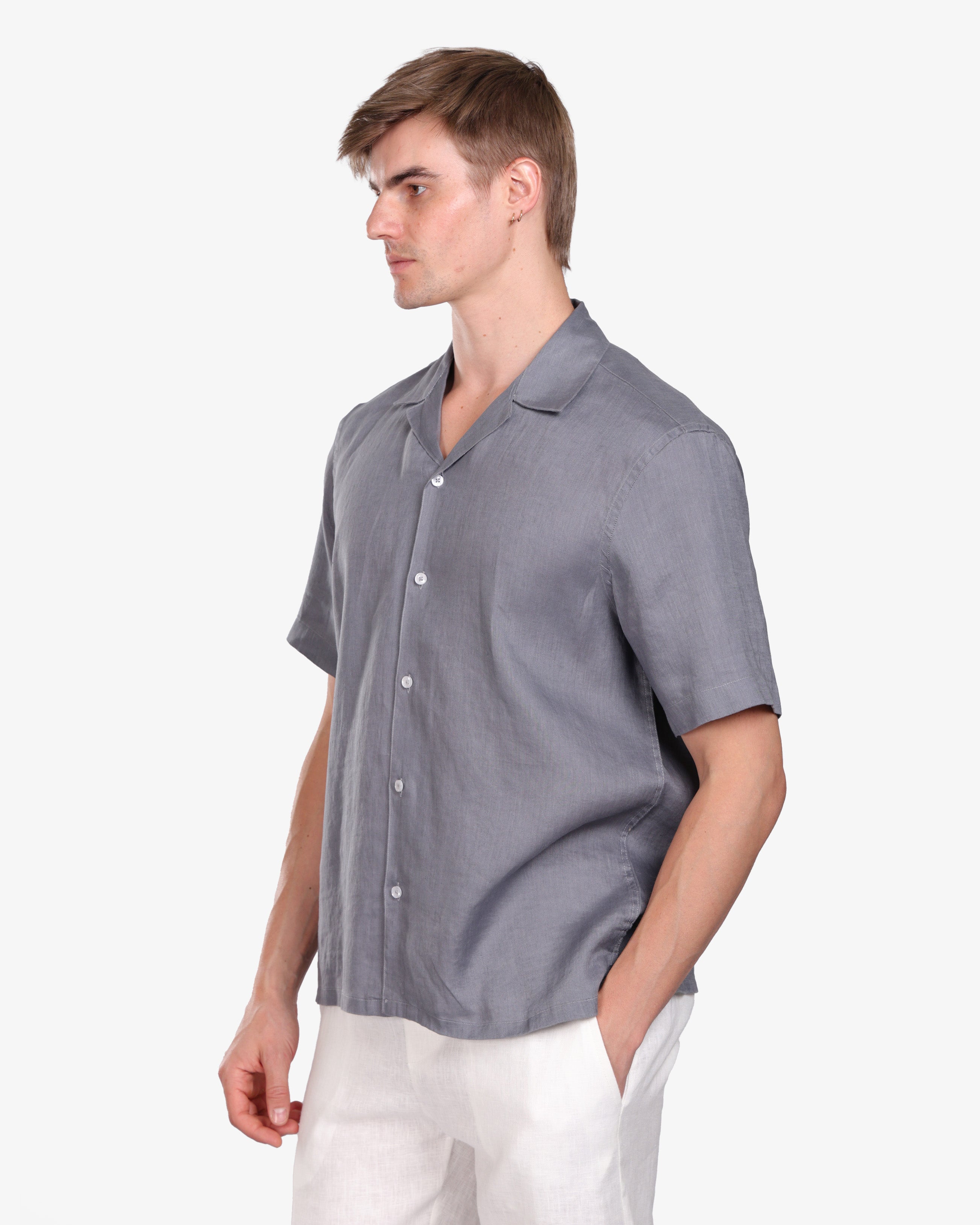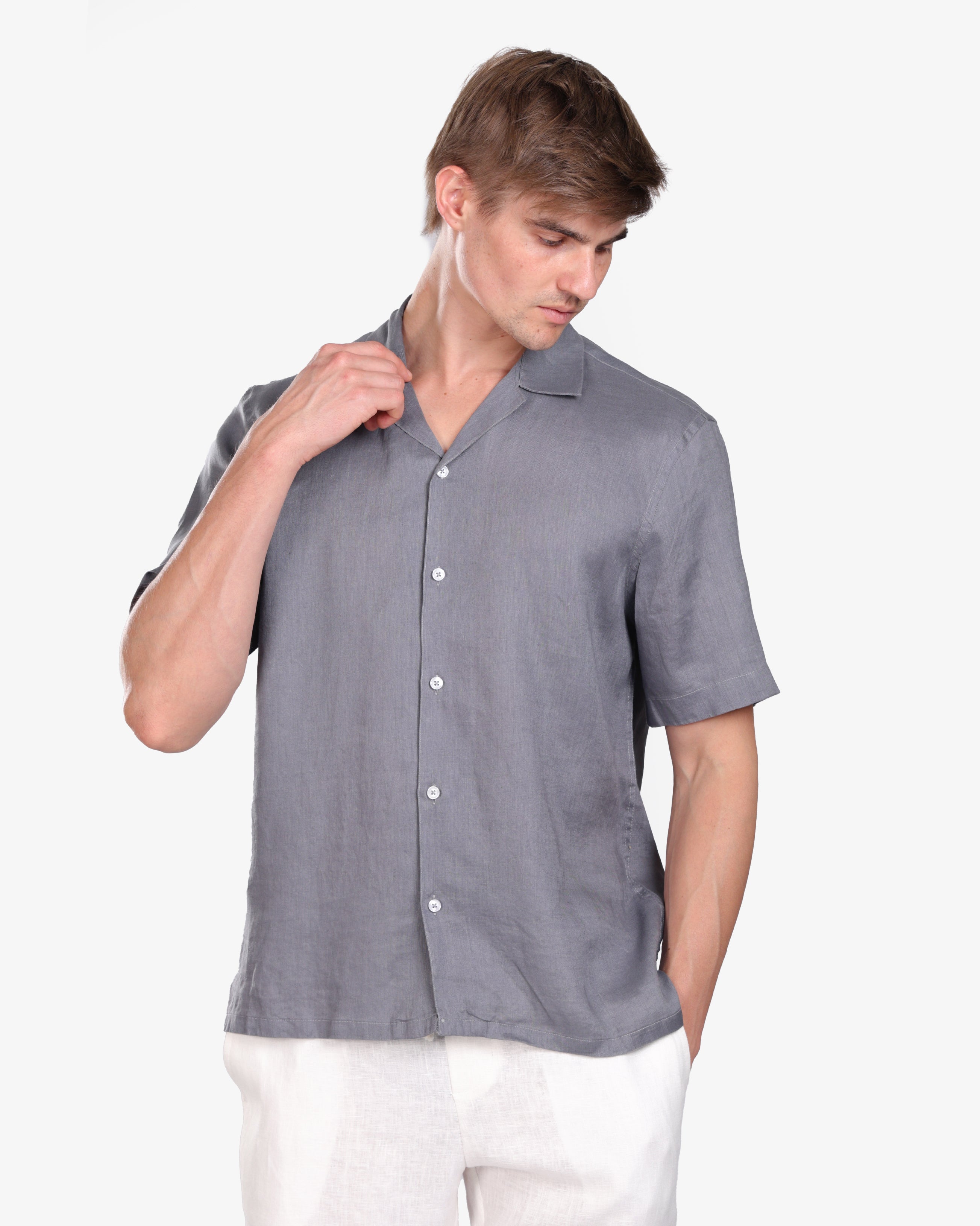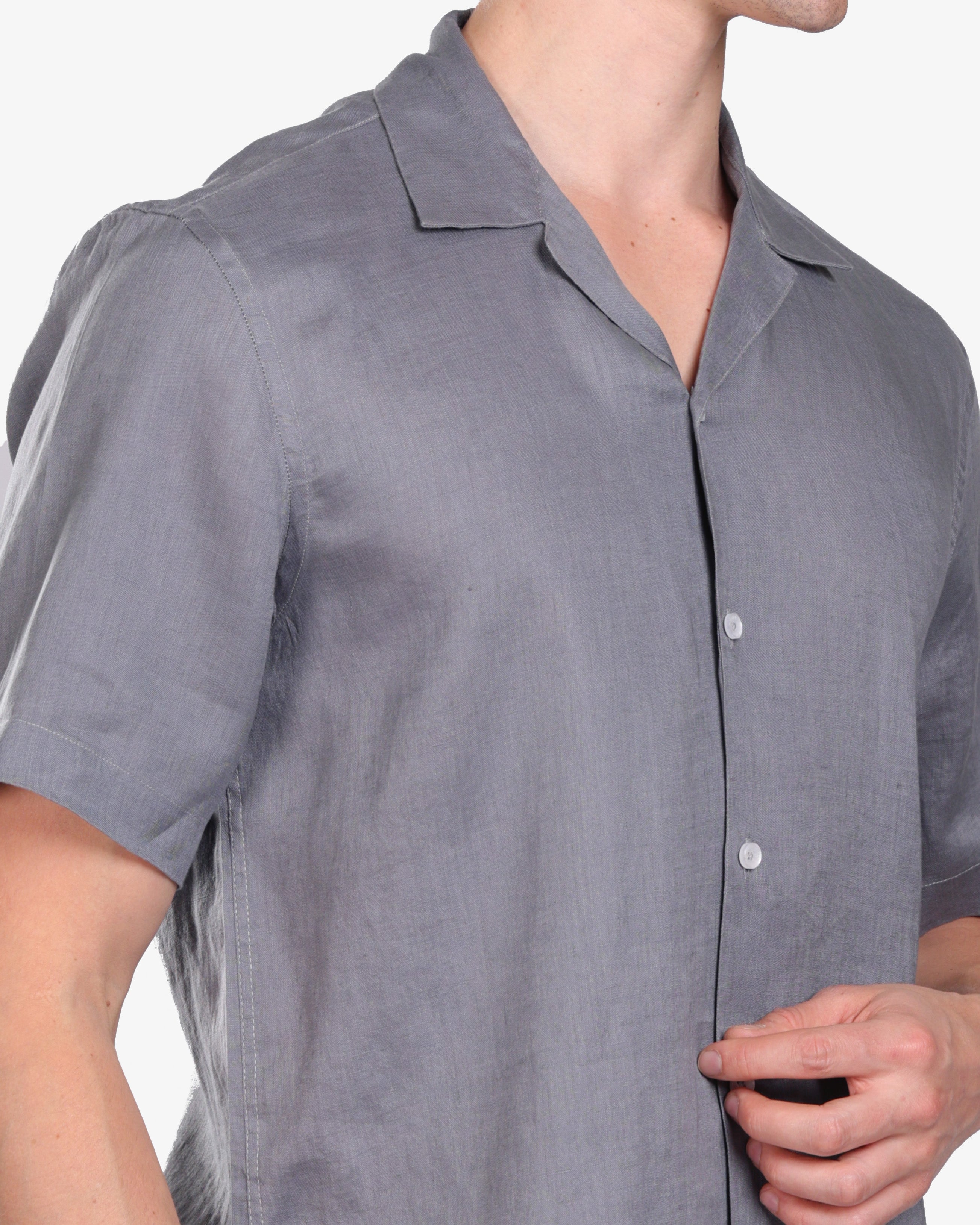 GREY 100% LINEN SHORT SLEEVE SHIRT S26