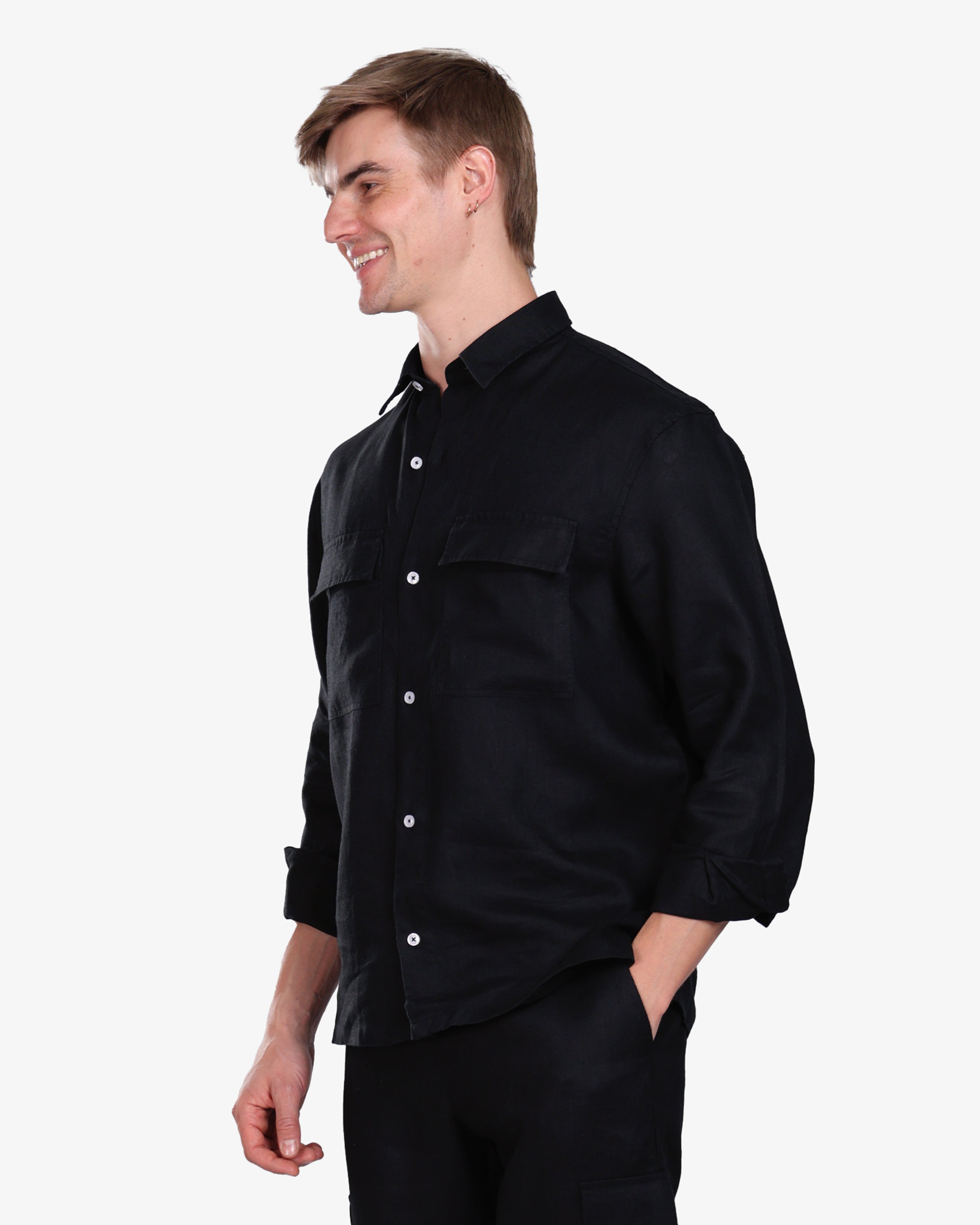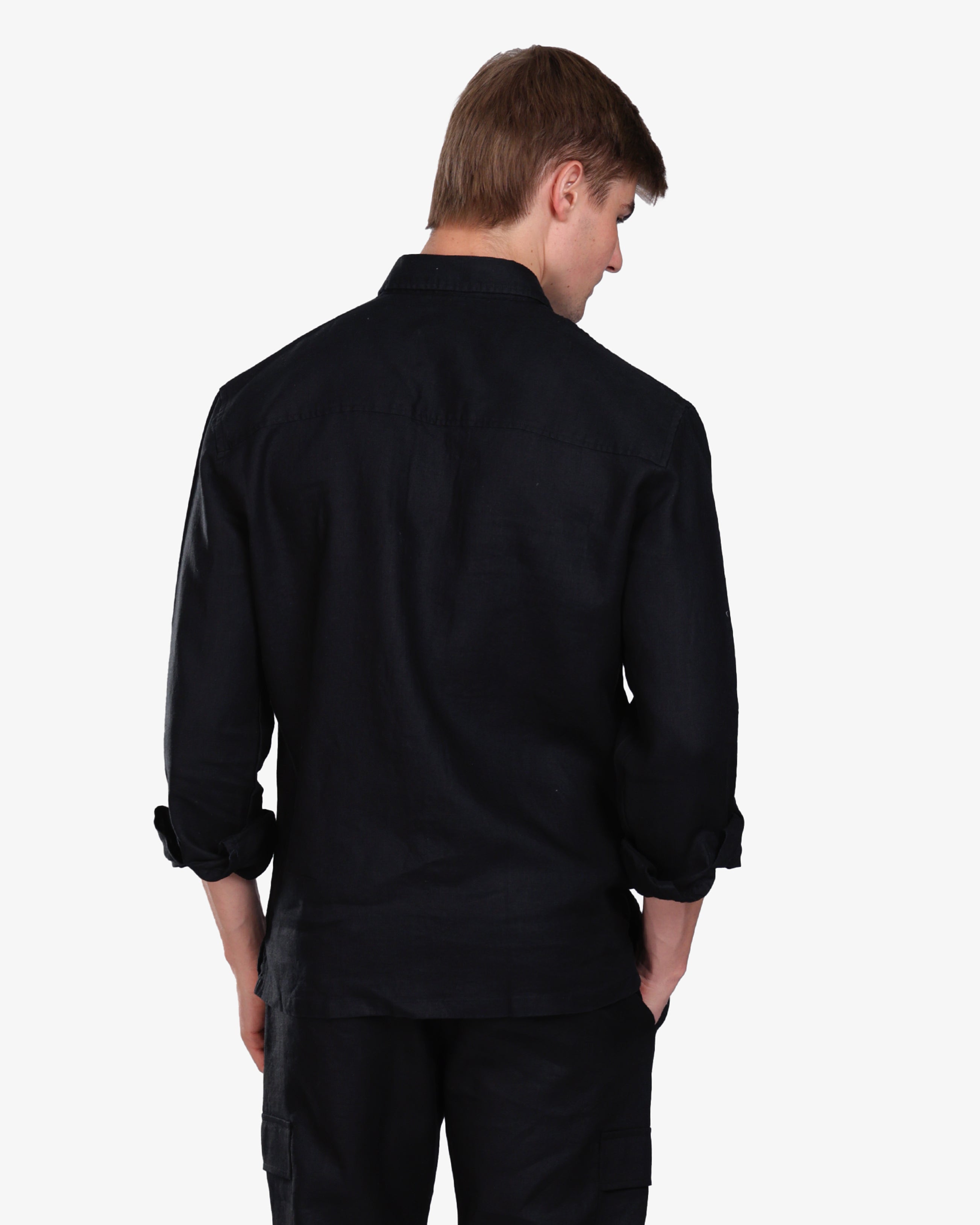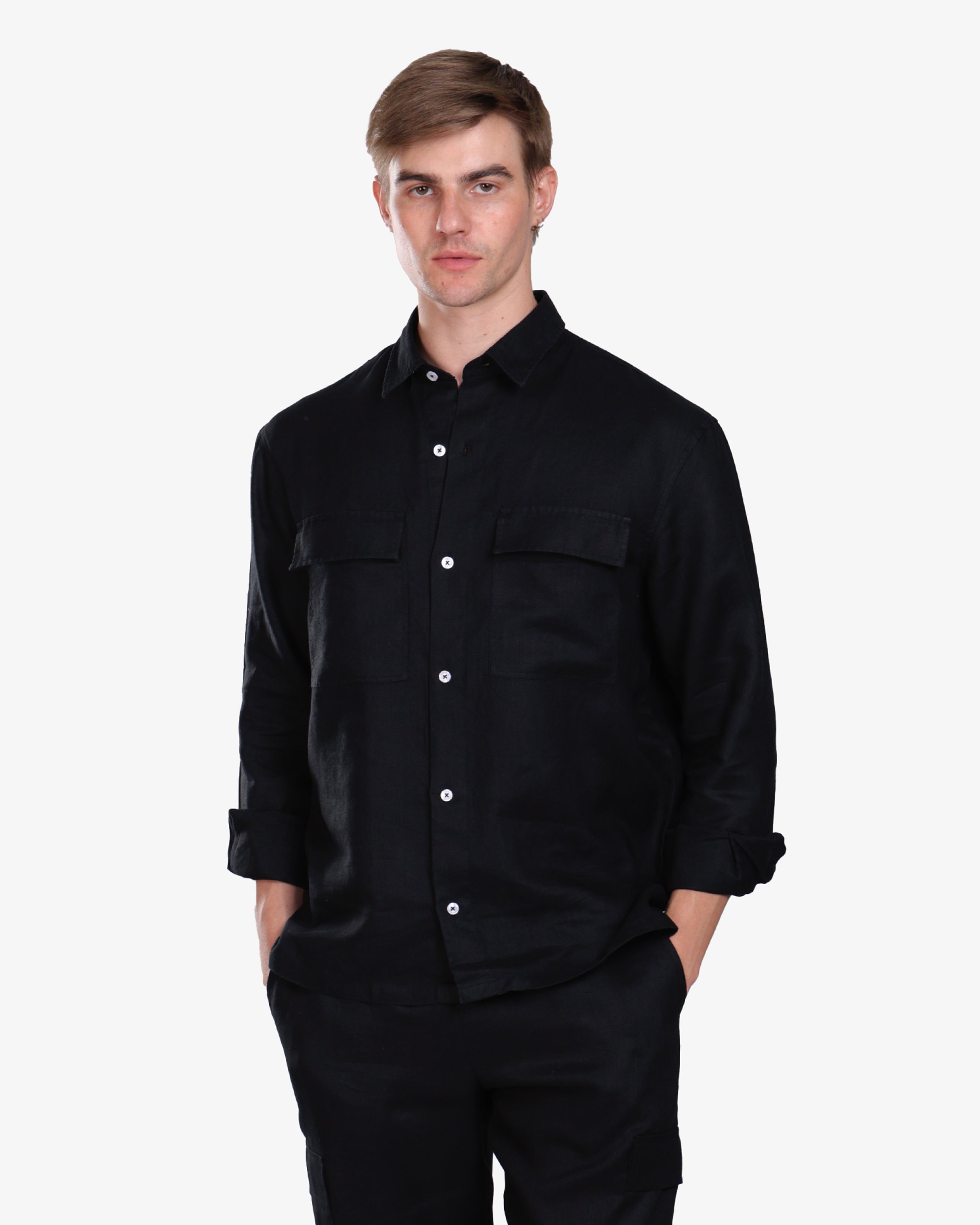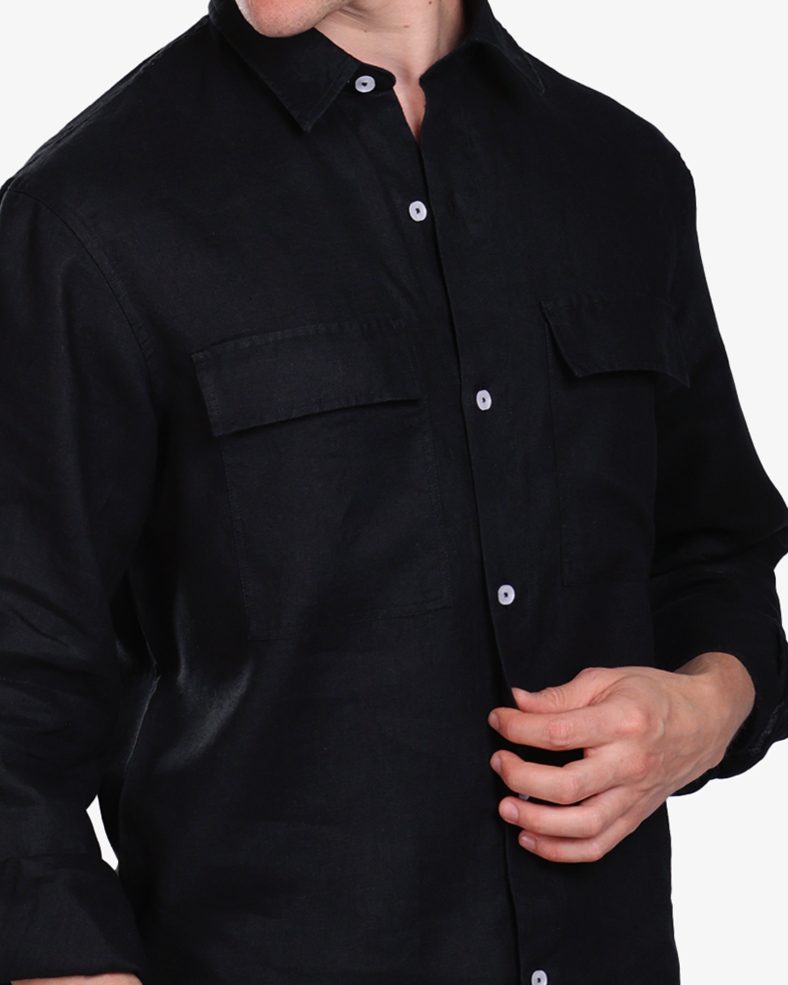 BLACK 100% LINEN WORKWEAR OVERSHIRT S26