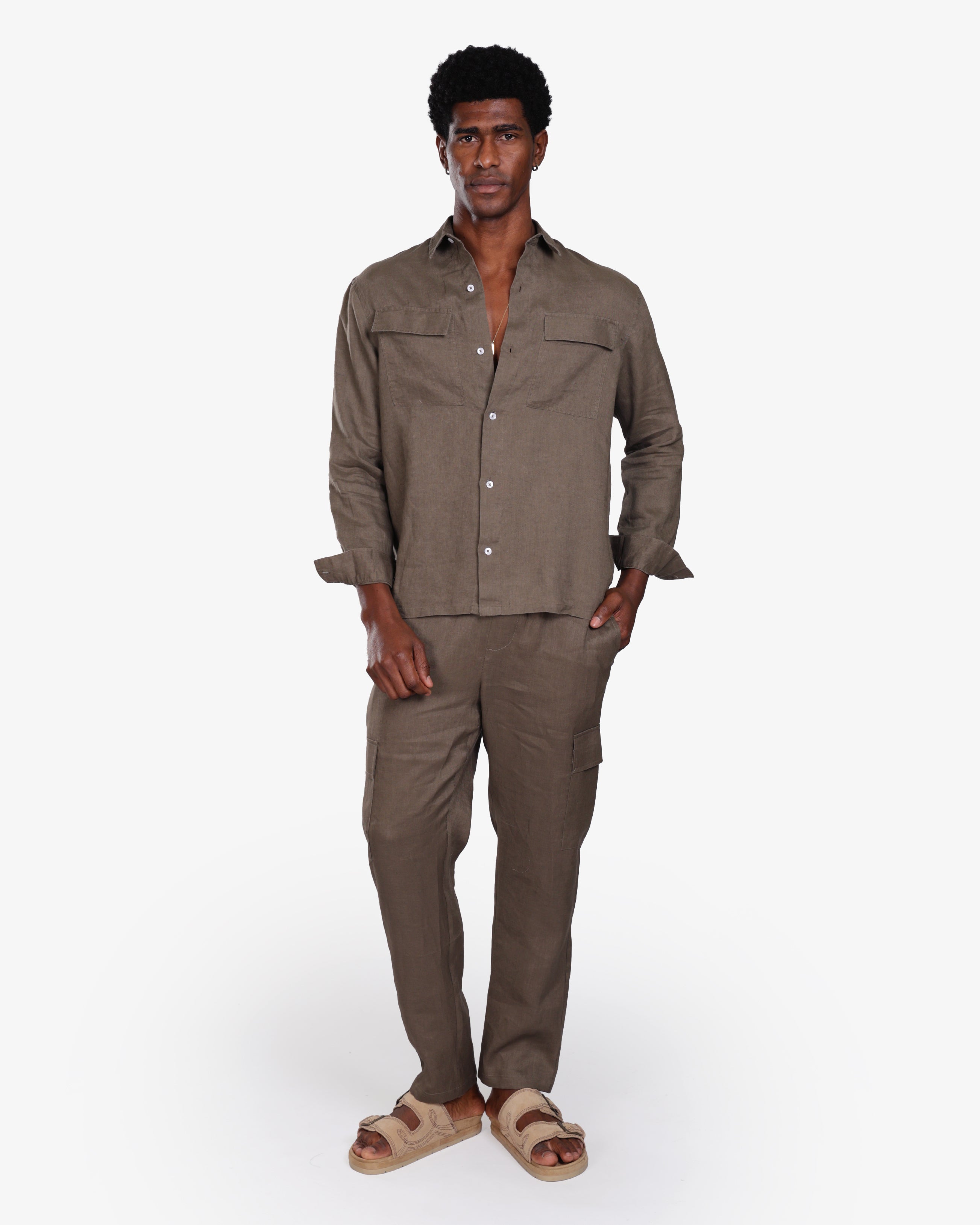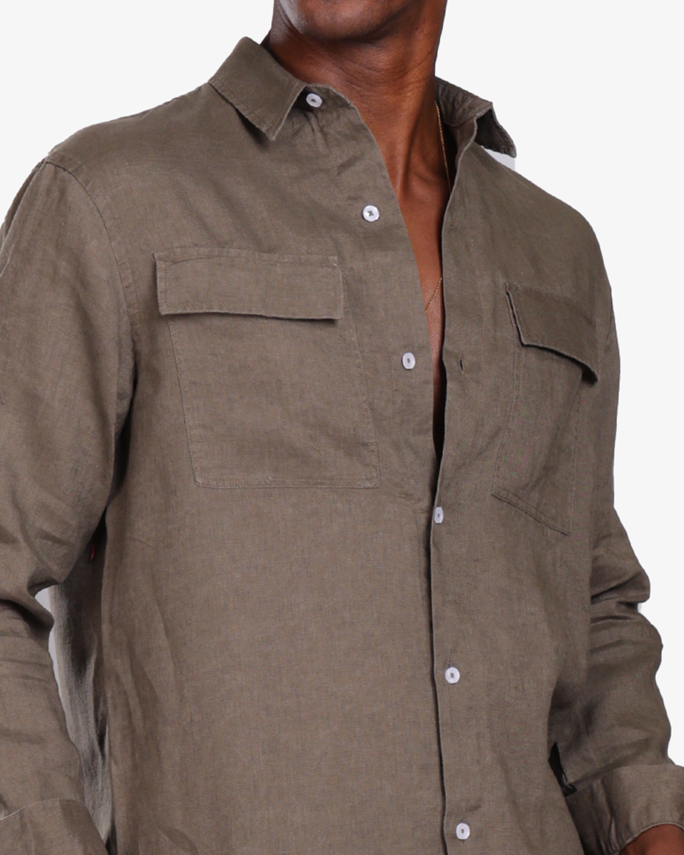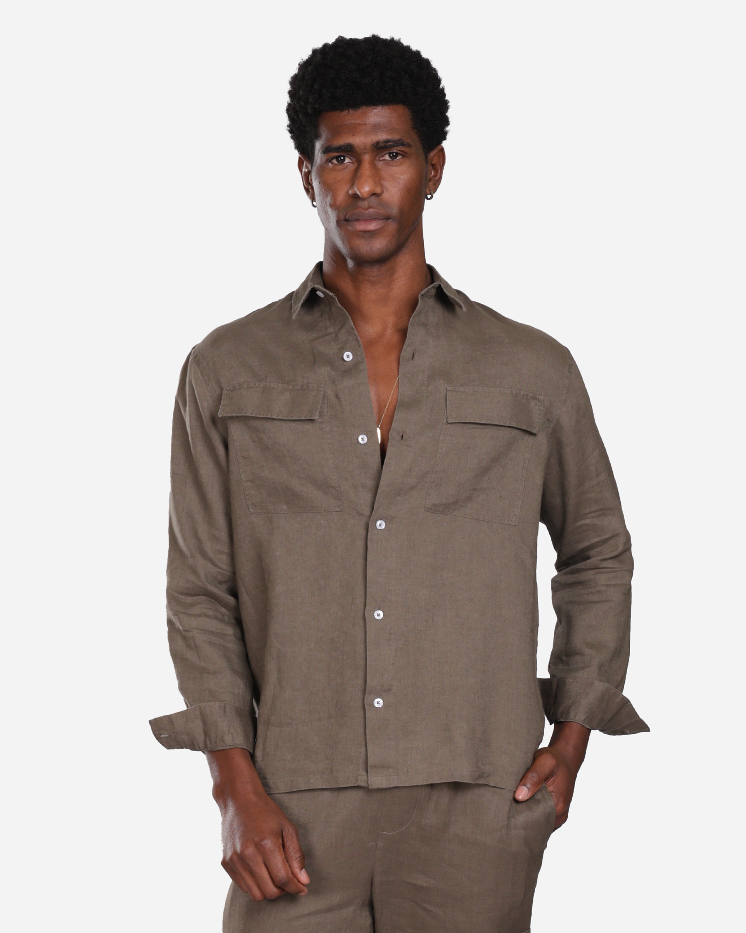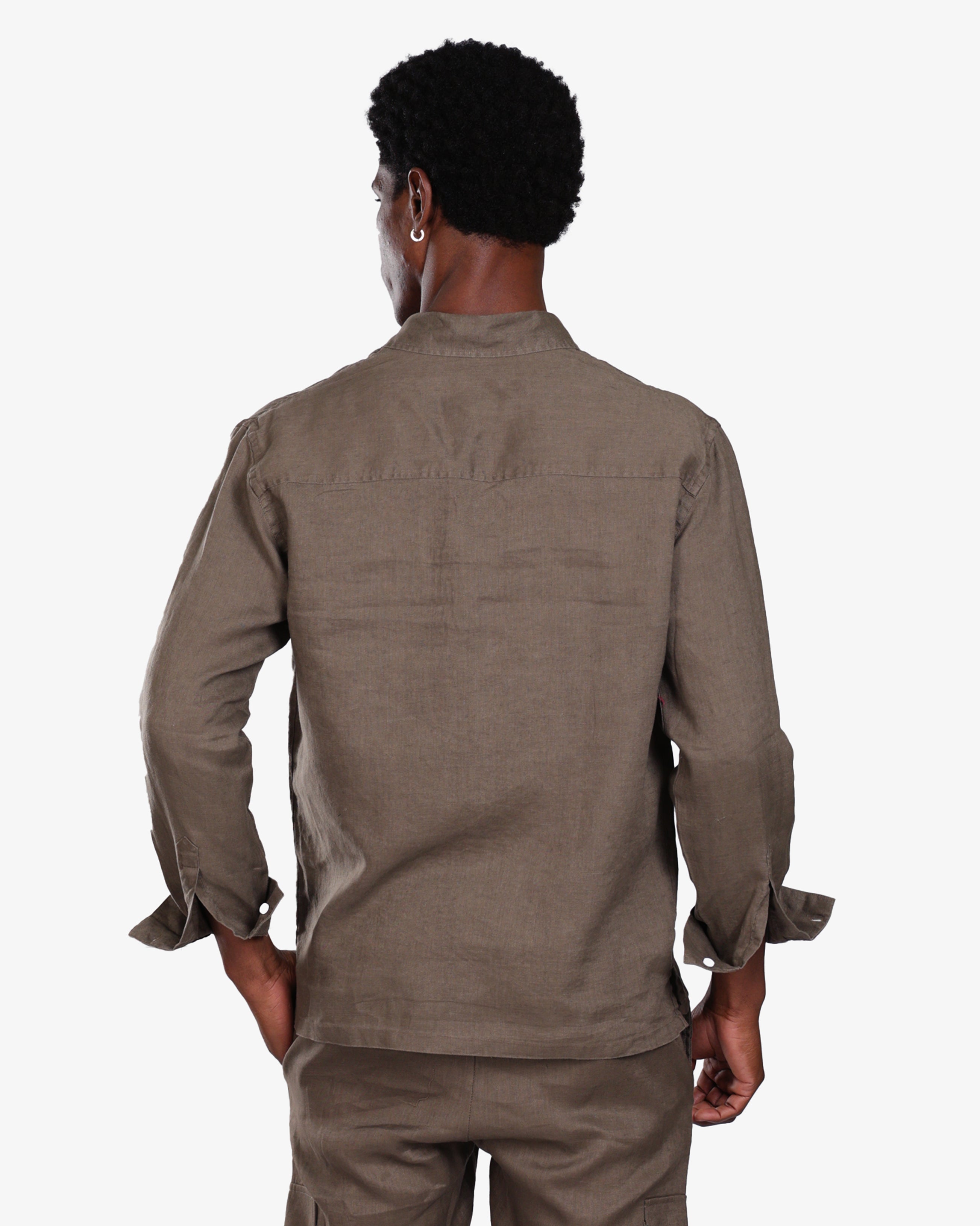 BROWN 100% LINEN WORKWEAR OVERSHIRT S26