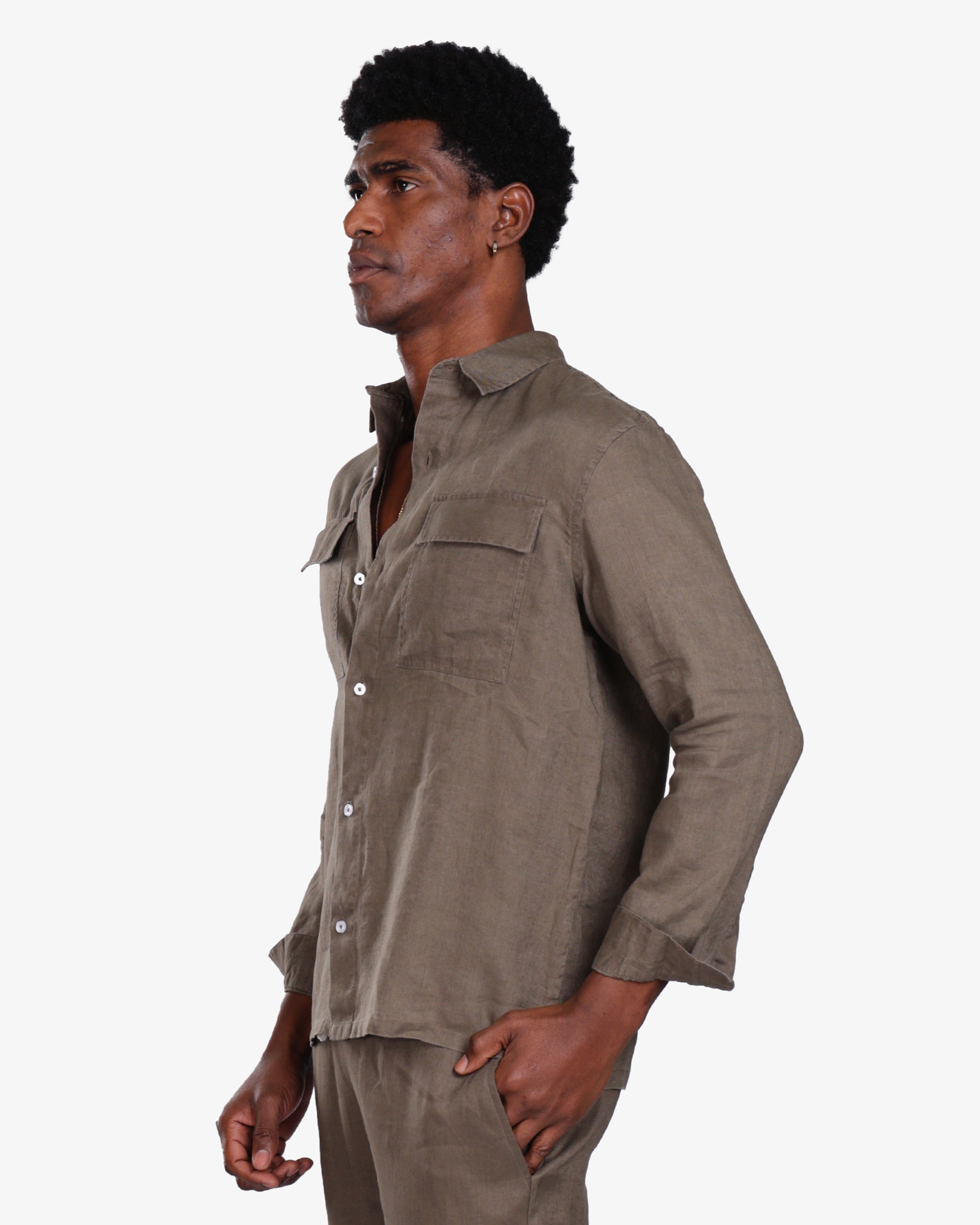 This overshirt is a versatile and stylish addition to any wardrobe, crafted from lightweight, breathable linen for a relaxed yet refined look. Key features include:
