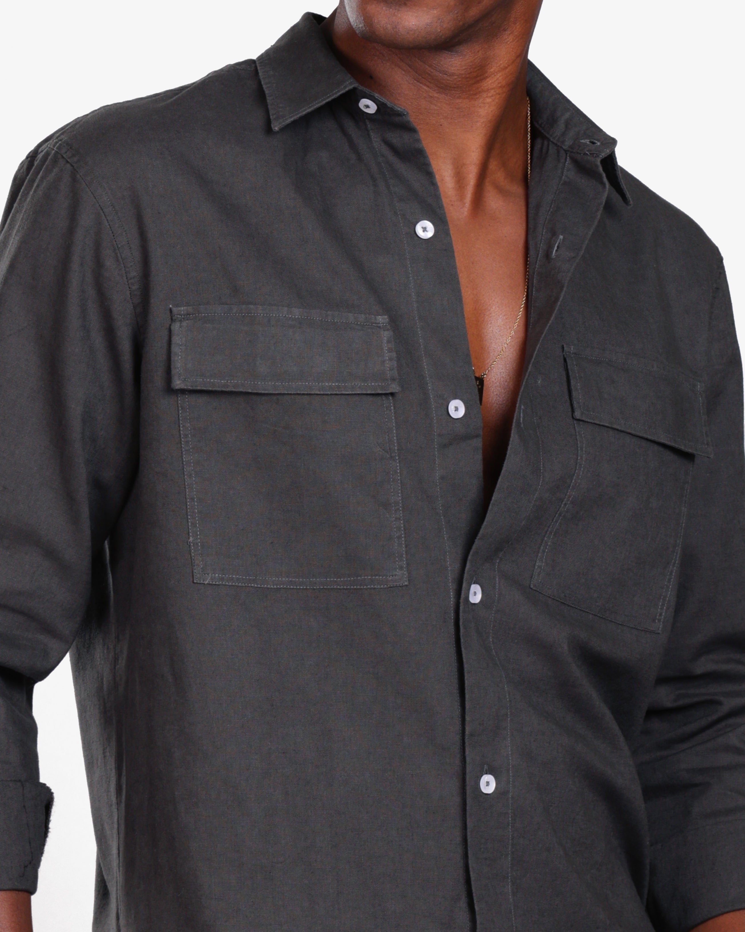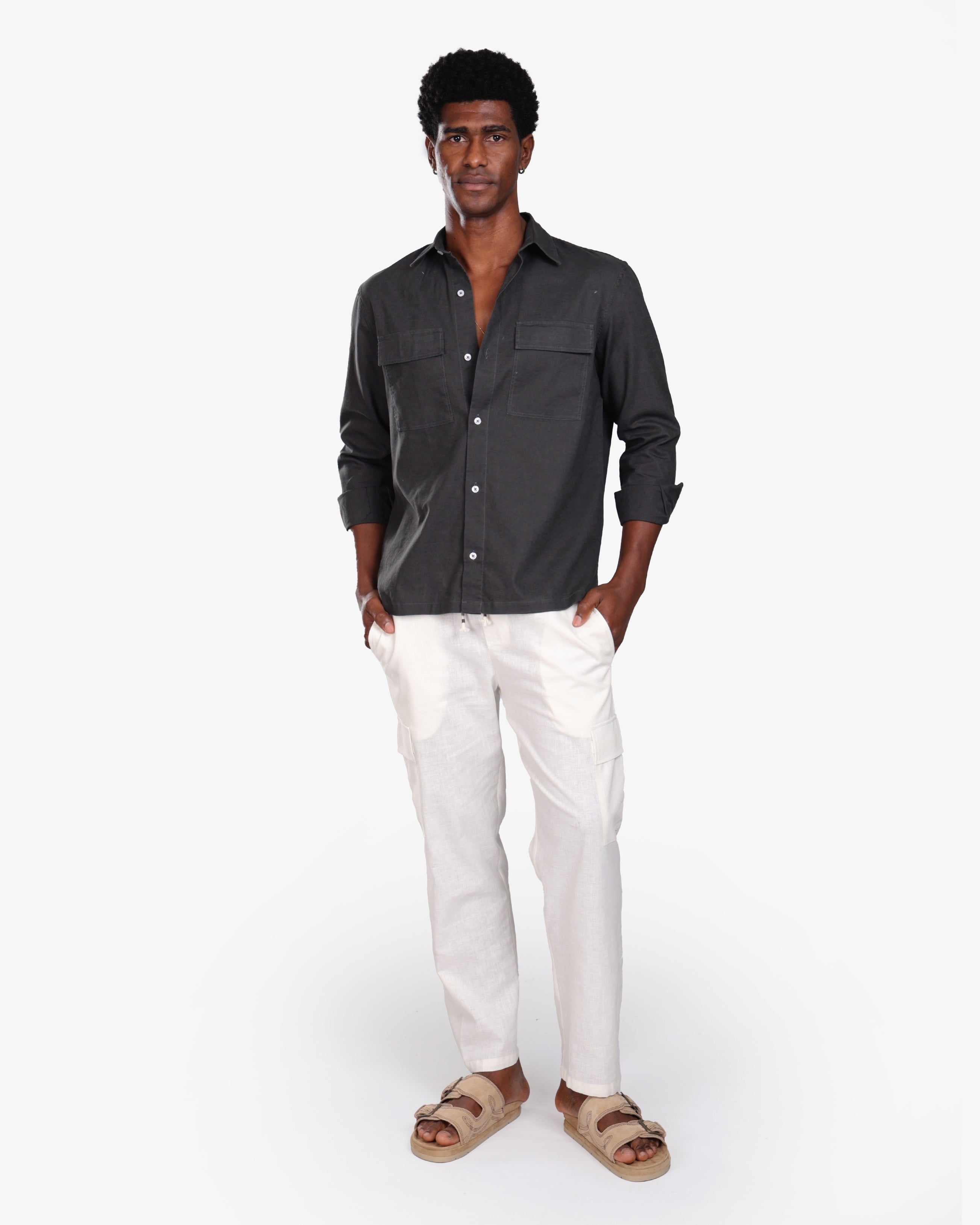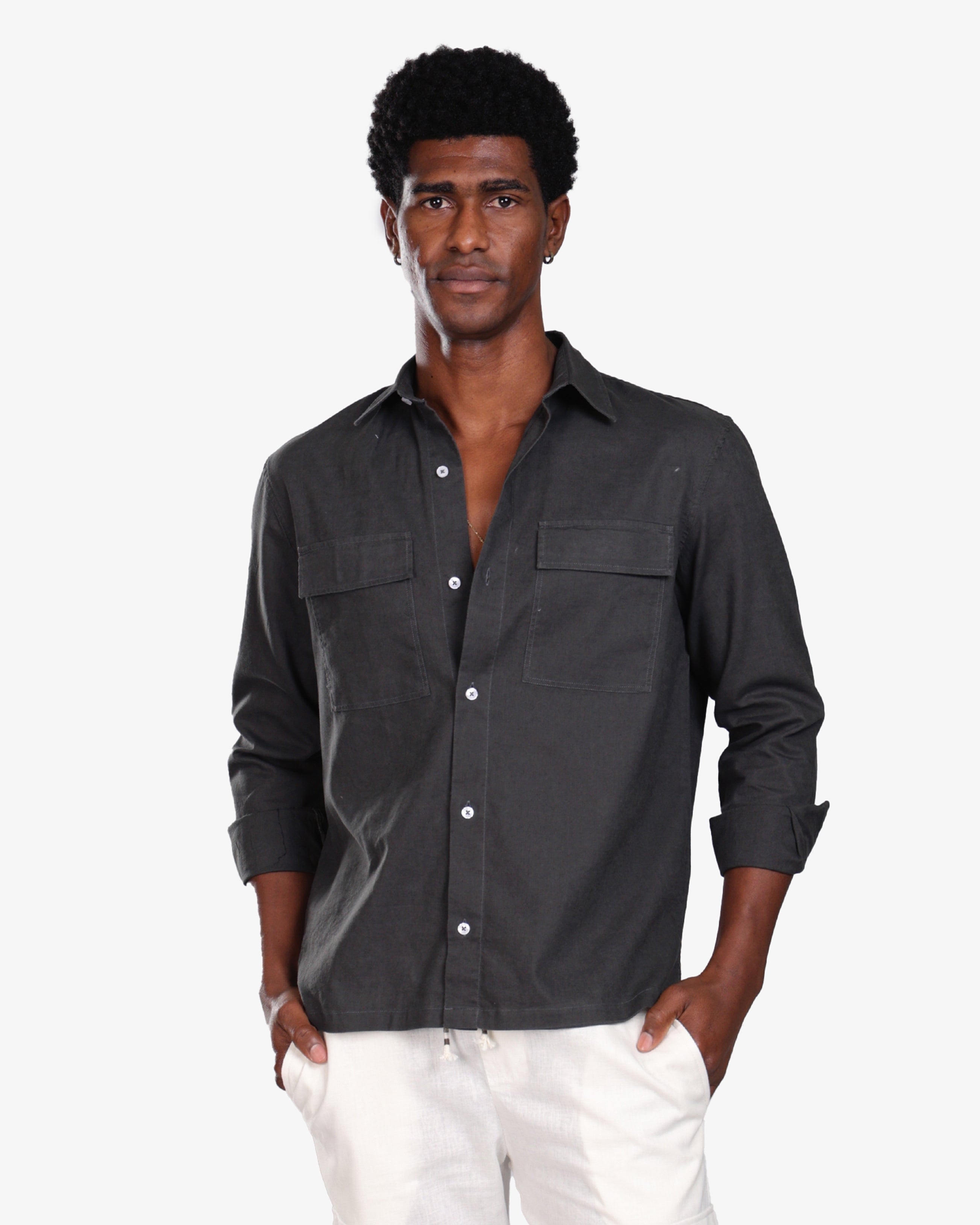 This overshirt is a versatile and stylish addition to any wardrobe, crafted from lightweight, breathable linen-cotton blend for a relaxed yet refined look. Key features include: