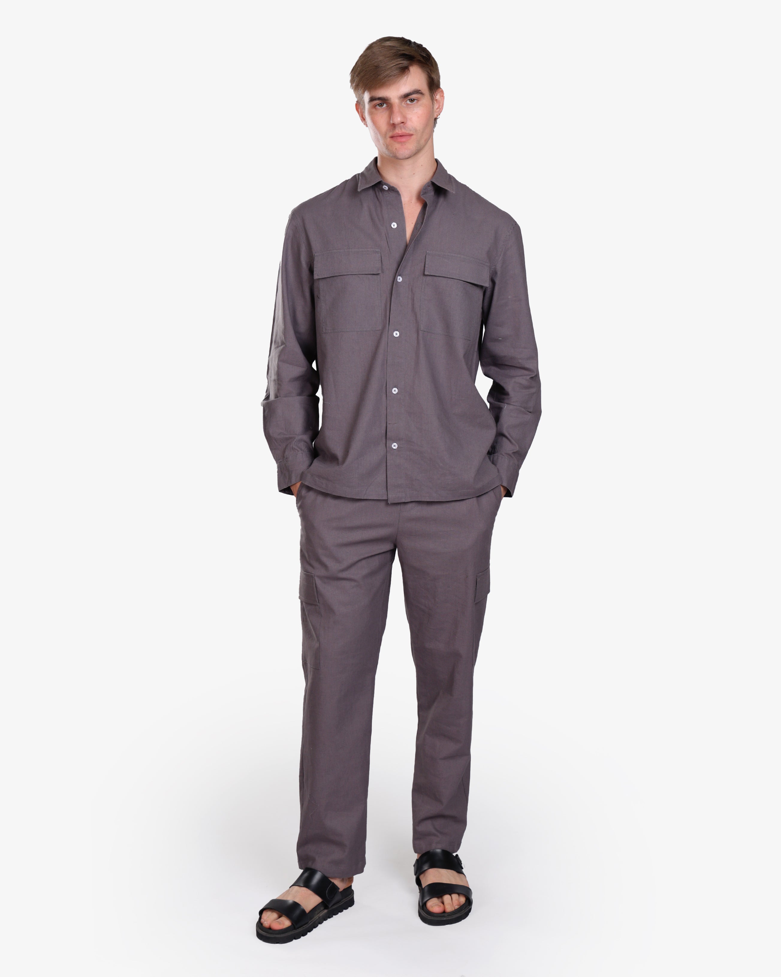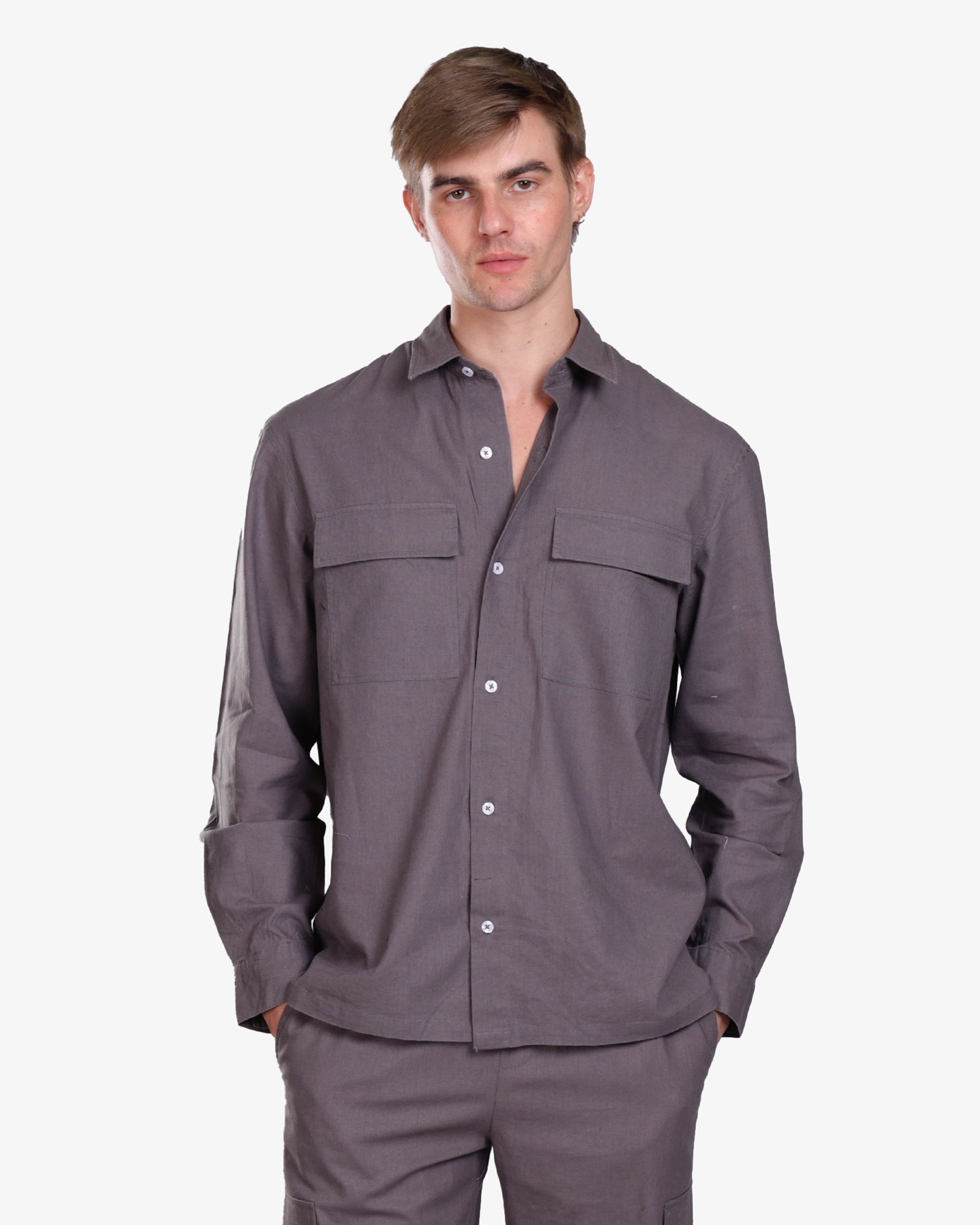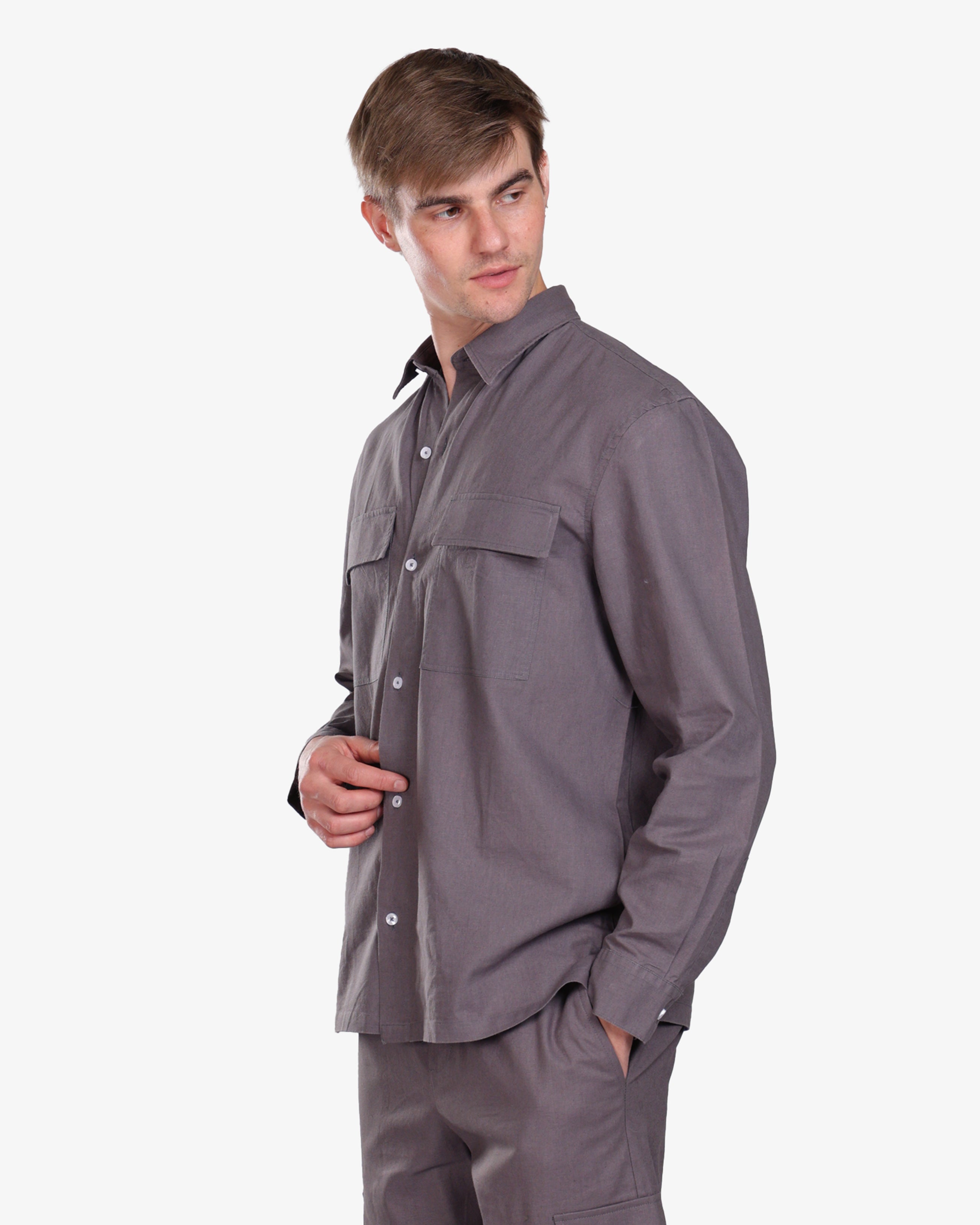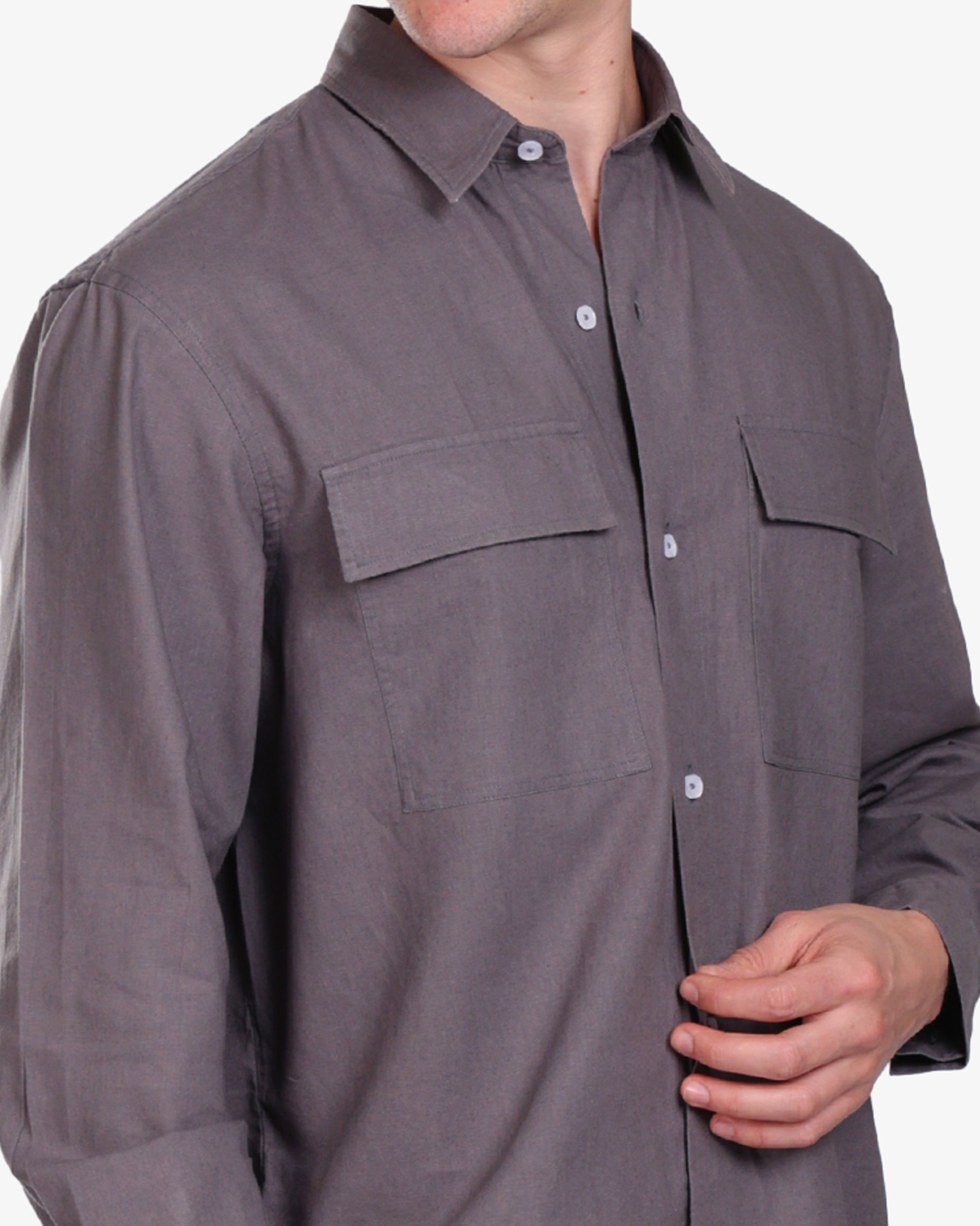 GREY LINEN-COTTON WORKWEAR OVERSHIRT S26