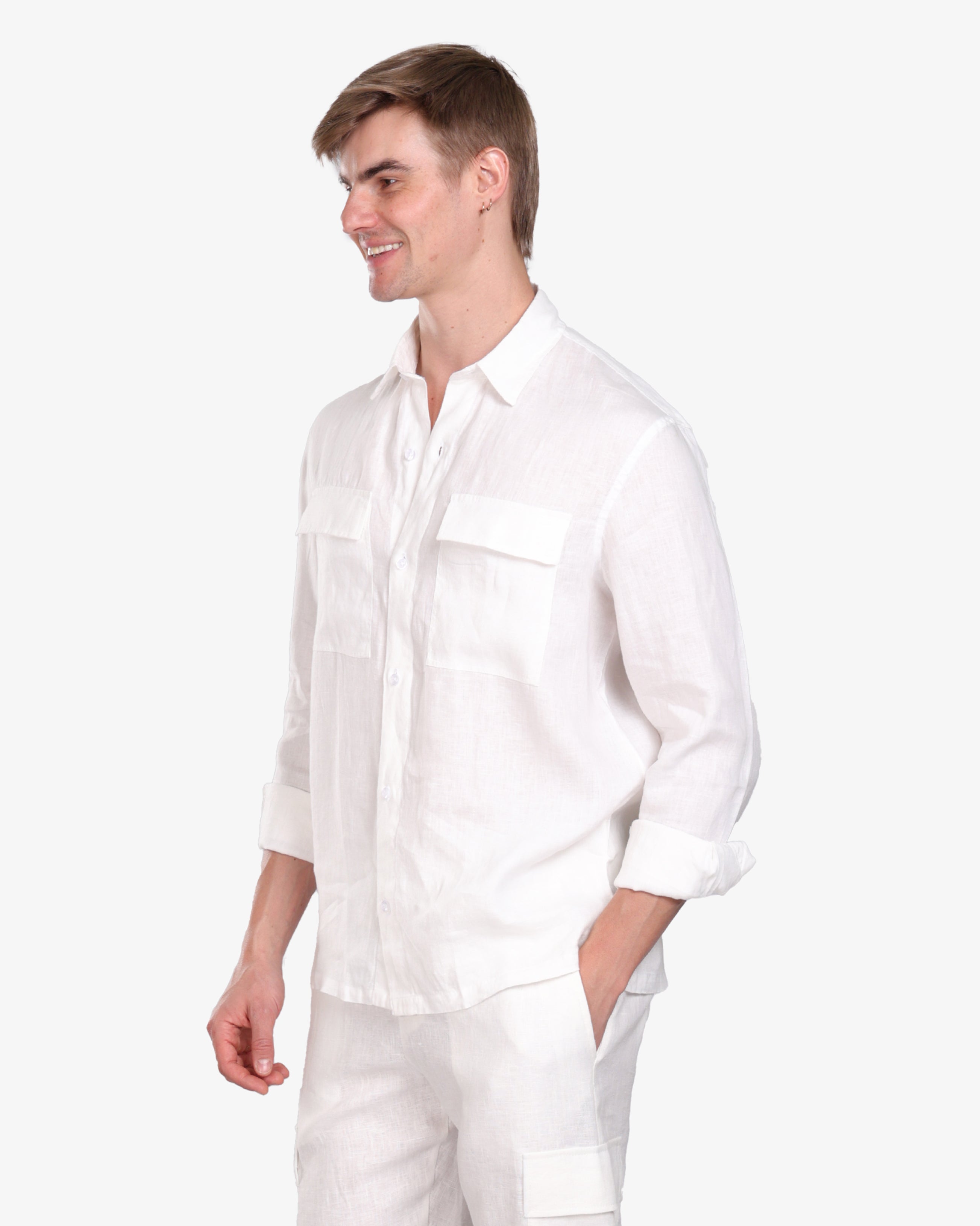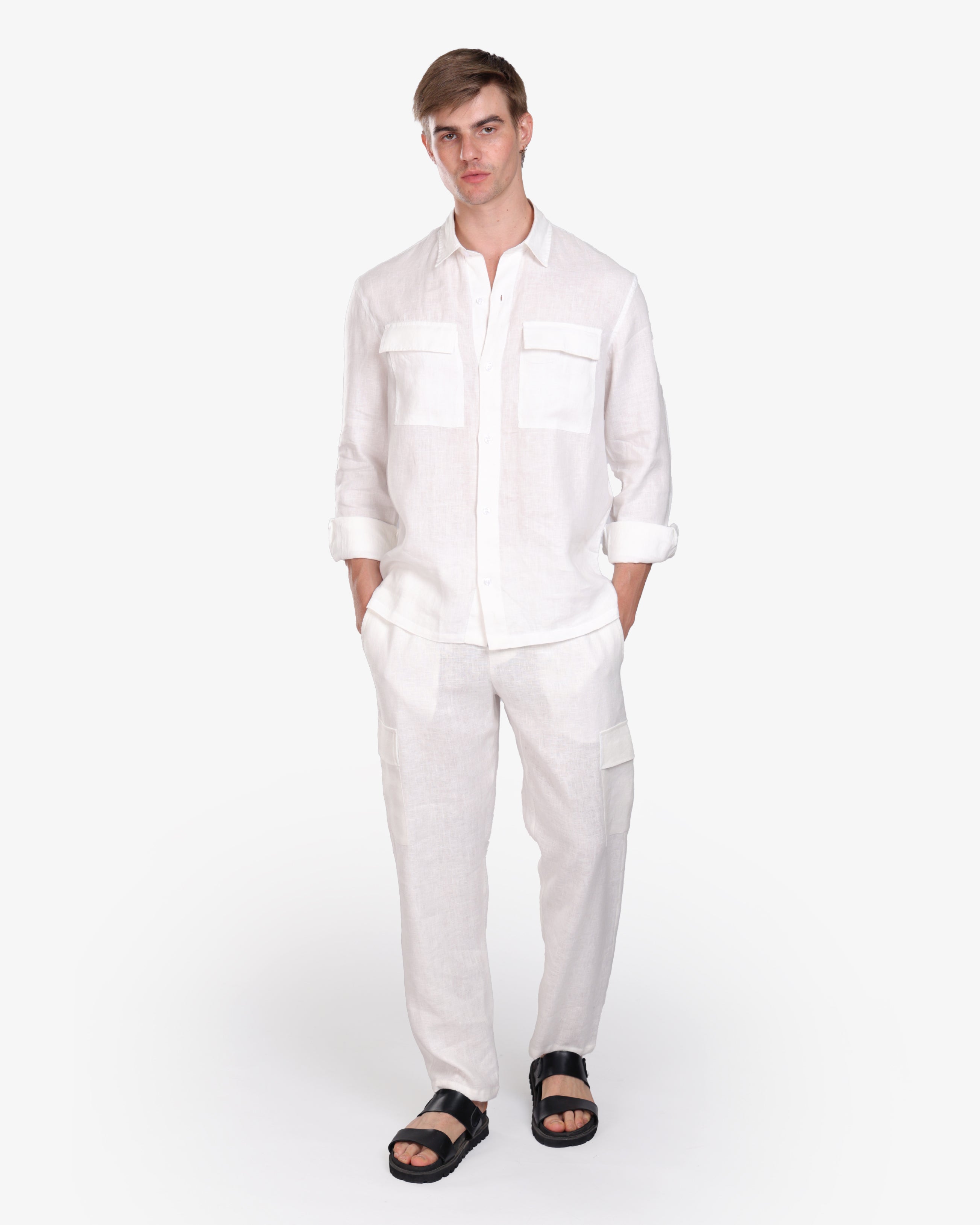 WHITE 100% LINEN WORKWEAR OVERSHIRT S26