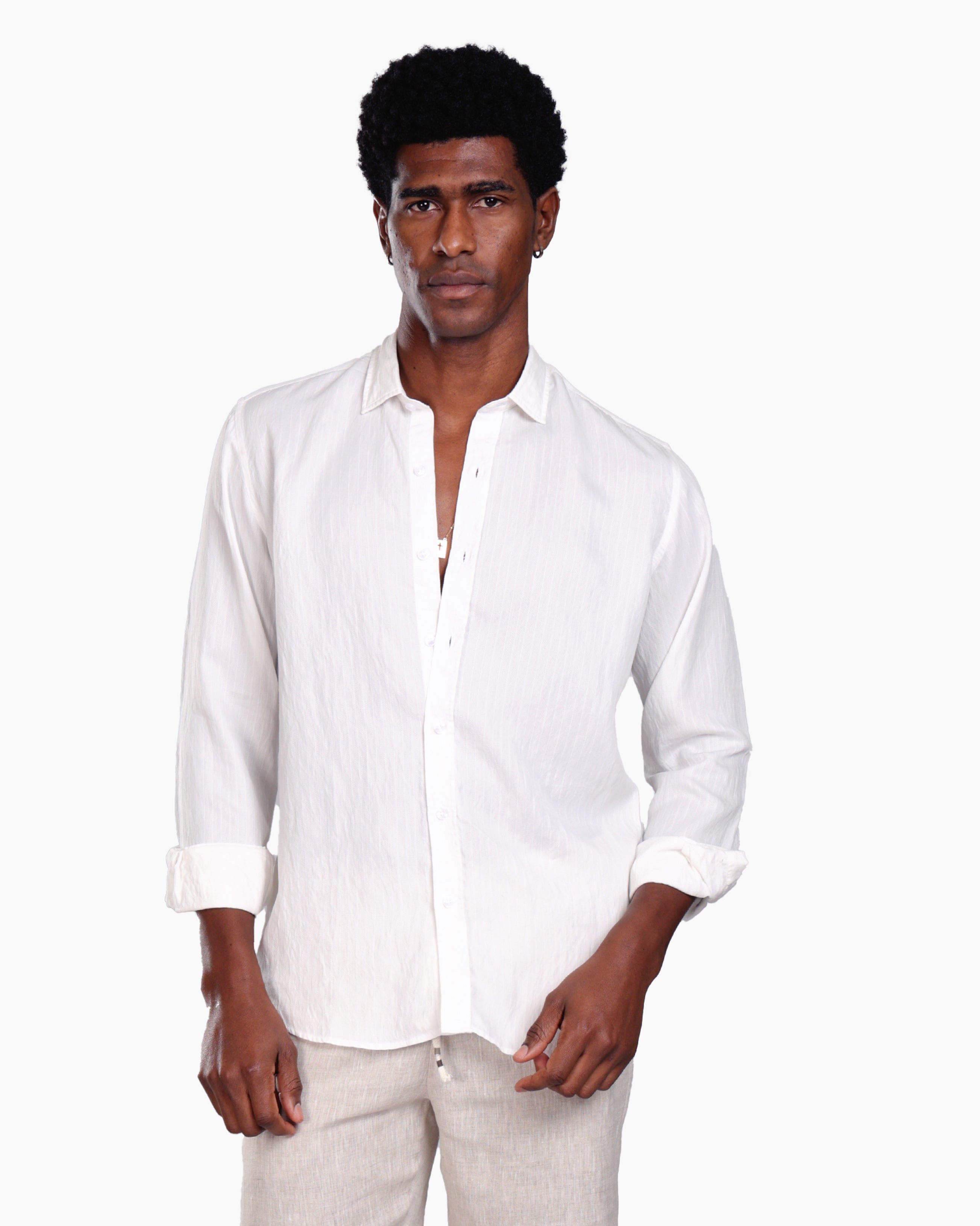 WHITE 100% COTTON STRIPED SHIRT S26