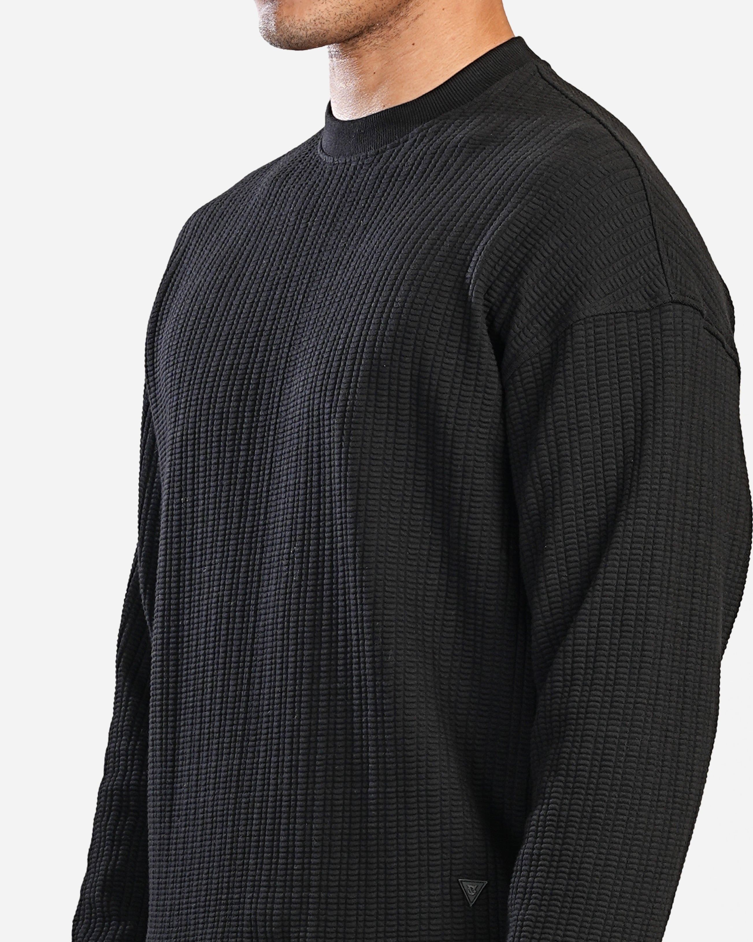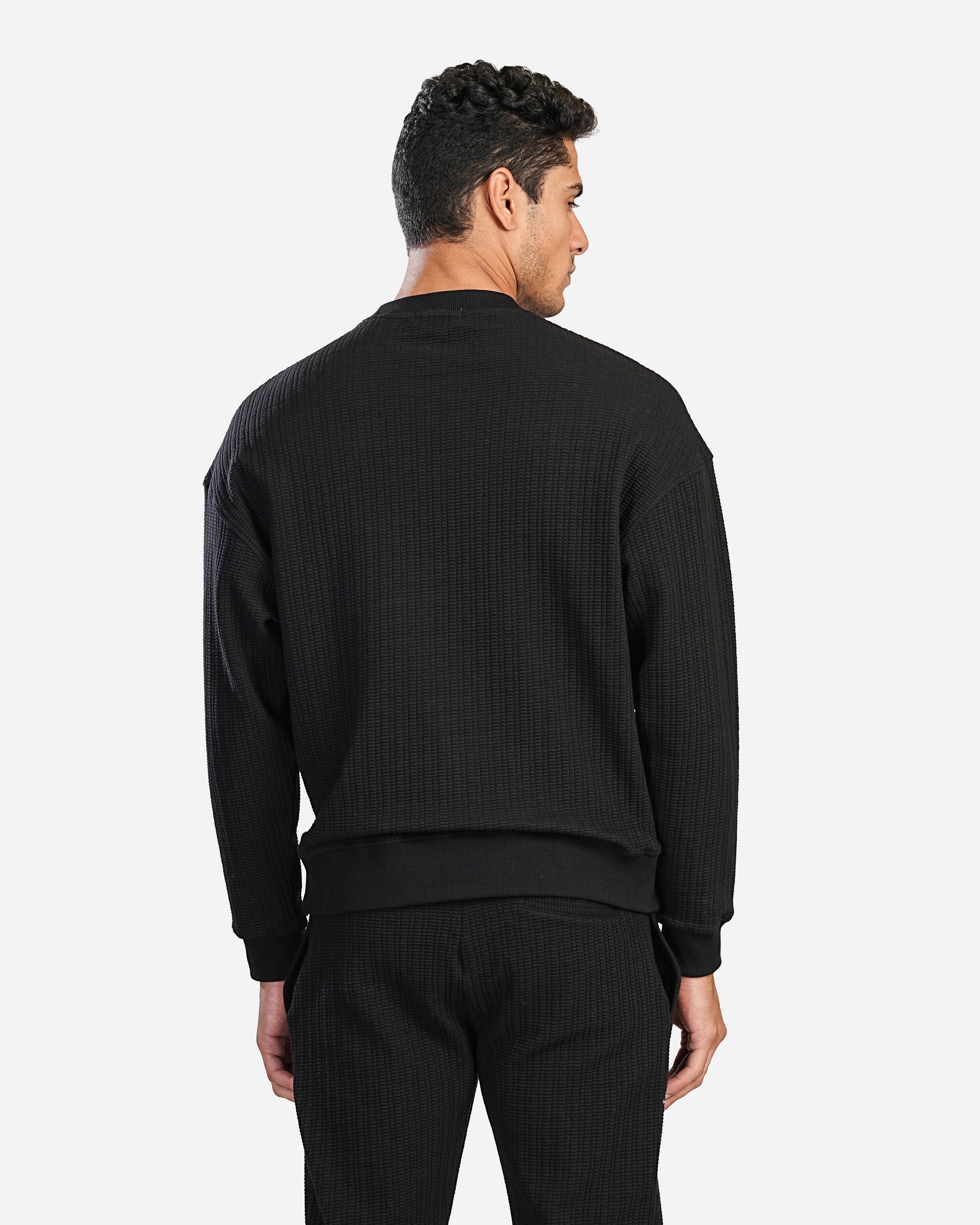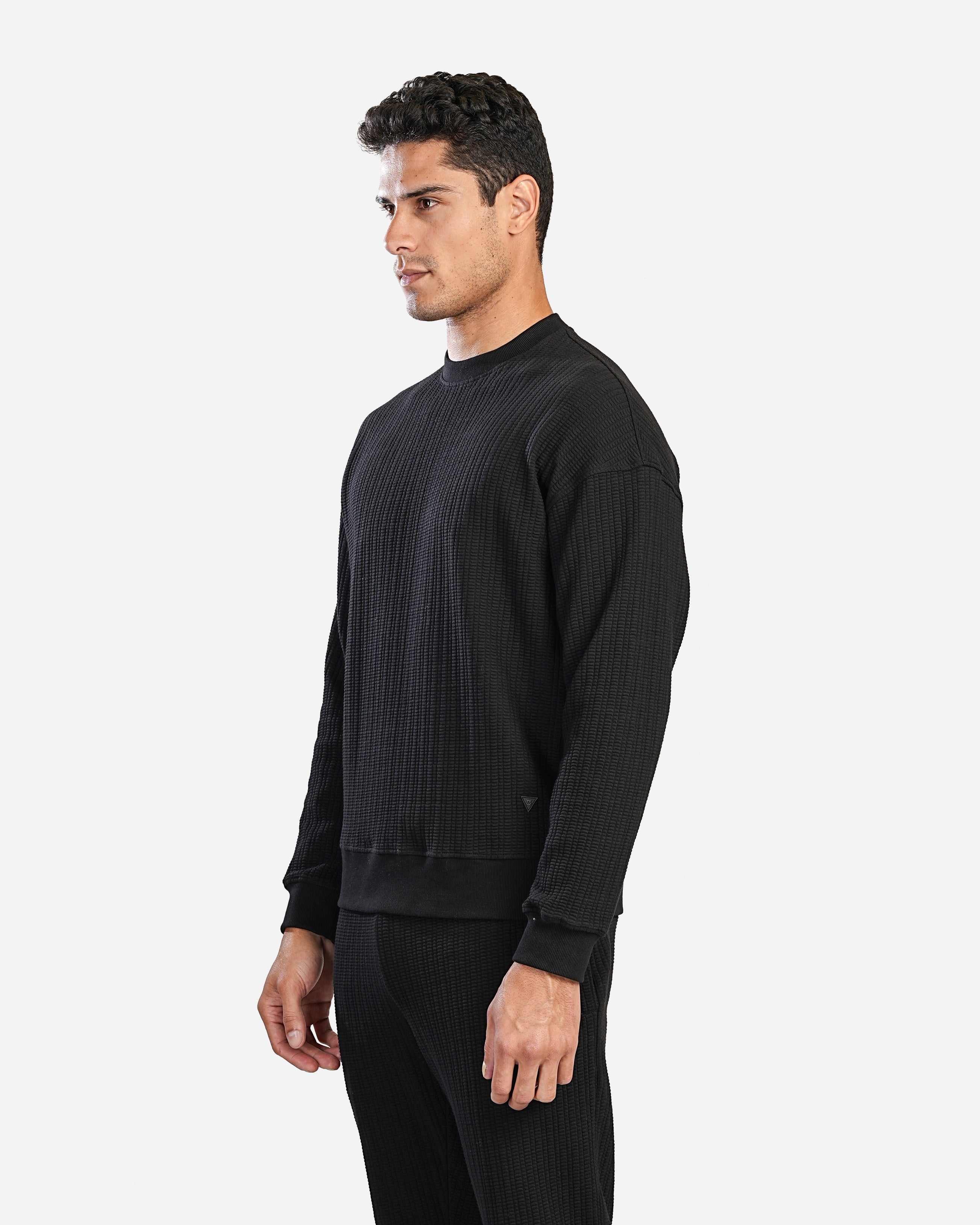 BLACK TEXTURED CREW SWEATSHIRT W25