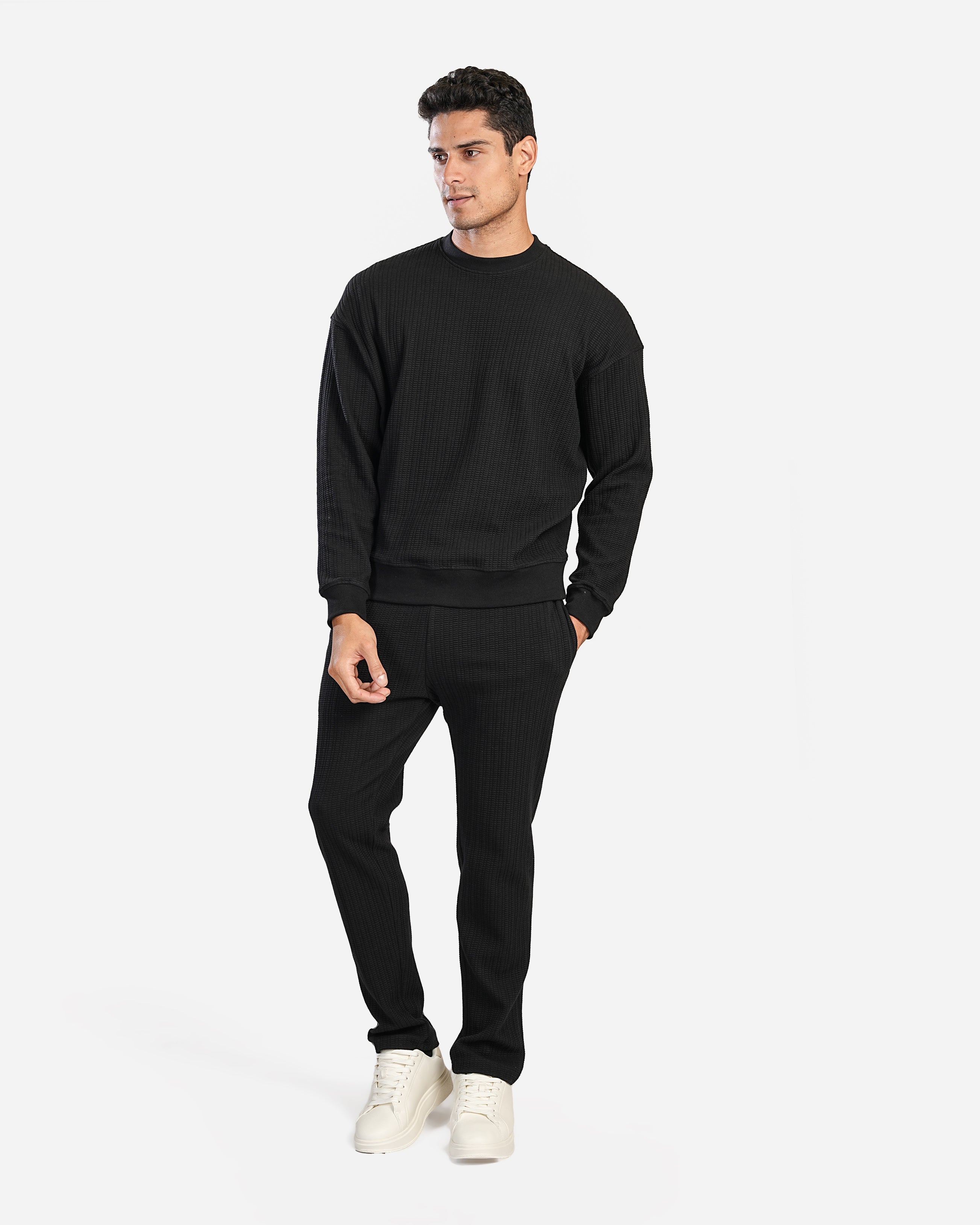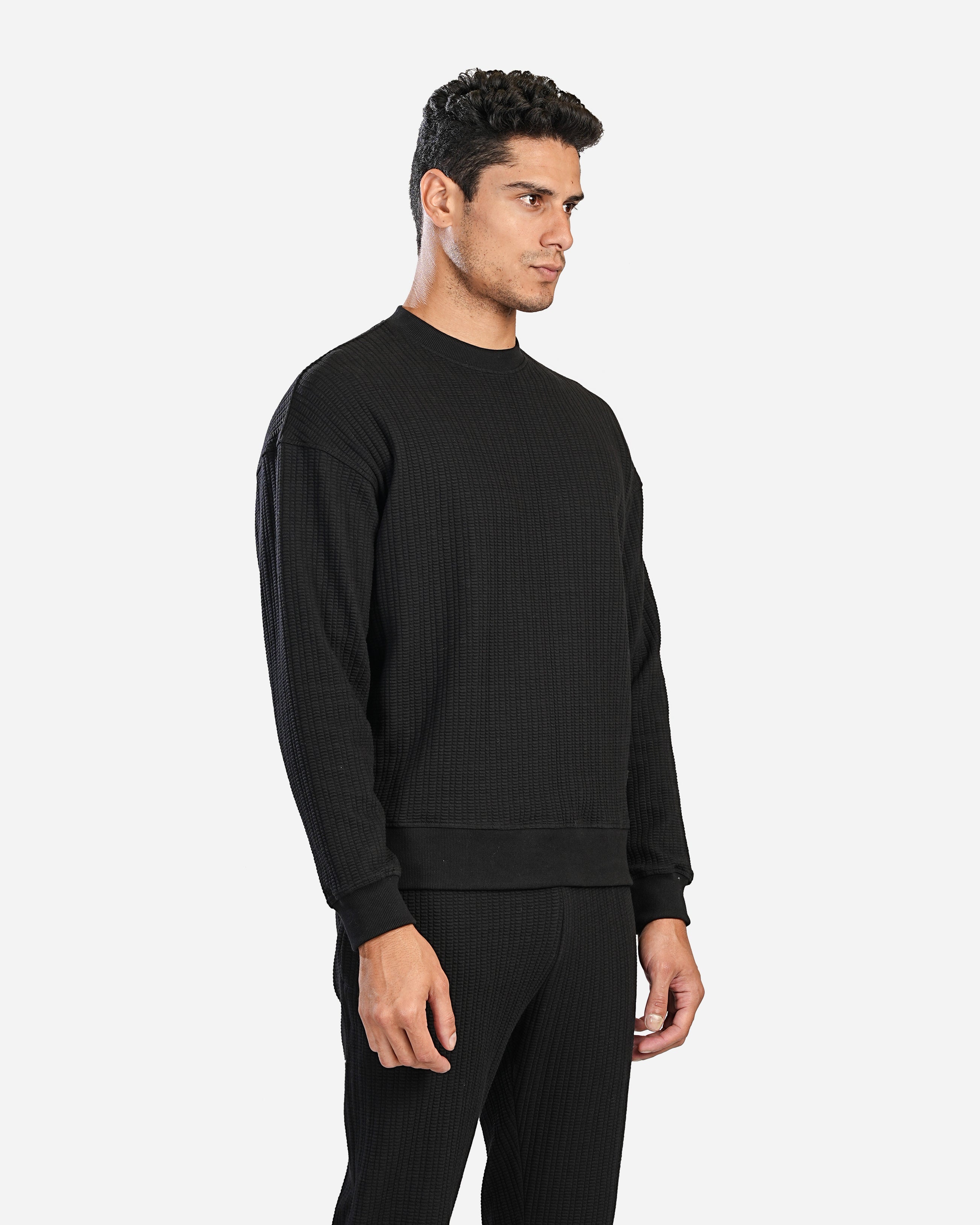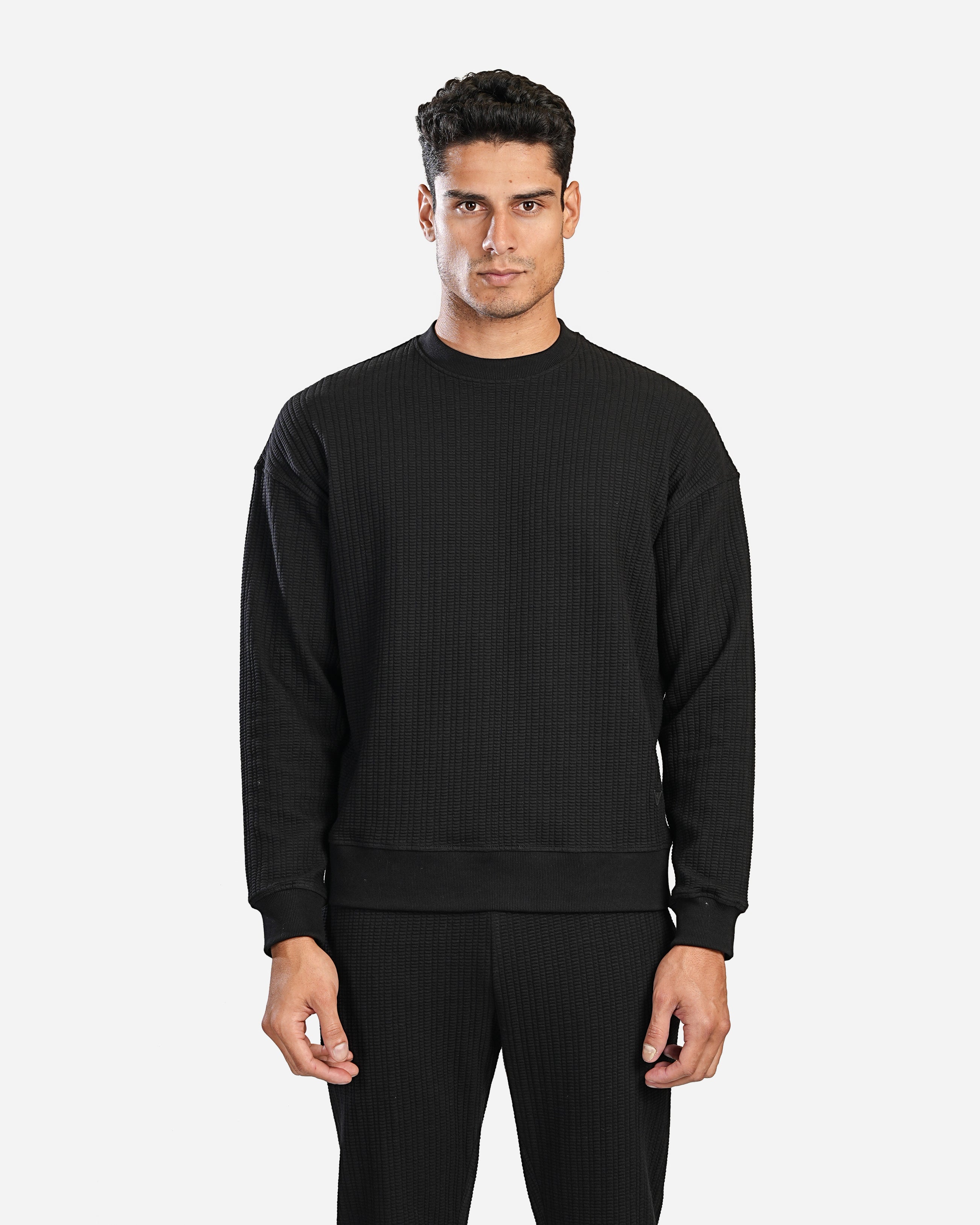 BLACK TEXTURED CREW SWEATSHIRT W25