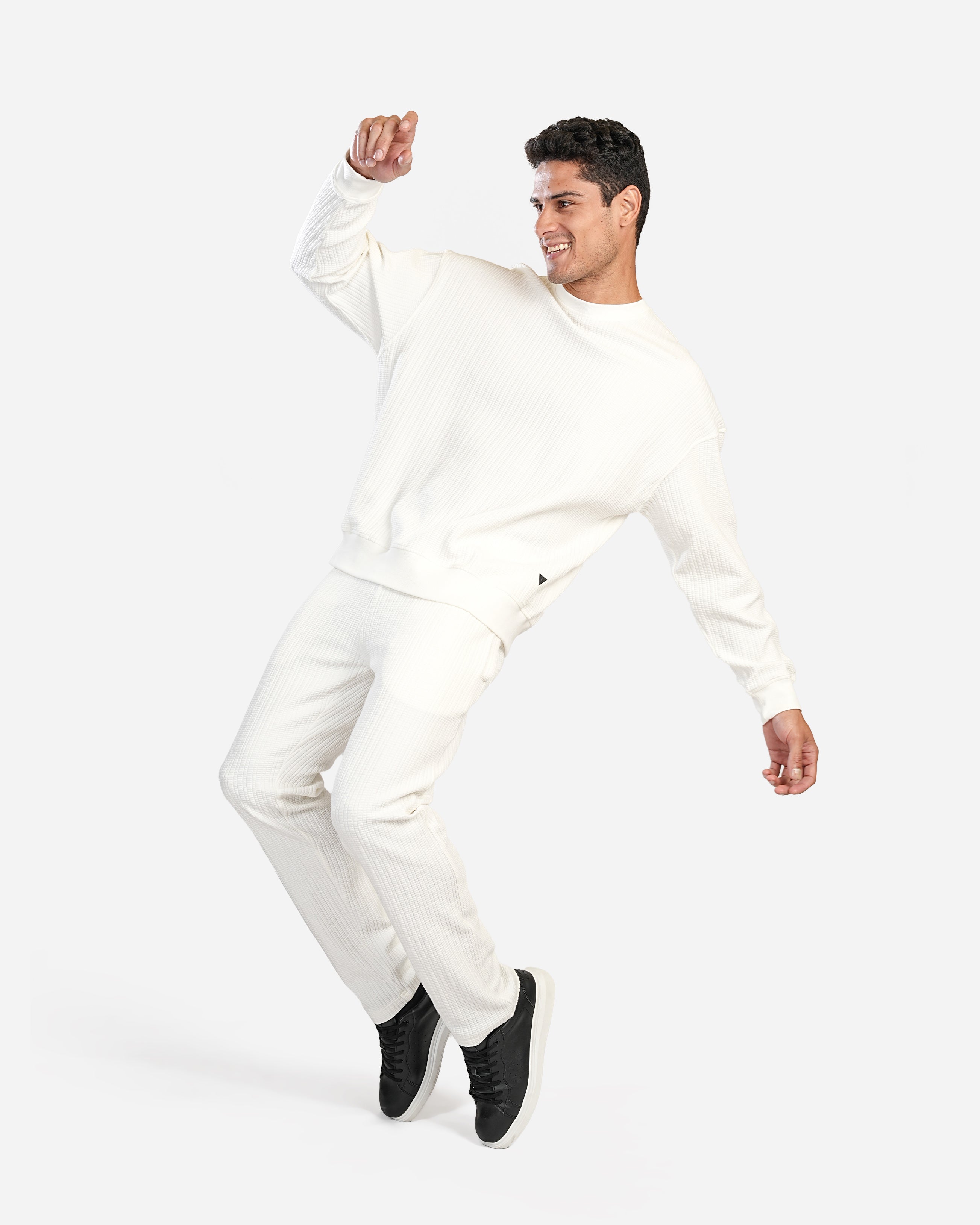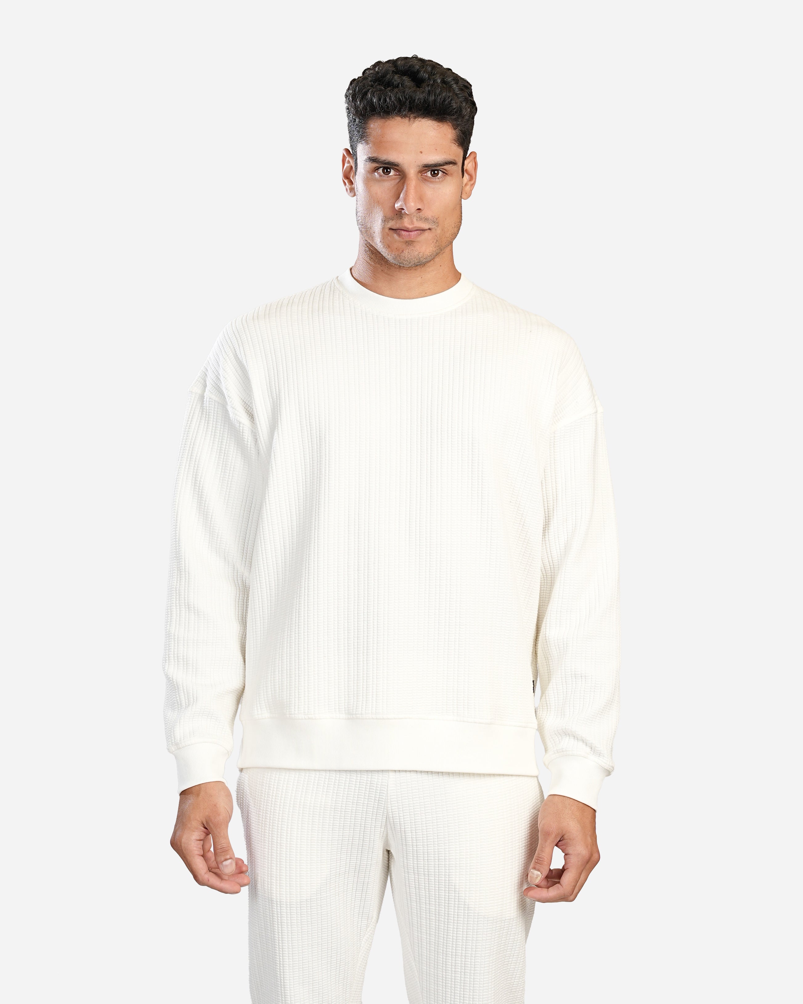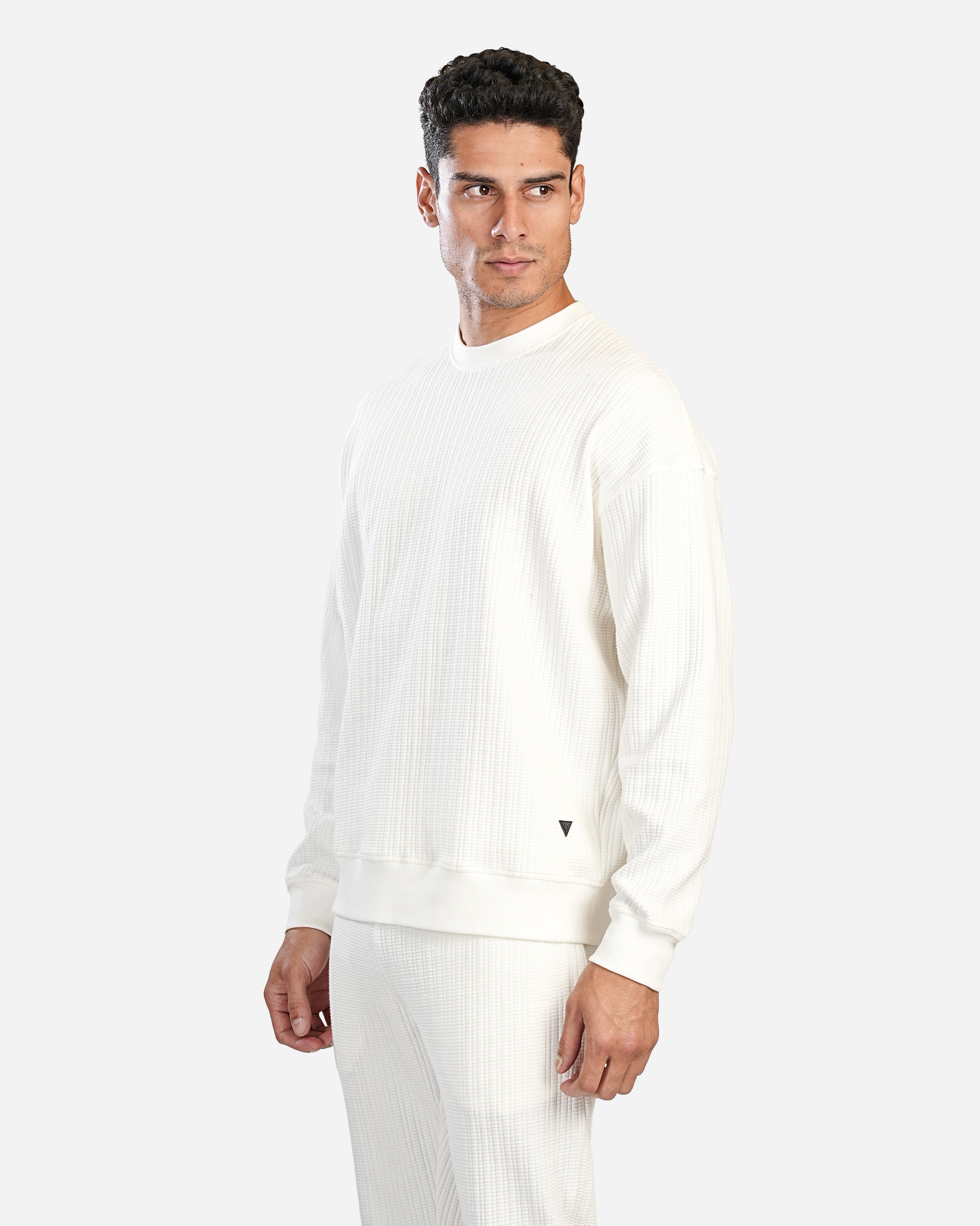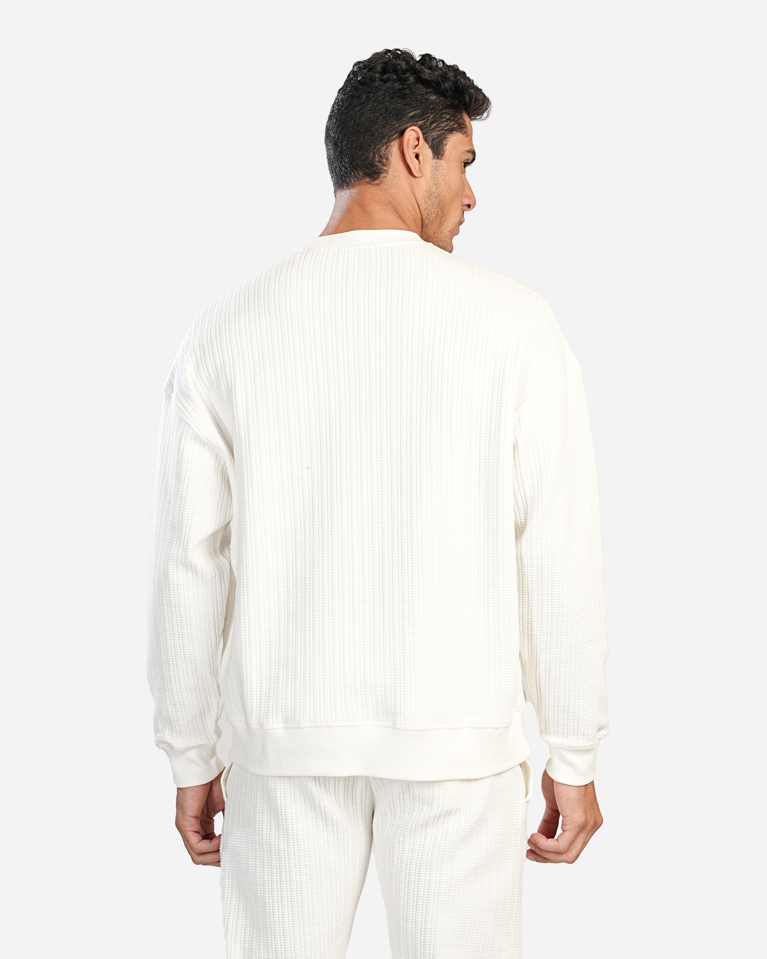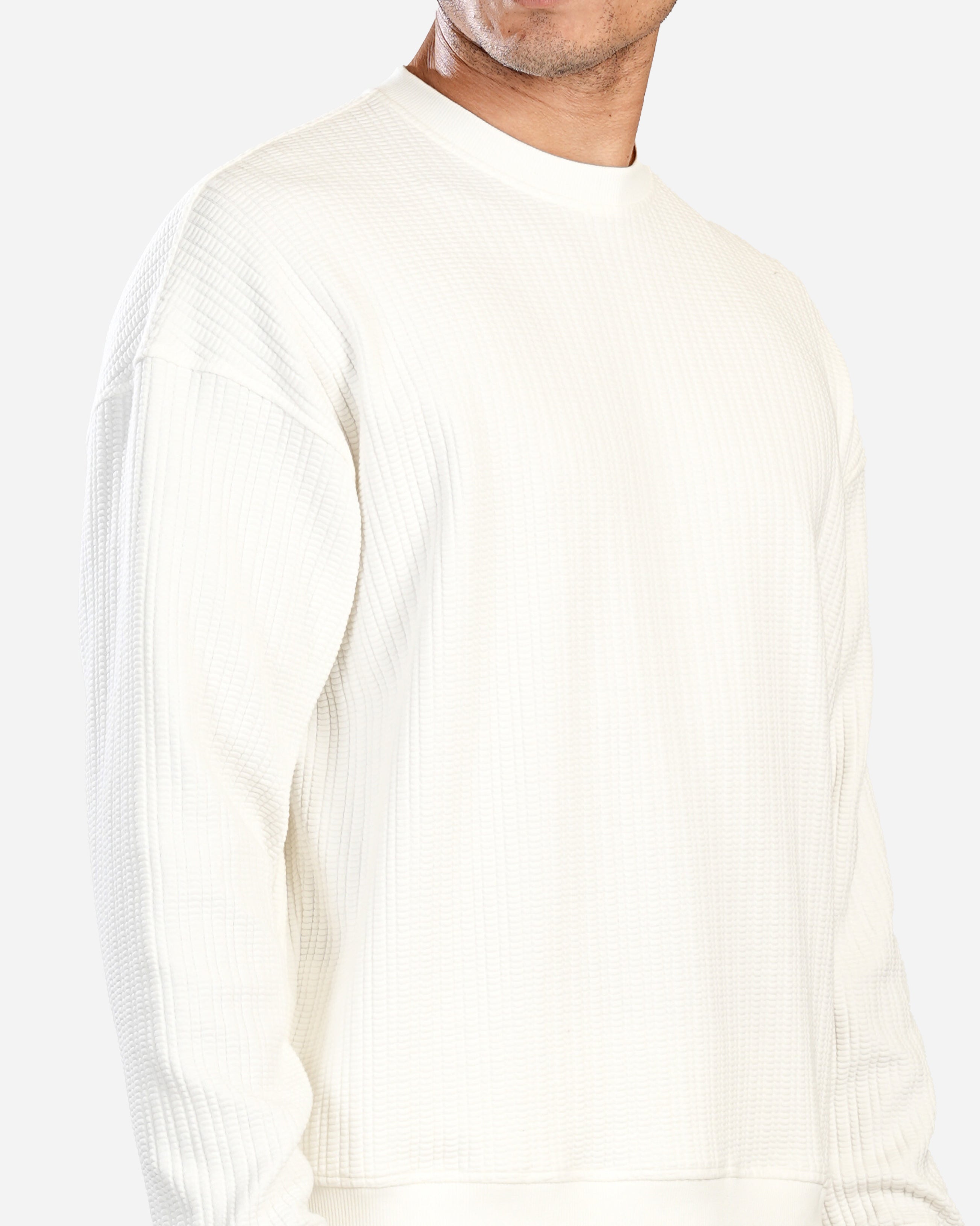WHITE TEXTURED CREW SWEATSHIRT W25