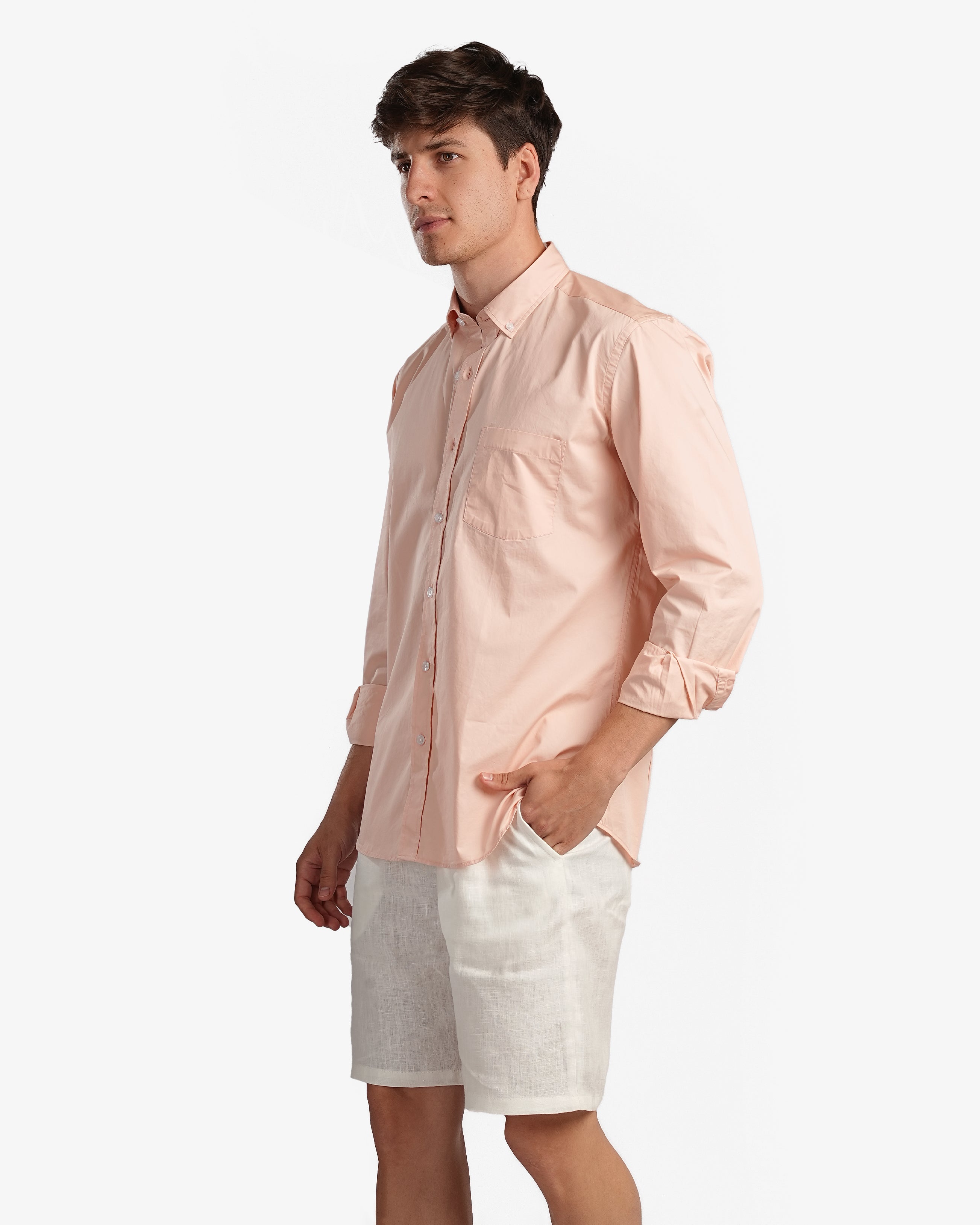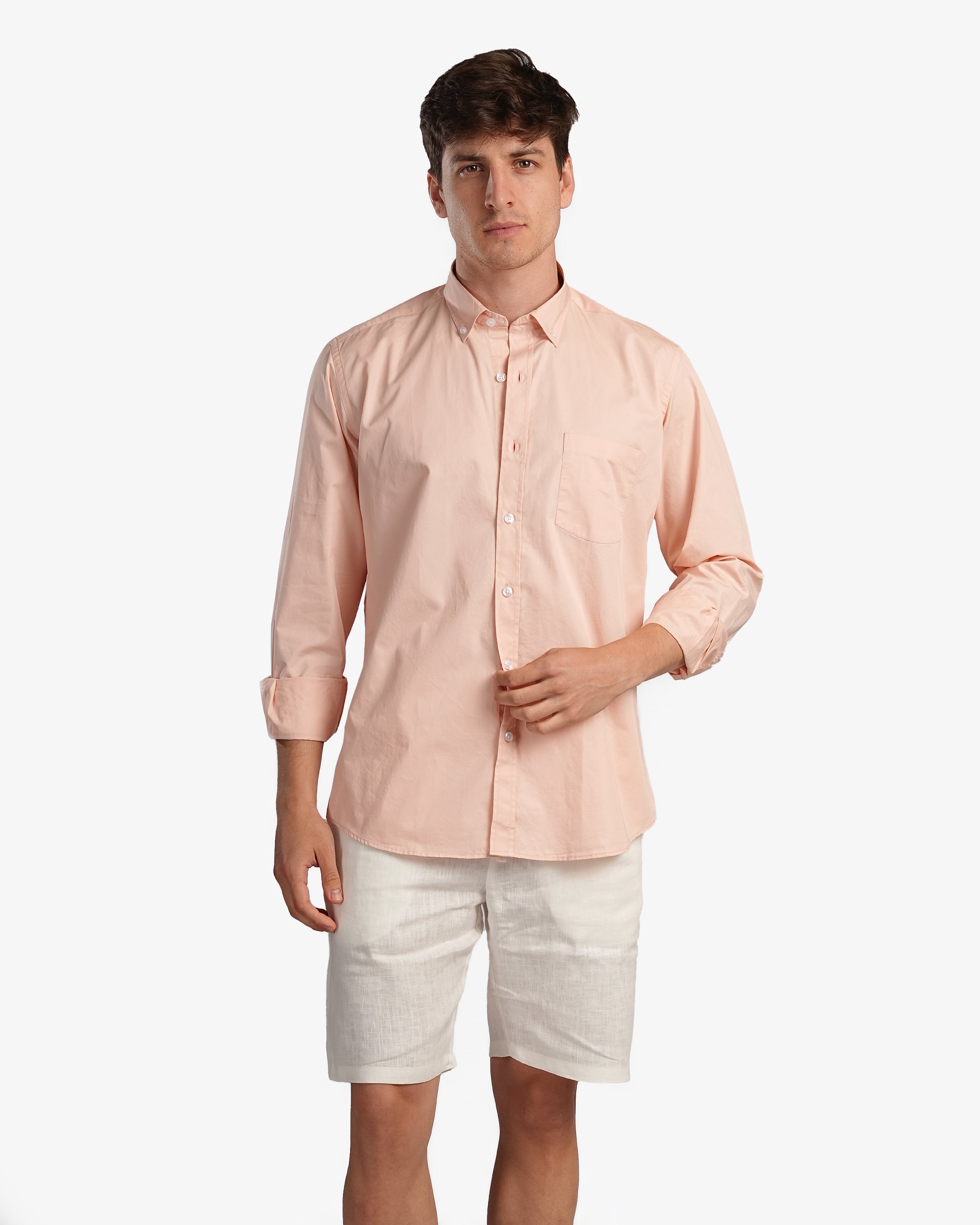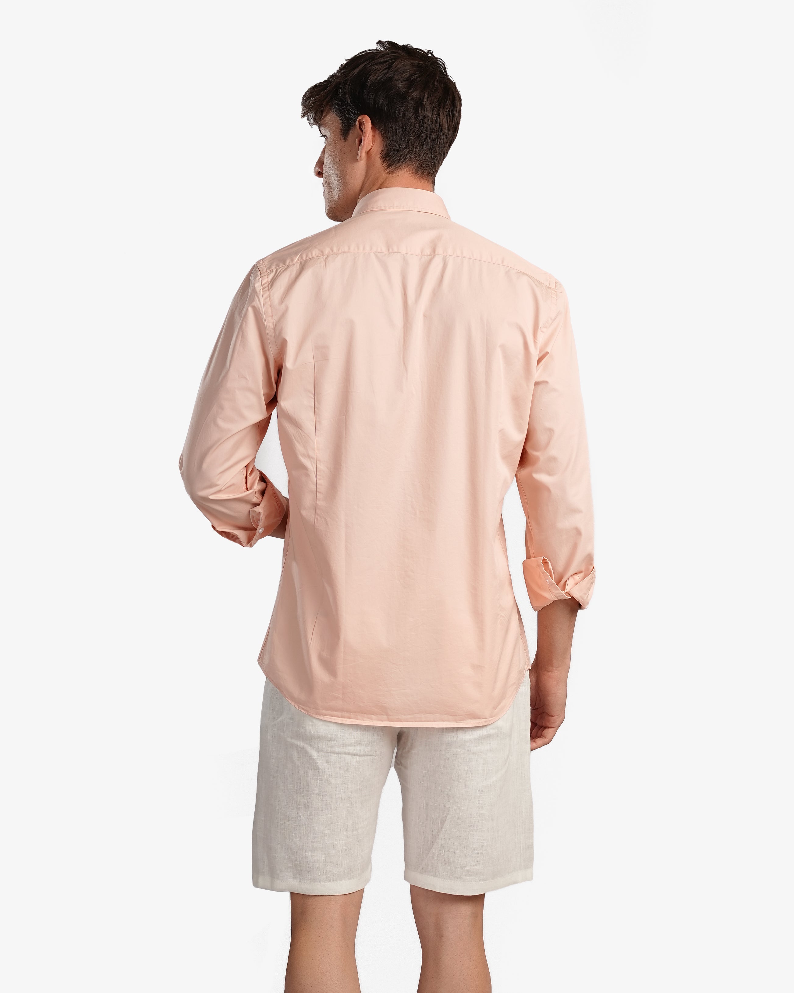 Slim fit shirt made of cotton fabric. Italian collar and long sleeves with buttoned cuffs. Front button closure.