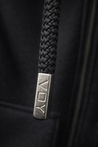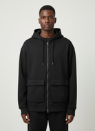 Designed for elevated everyday wear, the black Double-Zip Cargo Oversized Hoodie W25N blends utility aesthetics with modern minimalism.