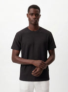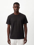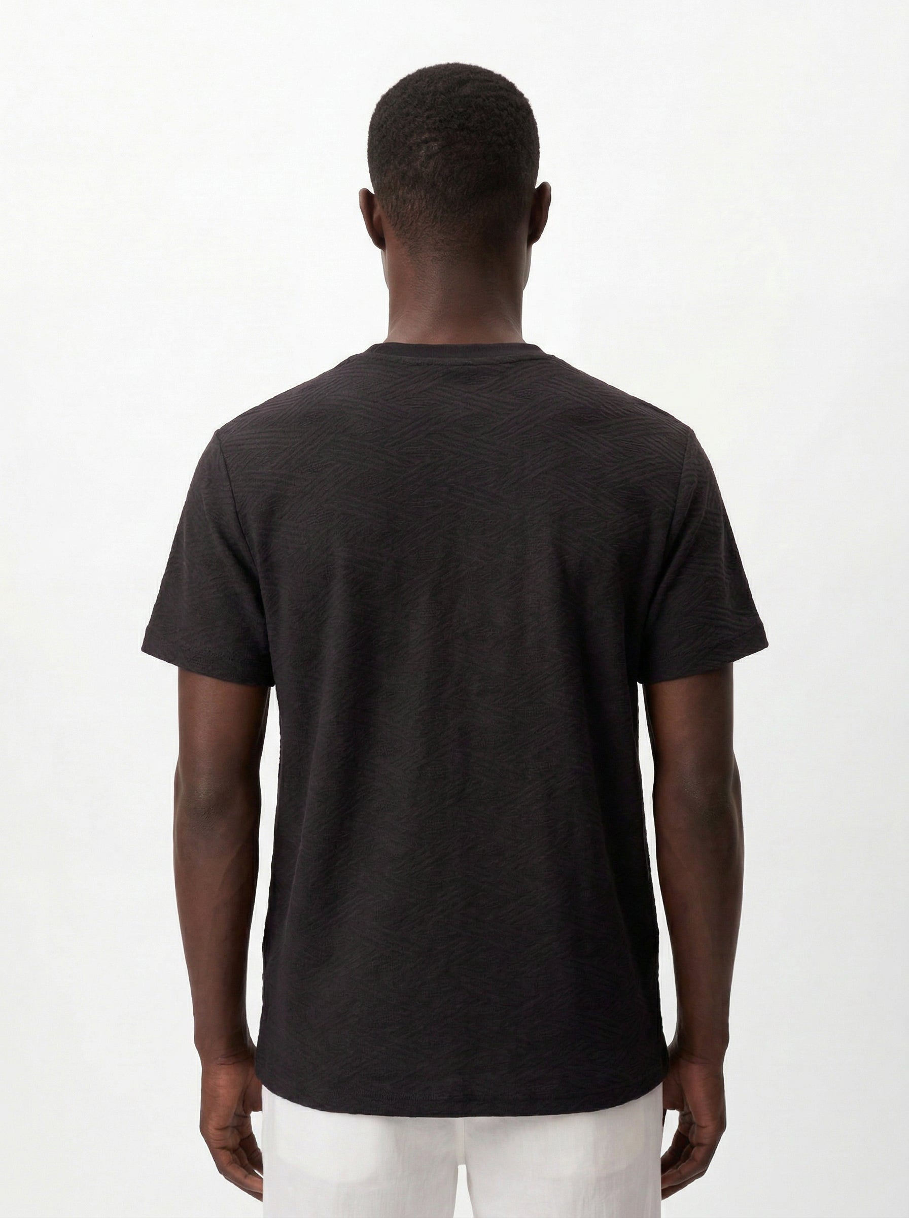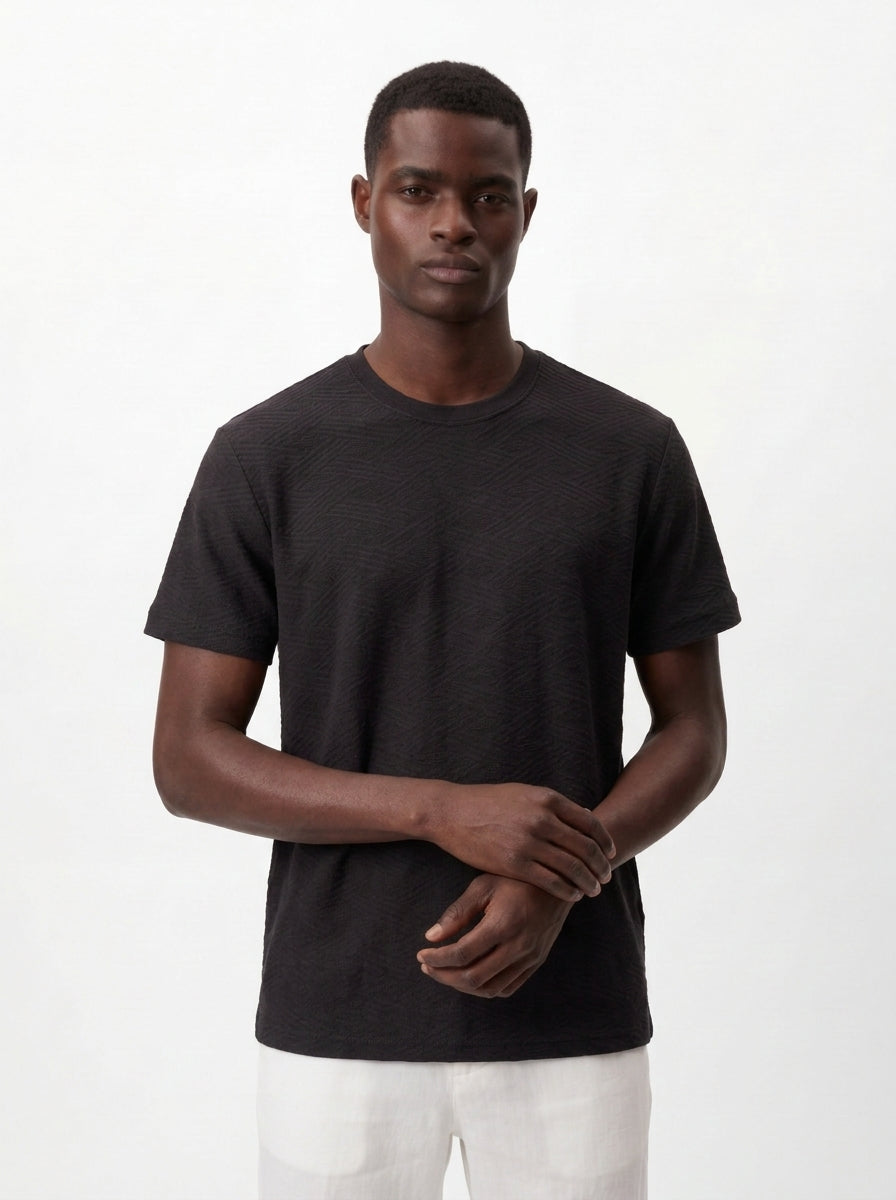 This slim-fit T-shirt is crafted from premium jacquard fabric, featuring a tone-on-tone textured pattern woven directly into the material. The all-black design delivers a sleek, refined look, while the subtle texture adds depth without distracting from the clean aesthetic.