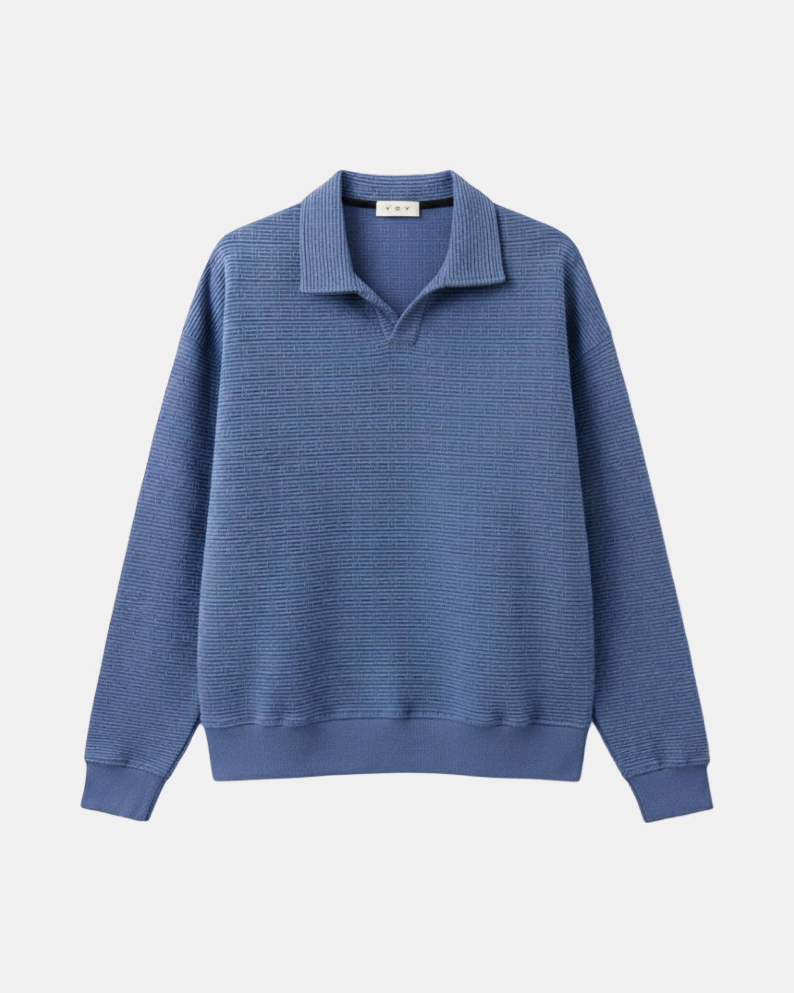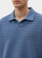 DESATURATED BLUE TEXTURED OPEN-COLLAR KNIT W25N