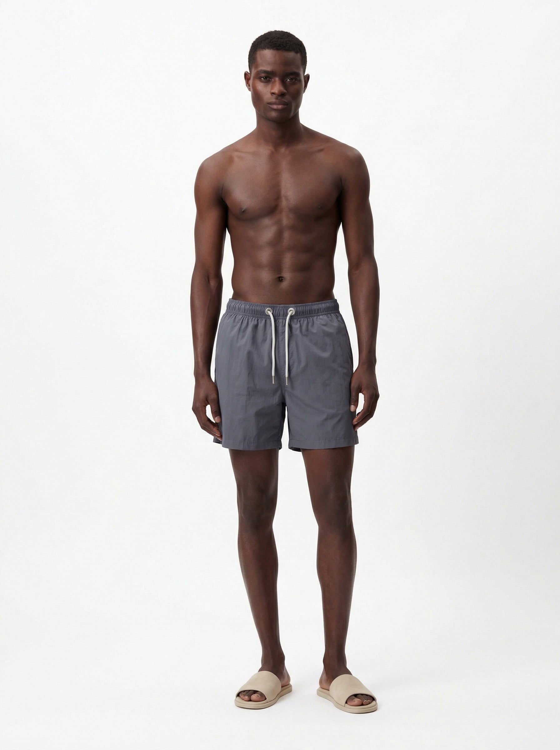 STORM BREAK GREY SOLID BASIC RELAXED SWIM TRUNK S26N