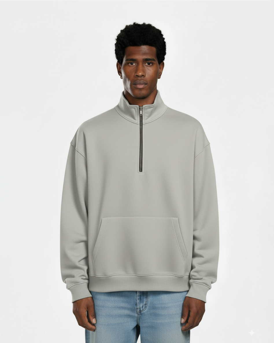 Design: Minimalist quarter-zip style with a stand collar for a sleek, contemporary look.