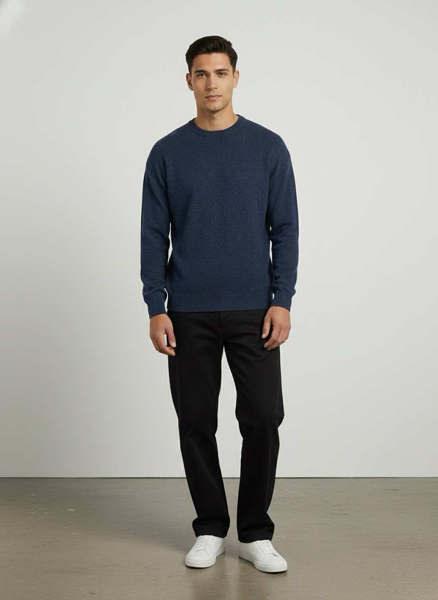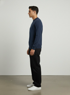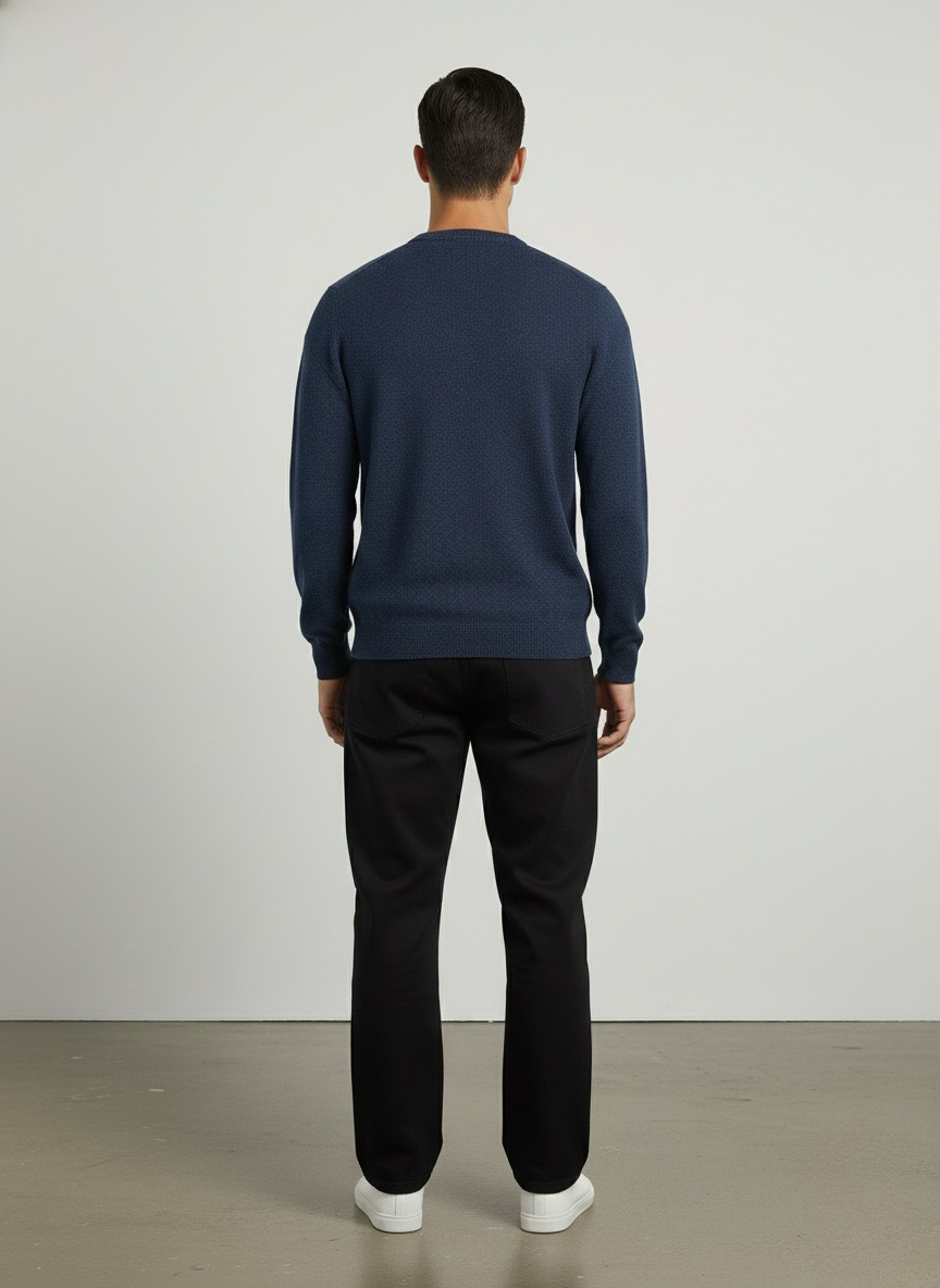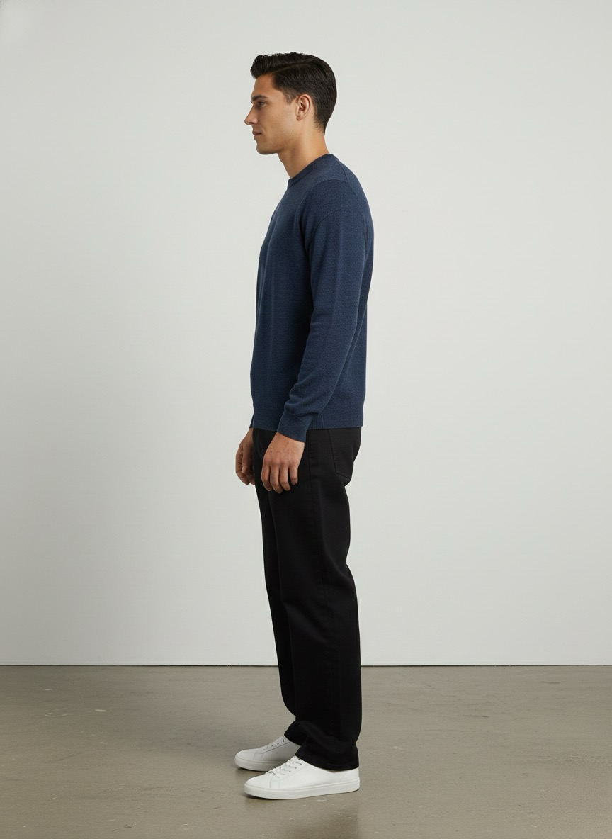 This micro-knit crewneck delivers a smooth, compact texture with a subtle two-tone grain, giving the piece a premium minimal look while maintaining everyday comfort.