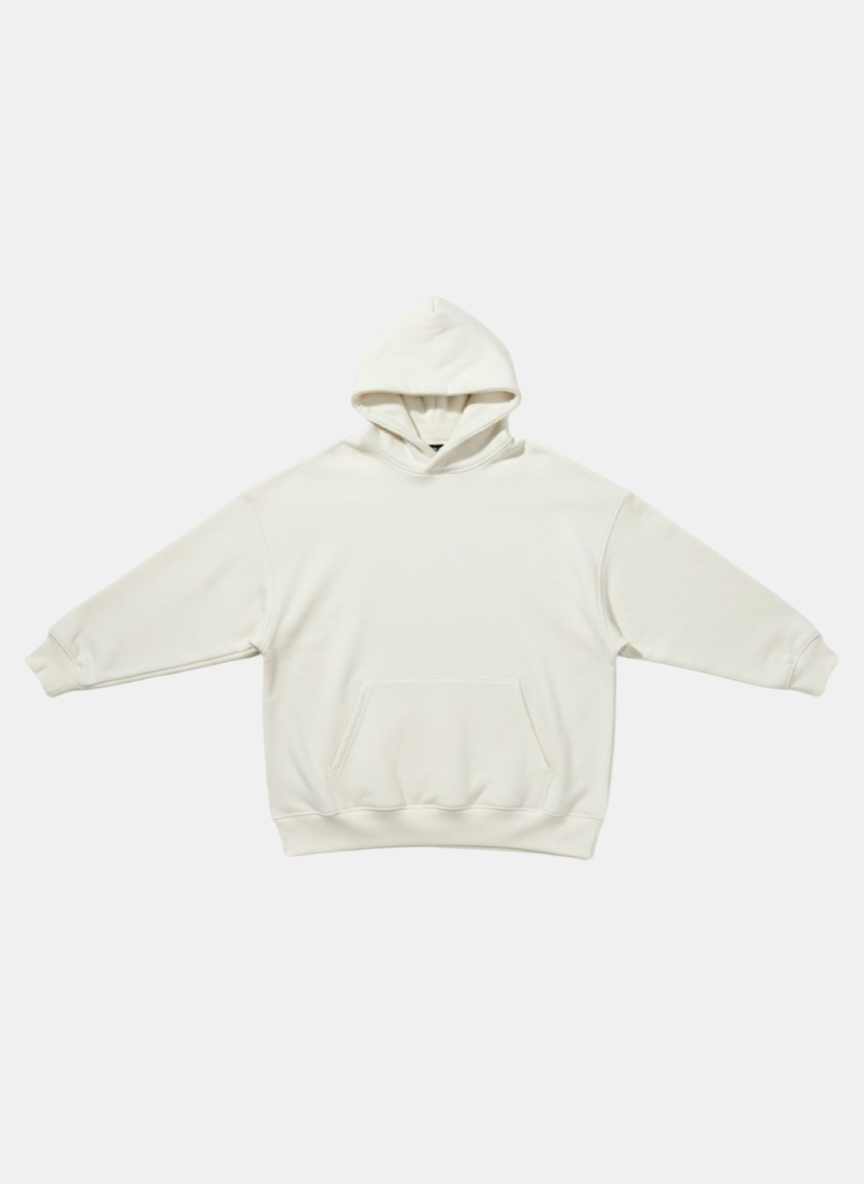 This lightweight oversized hoodie comes in a muted white tone — a refined, black blend designed for modern timeless wardrobes. Featuring a relaxed drop-shoulder silhouette with naturally loose sleeves, it delivers an airy drape without compromising structure.