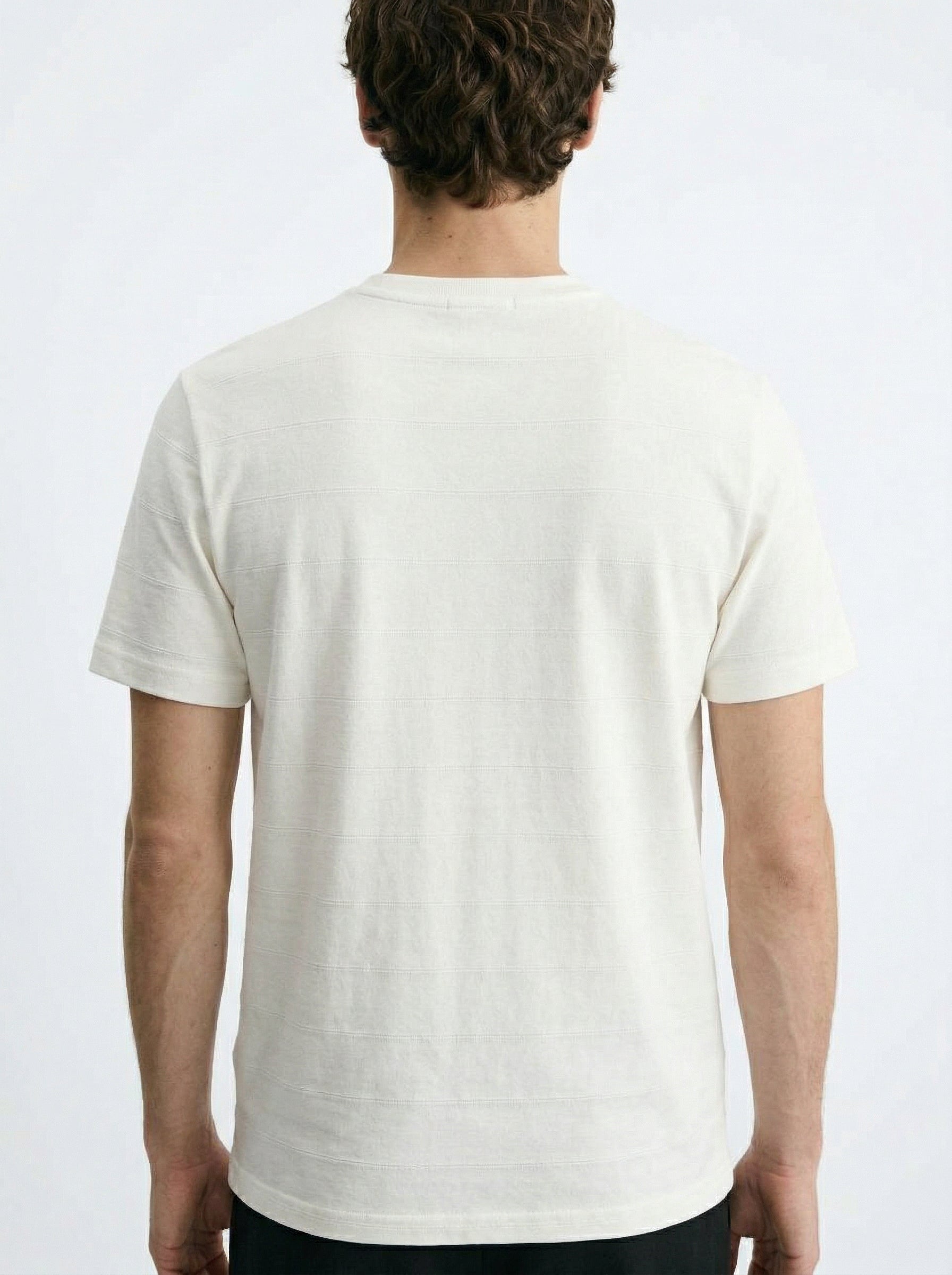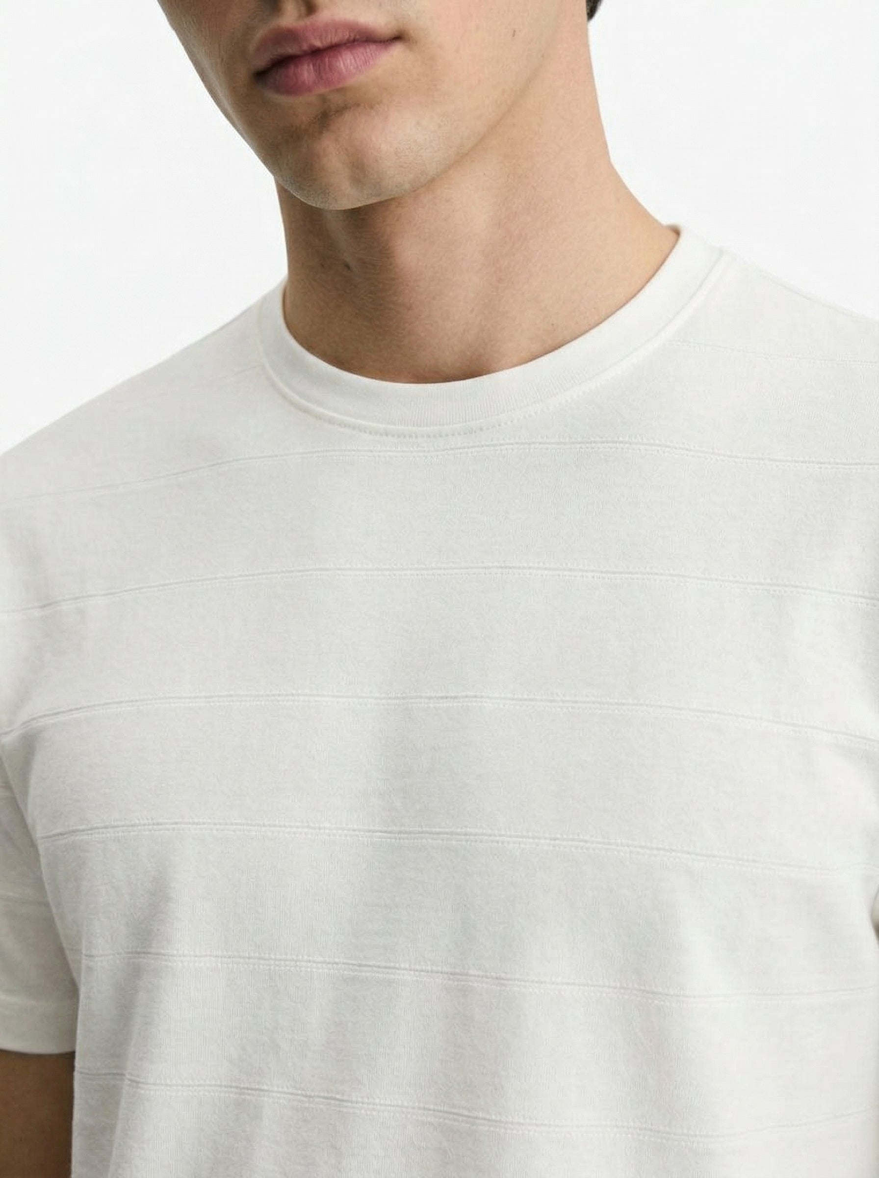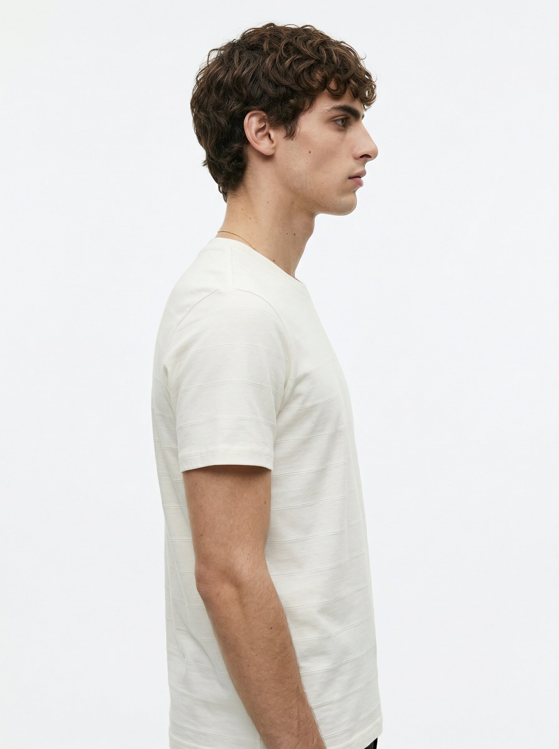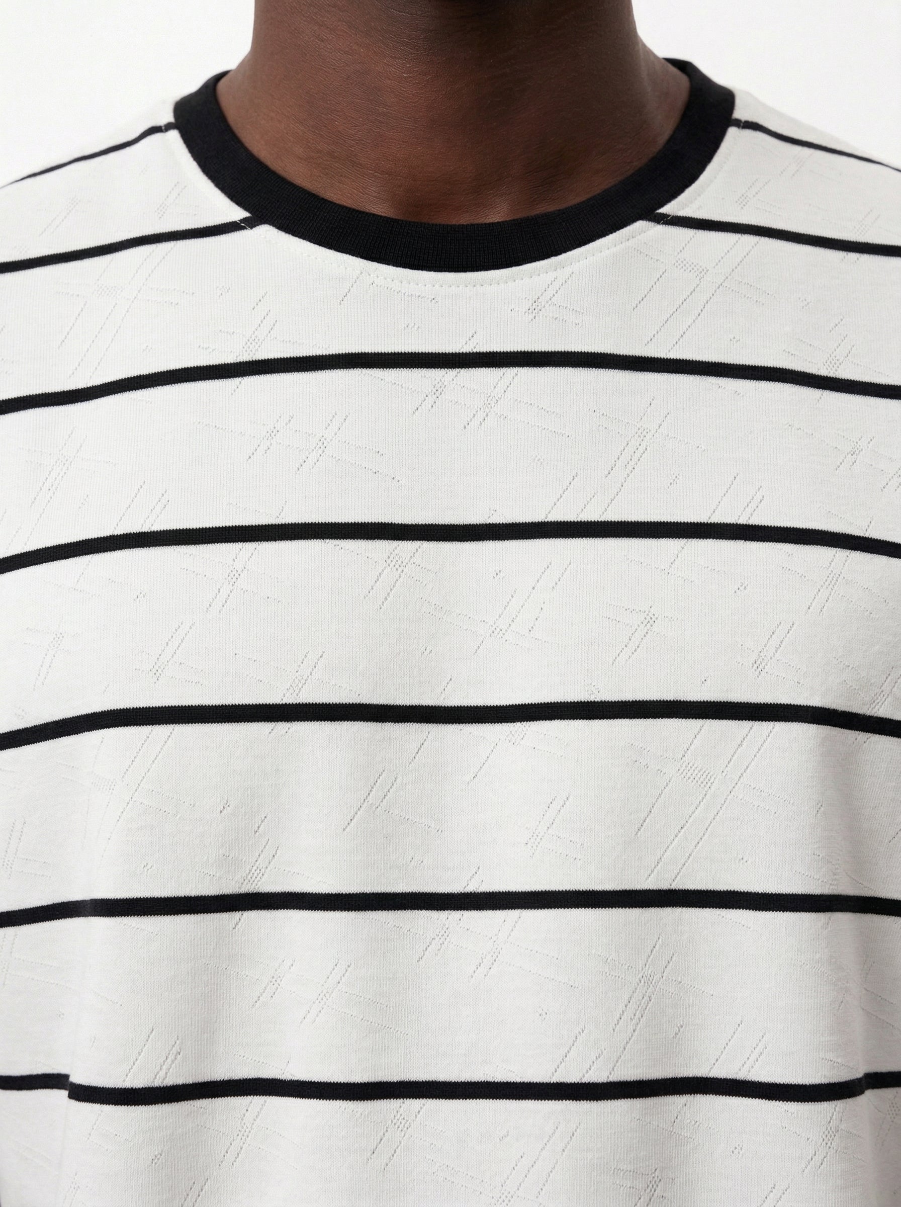 OFF WHITE TONAL HORIZONTAL STRIPE TEXTURED SLIM-FIT T-SHIRT S26N