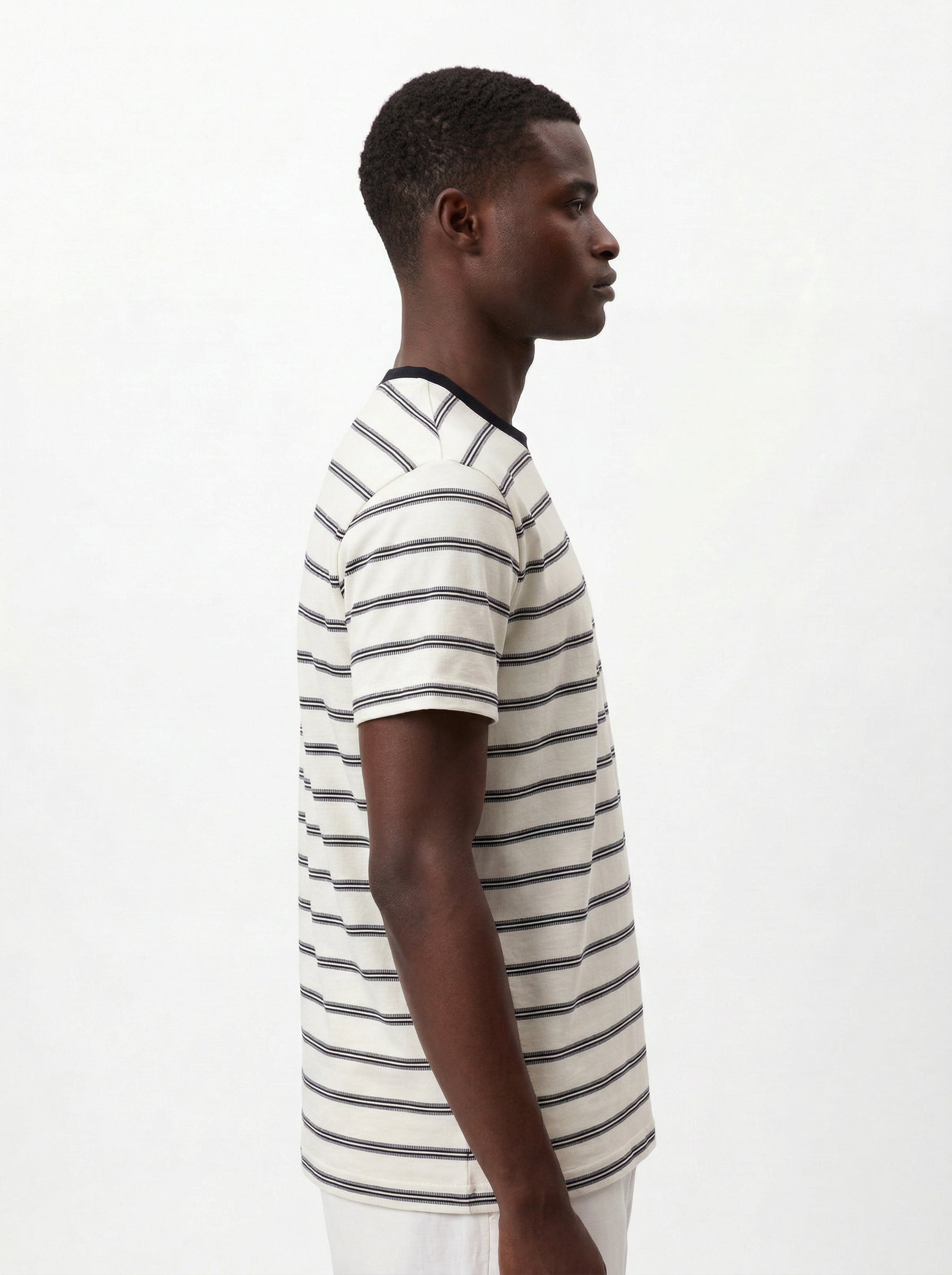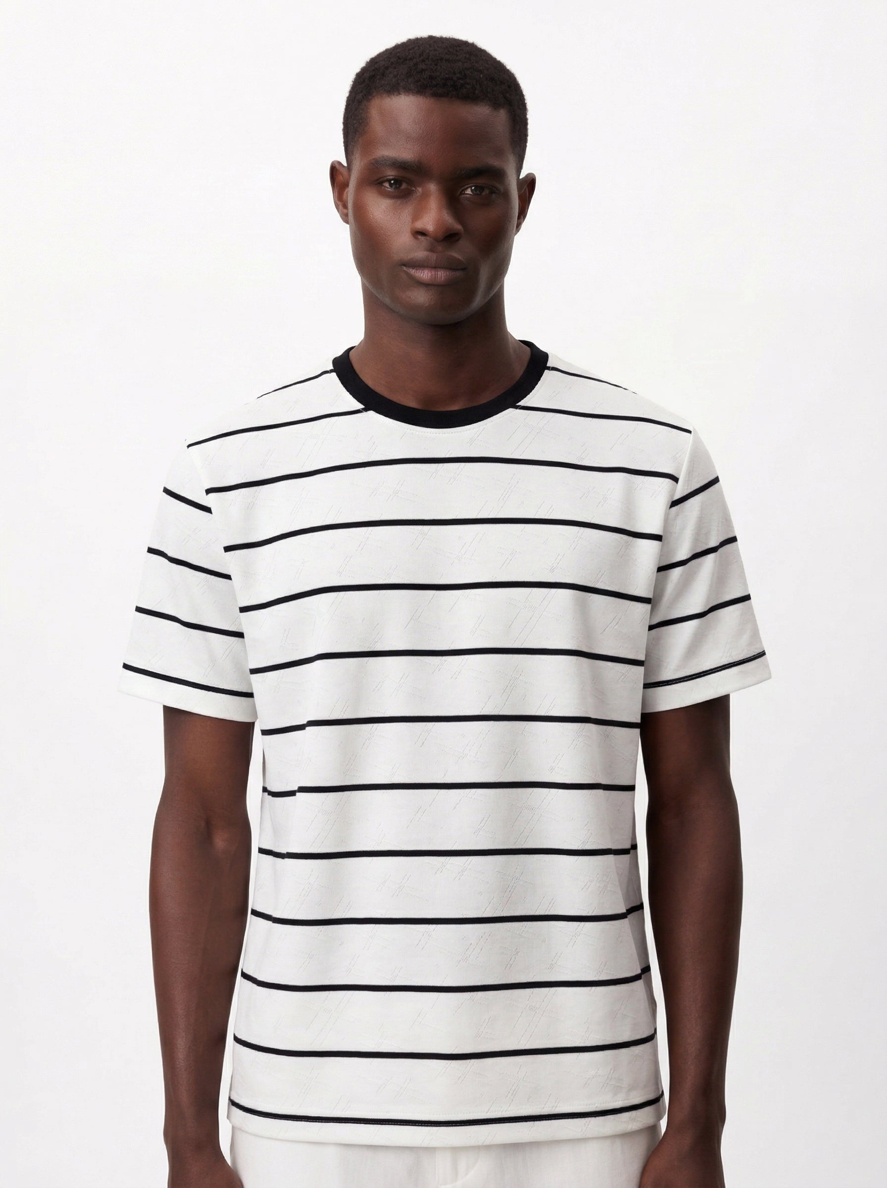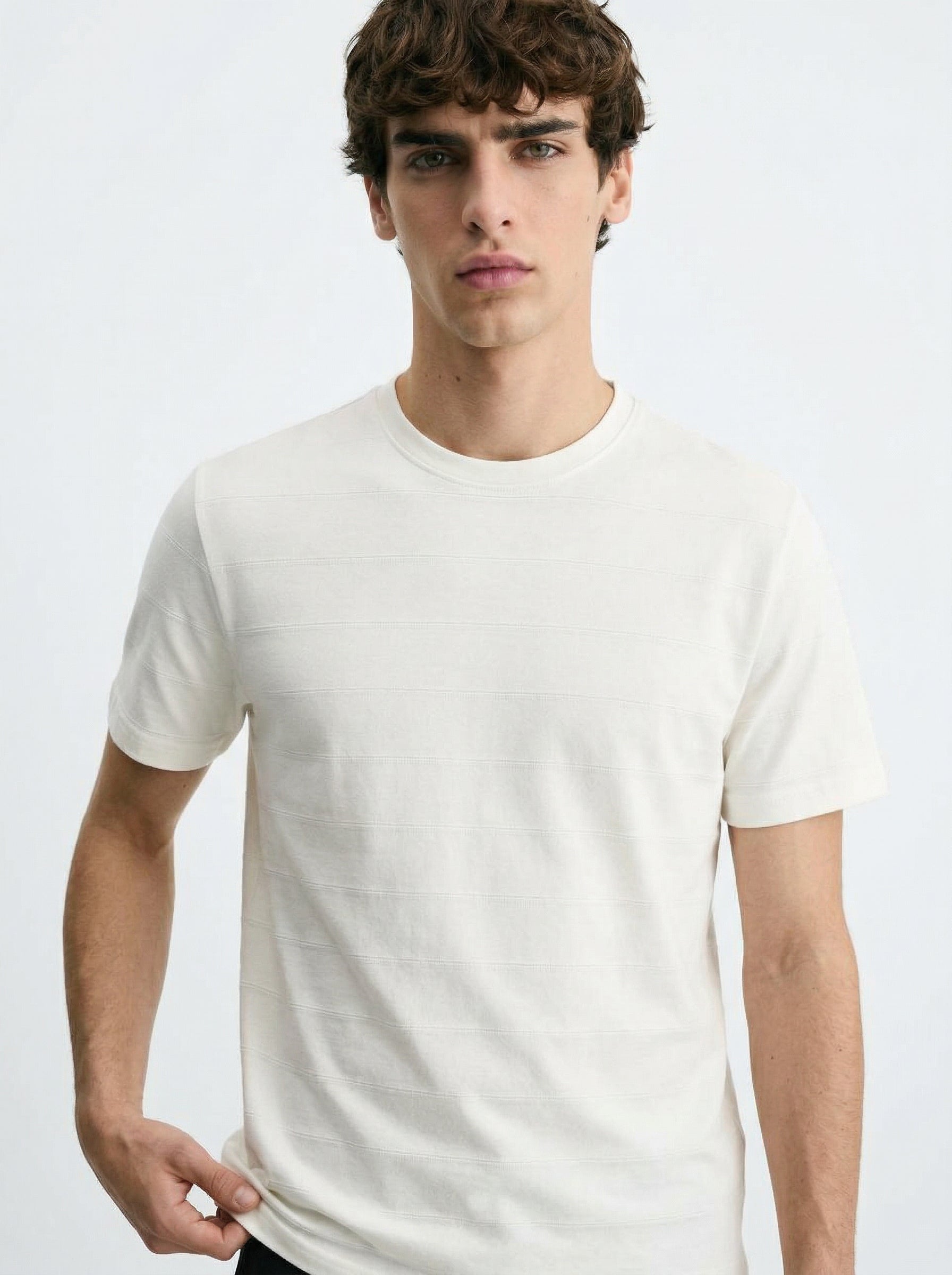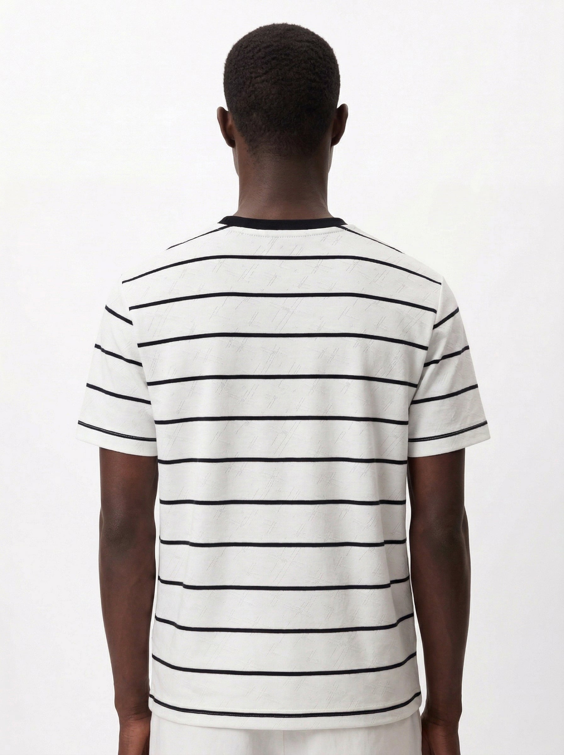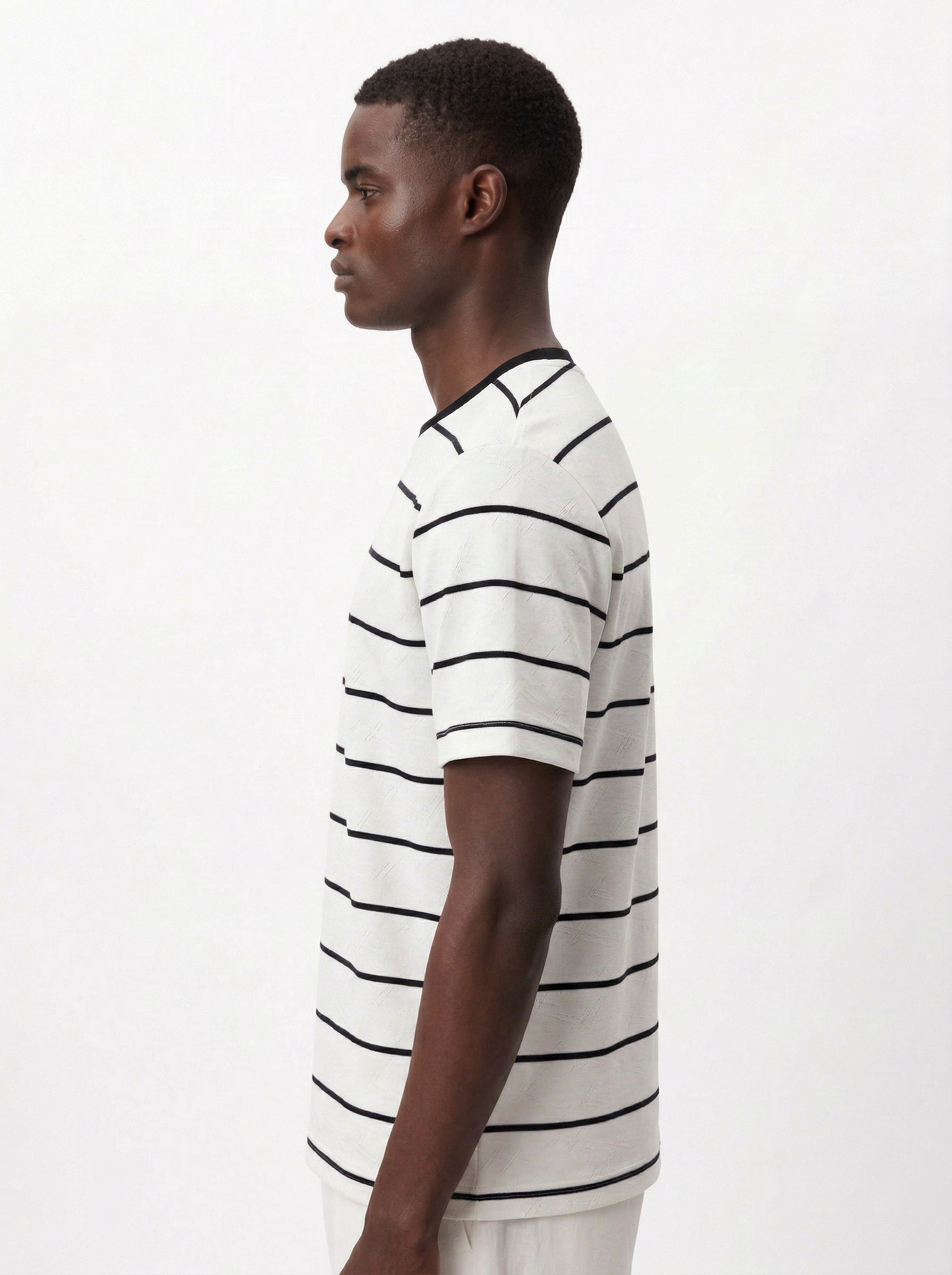 OFF WHITE TONAL HORIZONTAL STRIPE TEXTURED SLIM-FIT T-SHIRT S26N