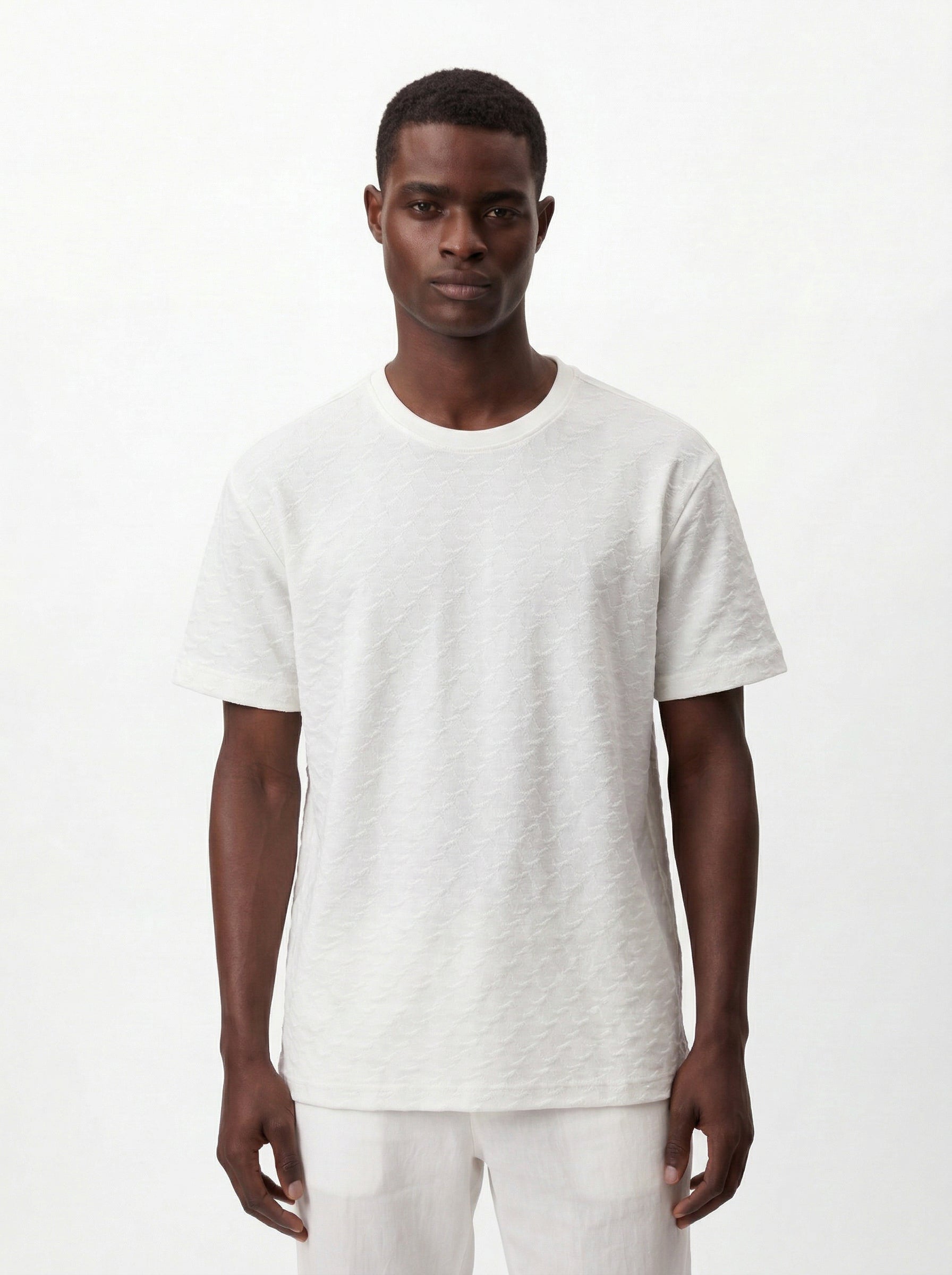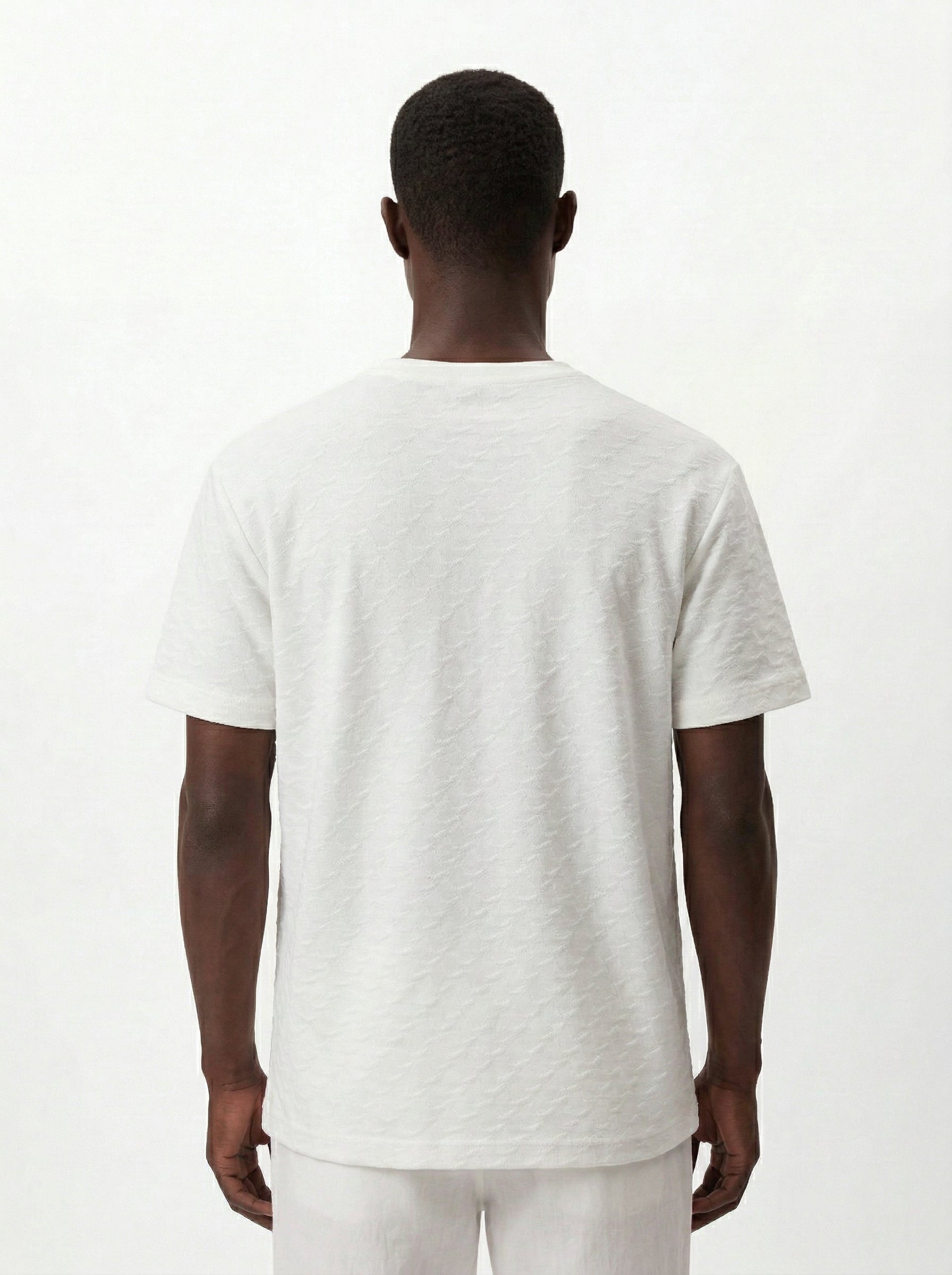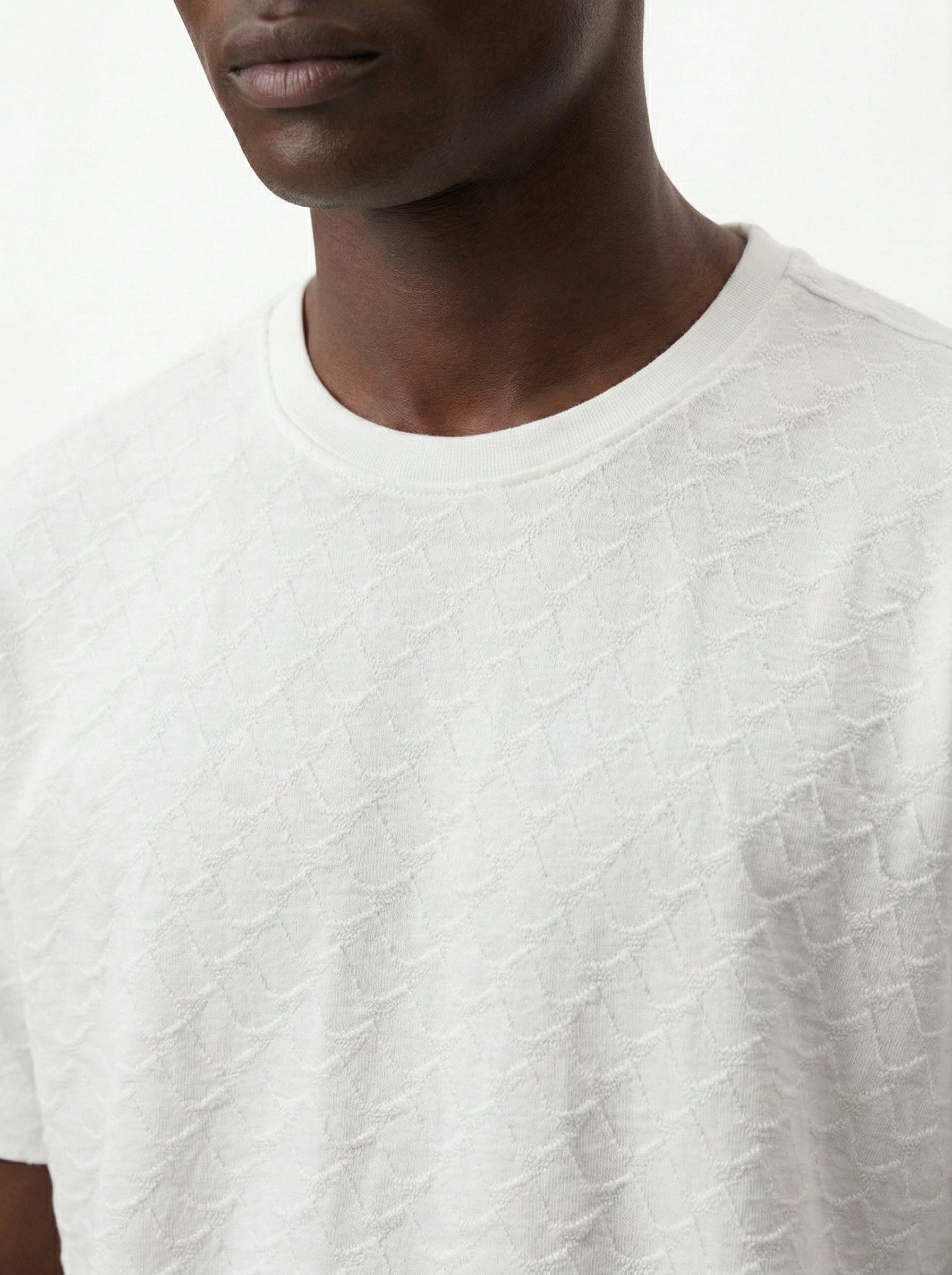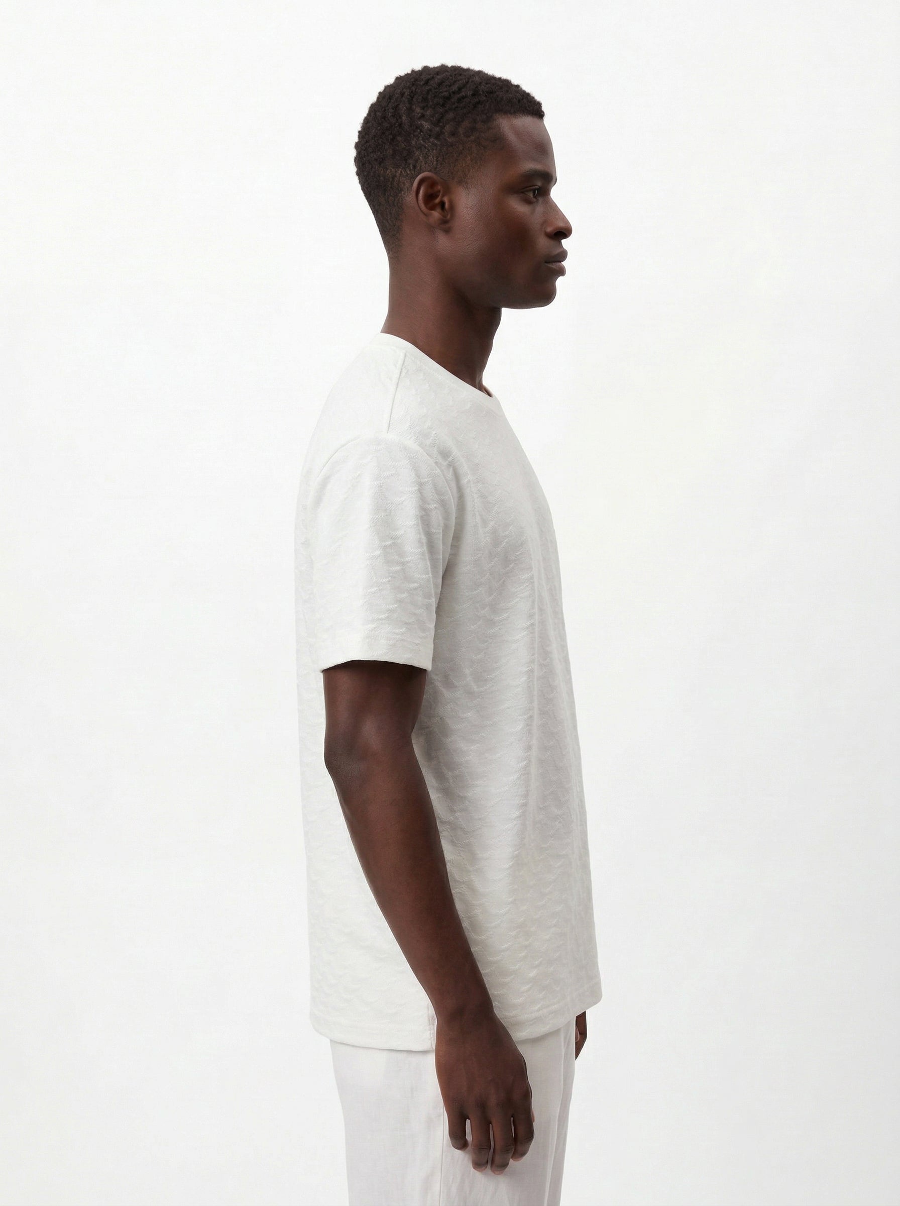OFF WHITE TONAL HORIZONTAL STRIPE TEXTURED SLIM-FIT T-SHIRT S26N