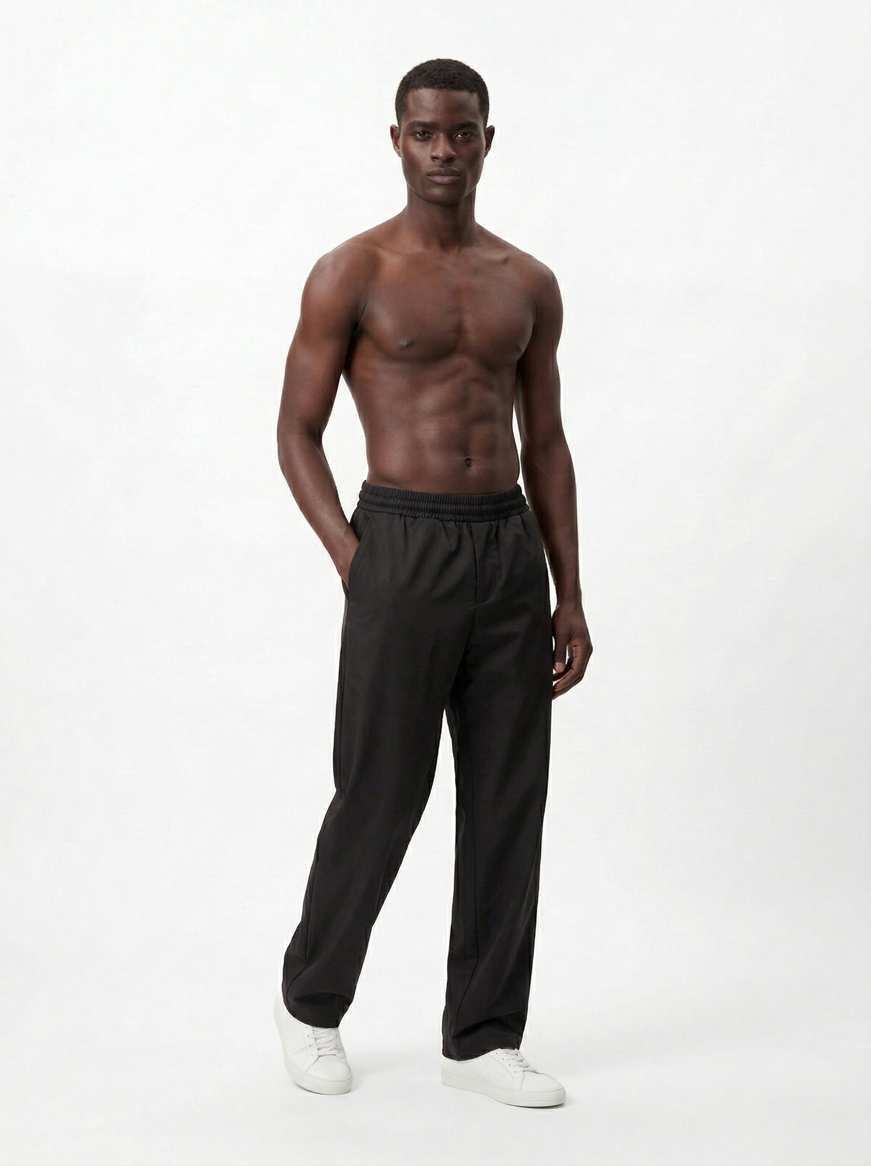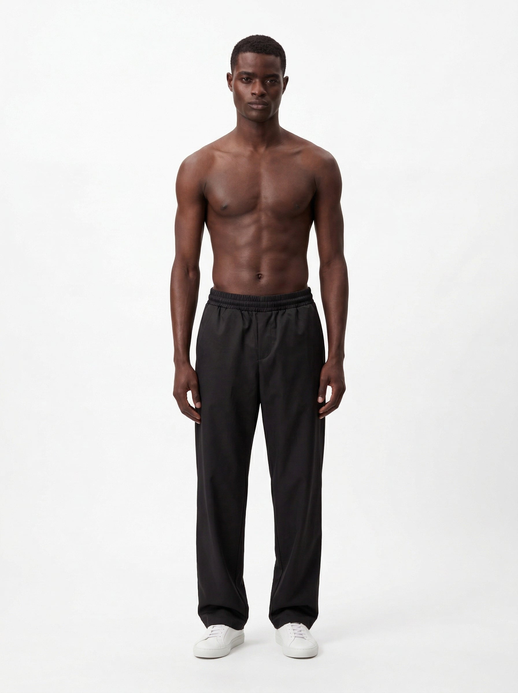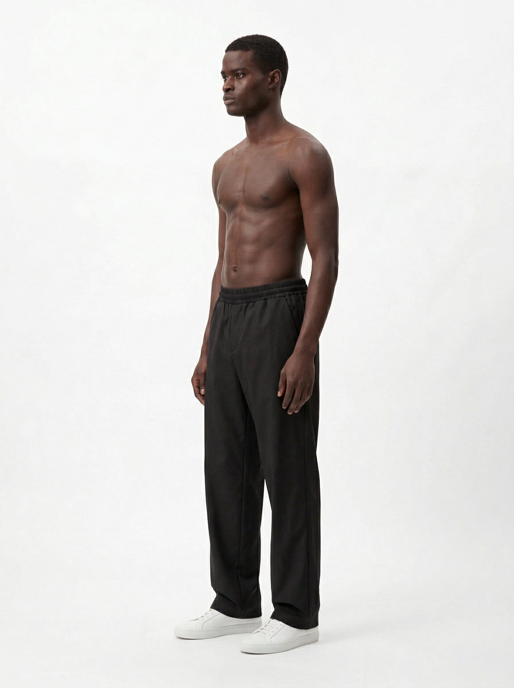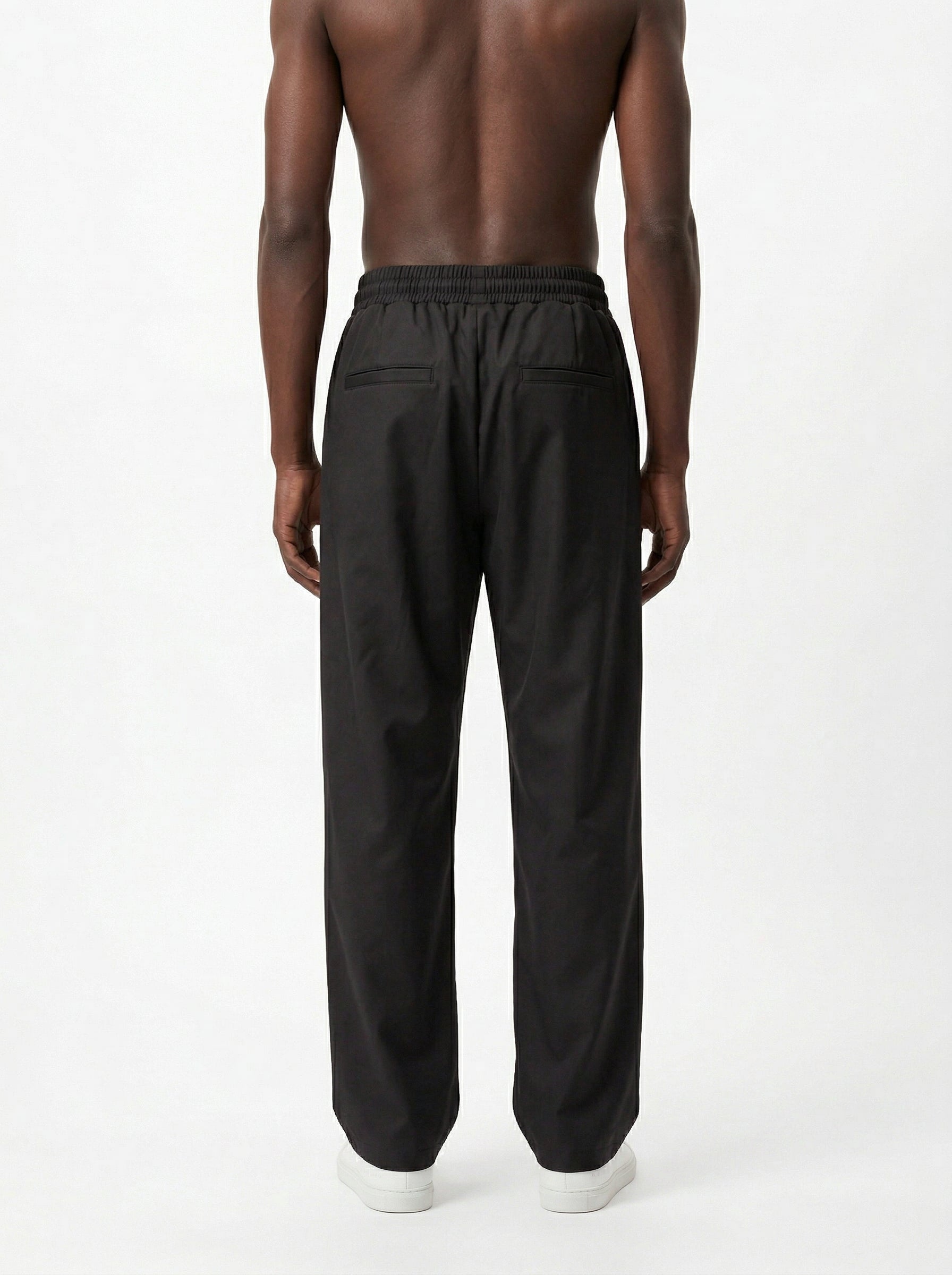BLACK LIGHTWEIGHT GABARDINE WIDE-LEG PANTS S26N