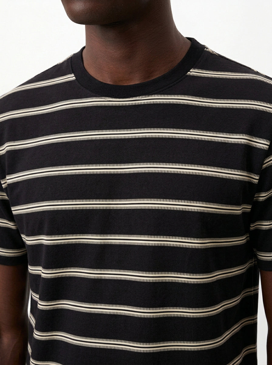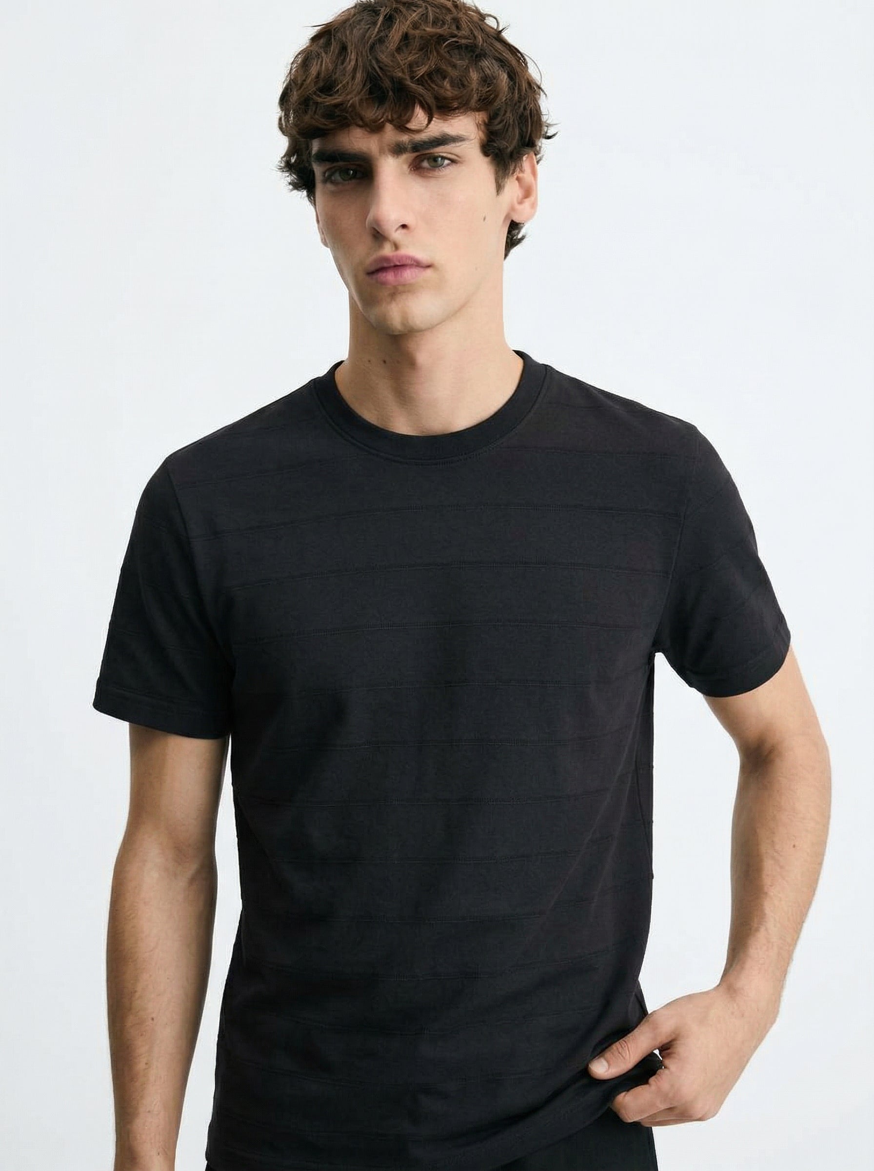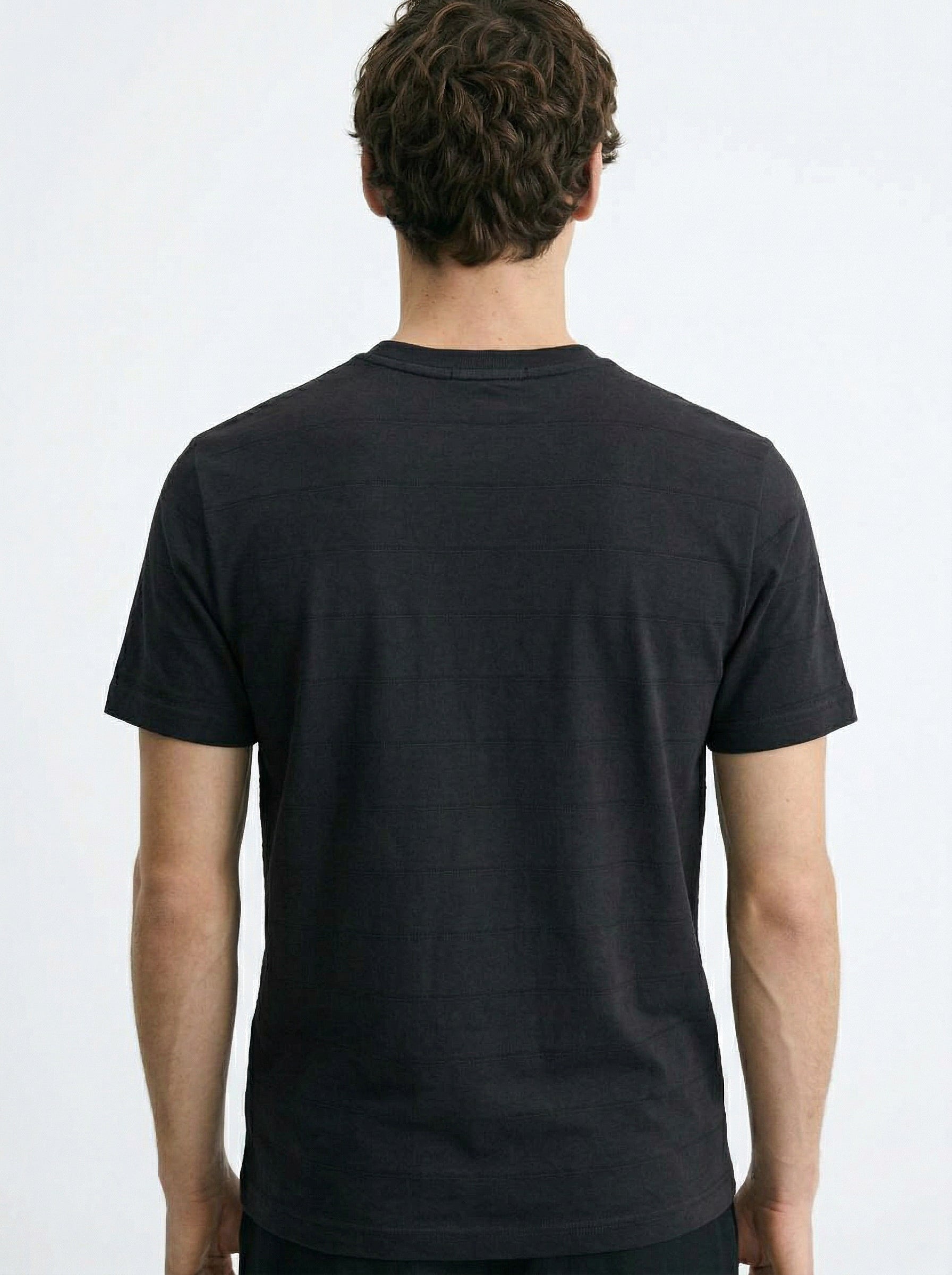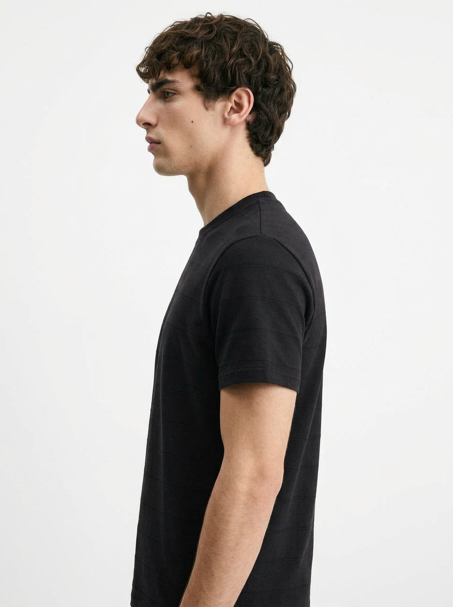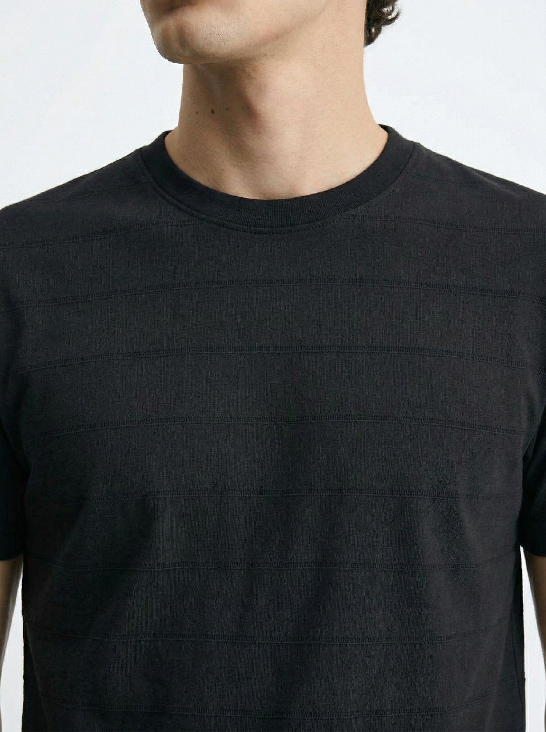 BLACK TONAL HORIZONTAL STRIPE TEXTURED SLIM-FIT T-SHIRT S26N