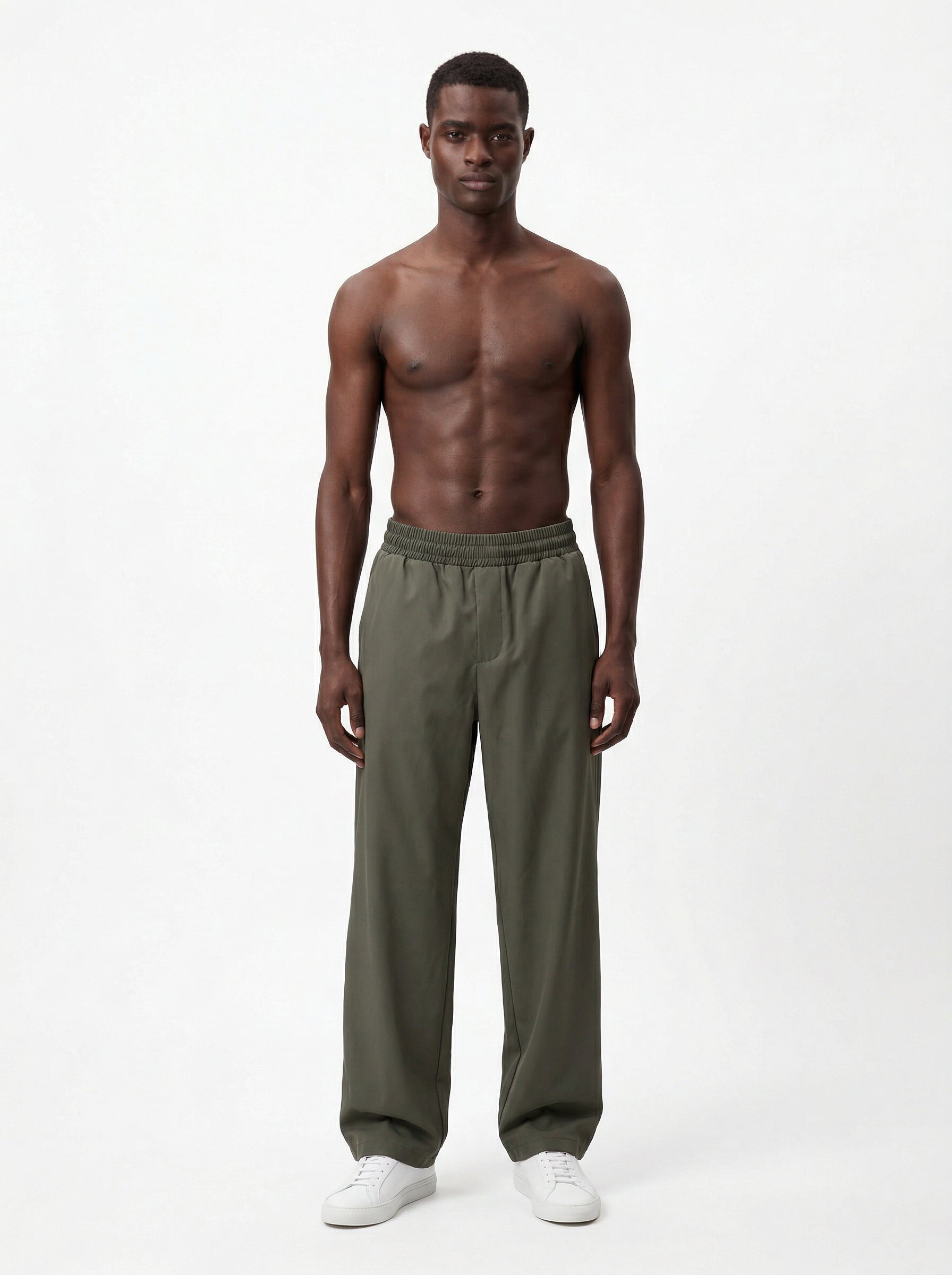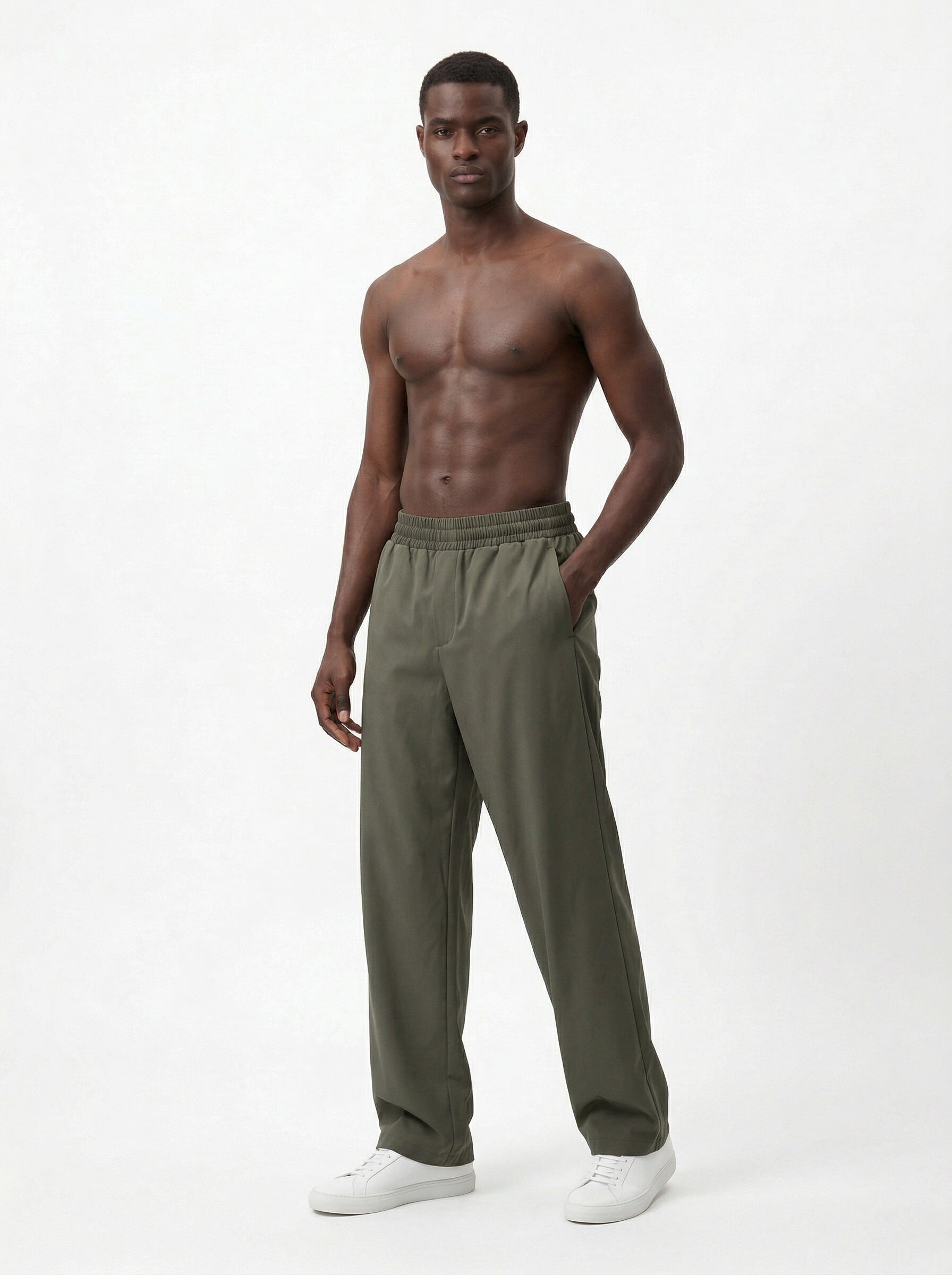 OLIVE LIGHTWEIGHT GABARDINE WIDE-LEG PANTS S26N
