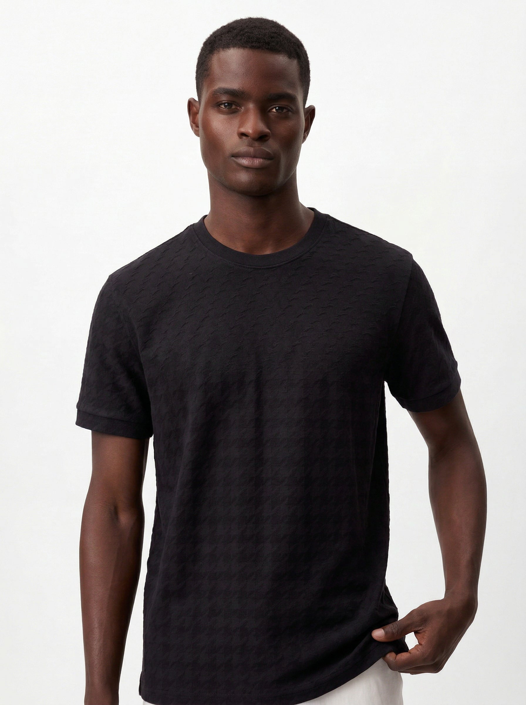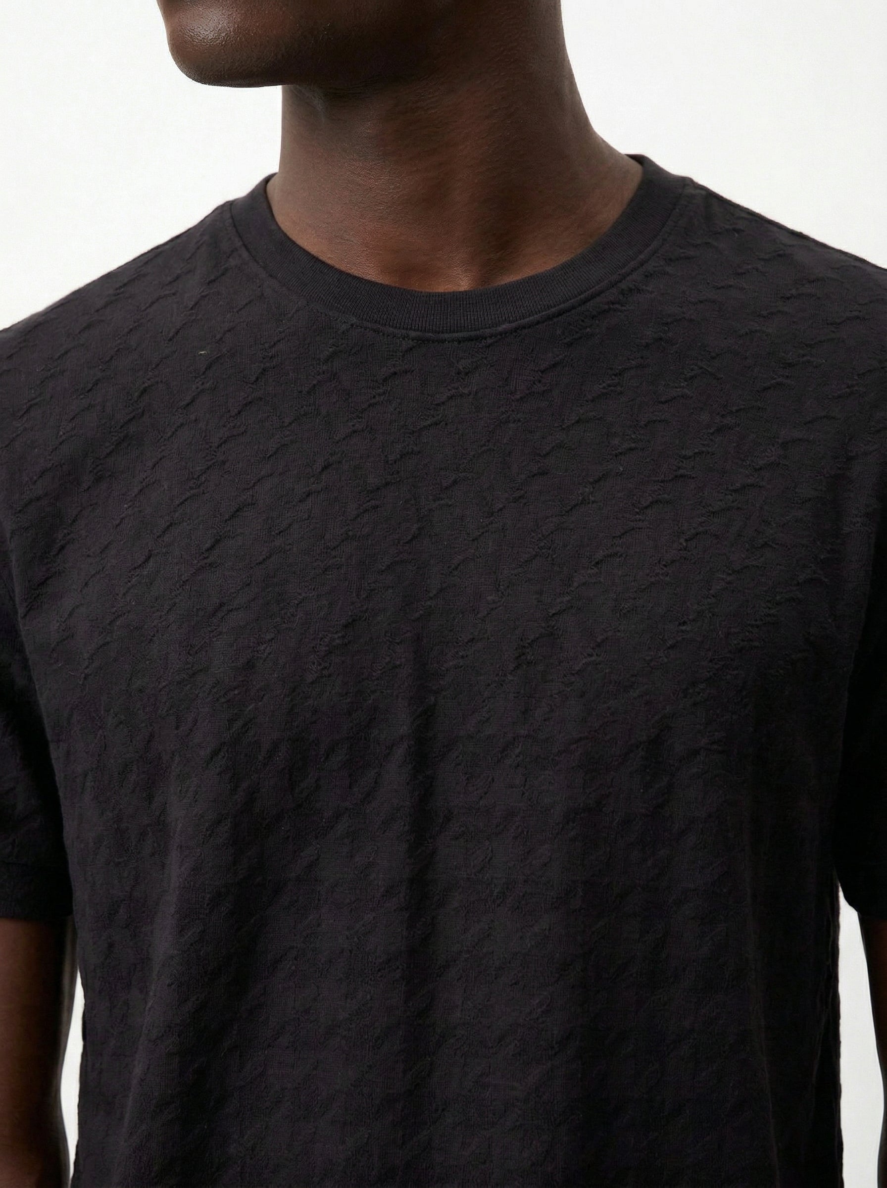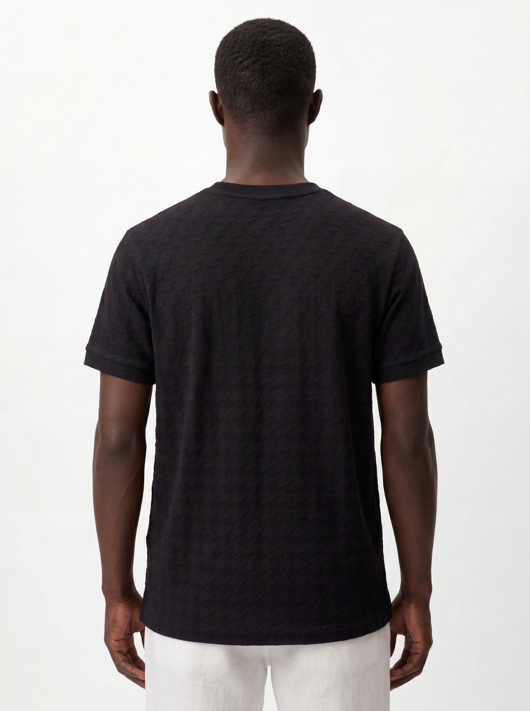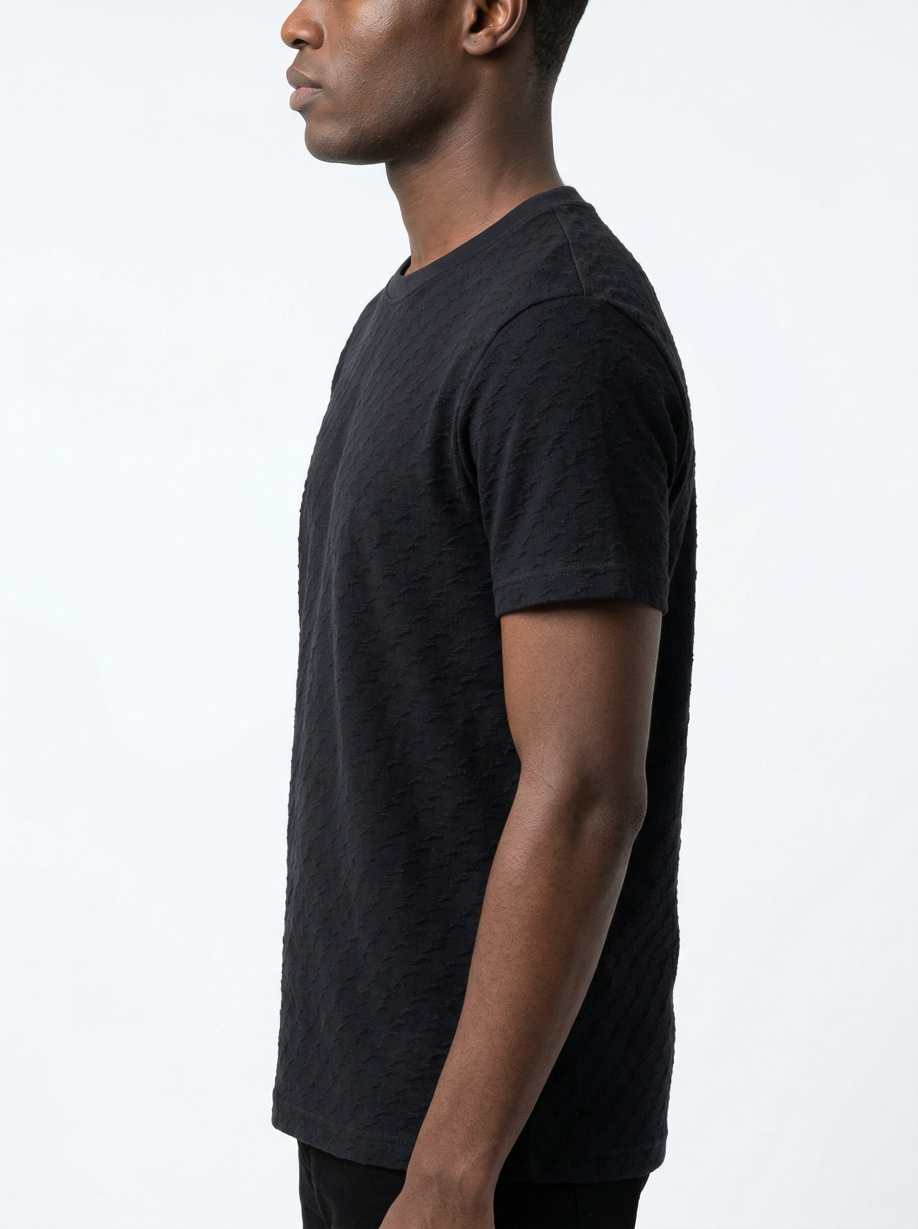 BLACK TONE-ON-TONE JACQUARD SLIM-FIT CREWNECK T-SHIRT S26N