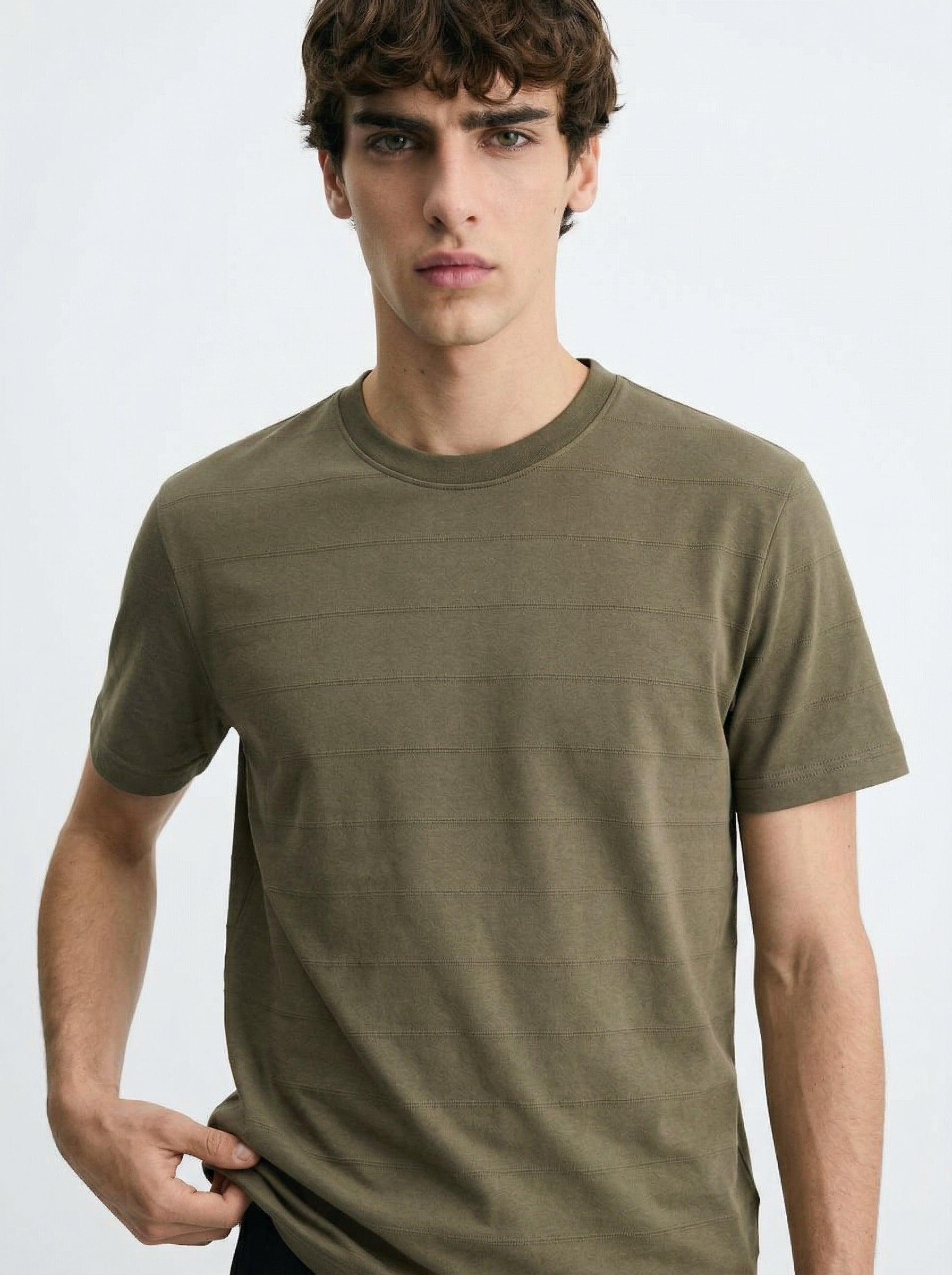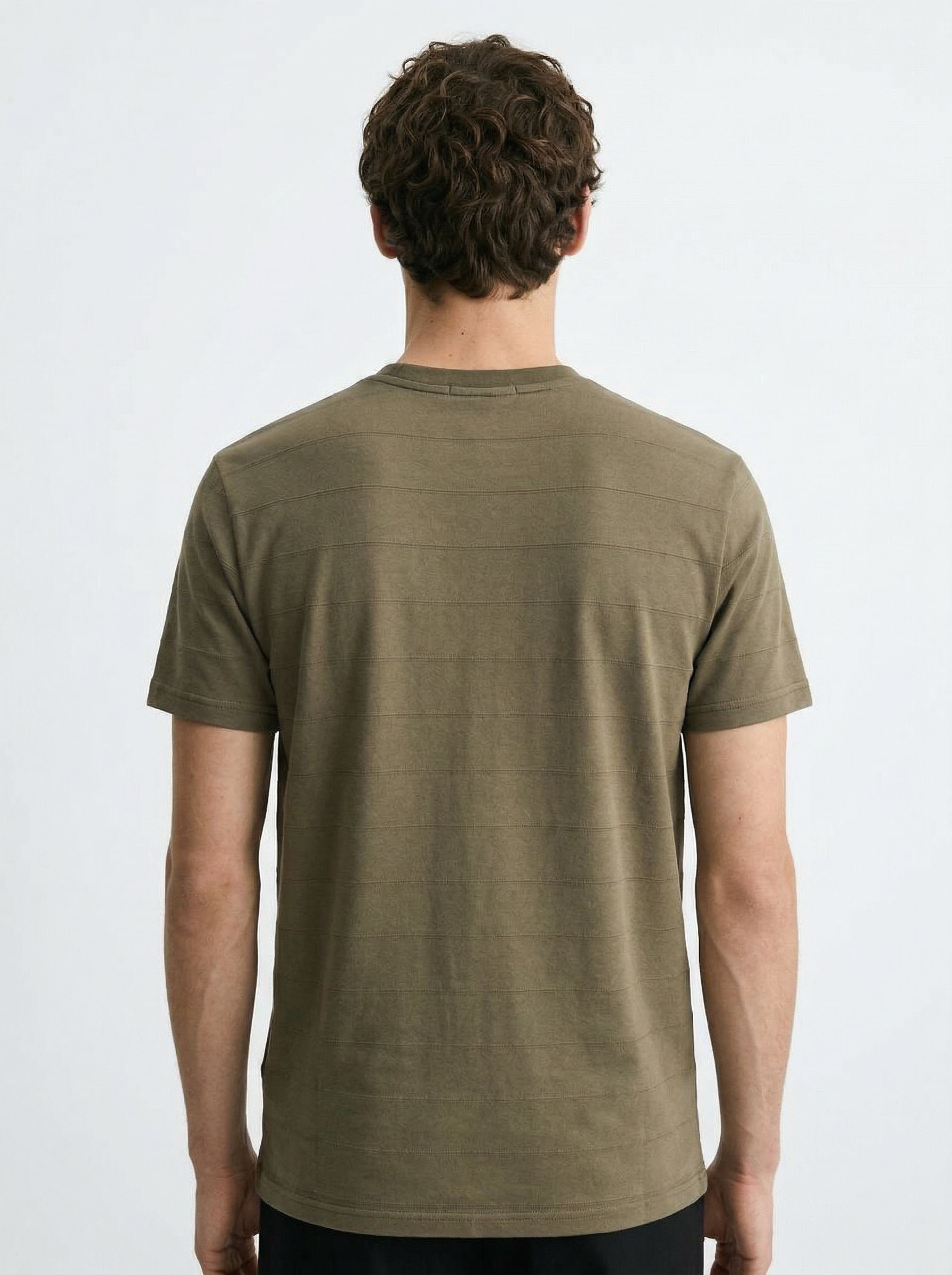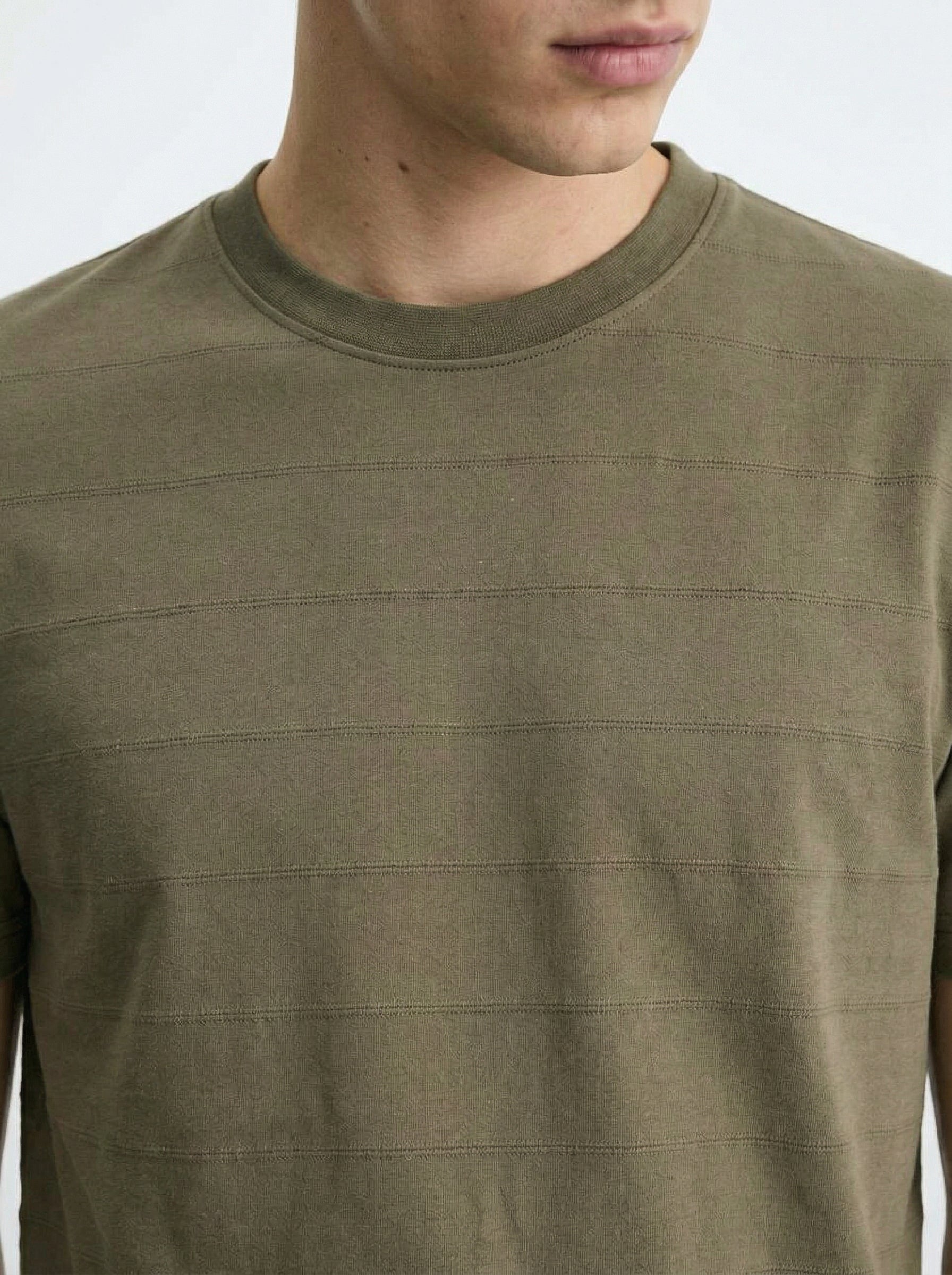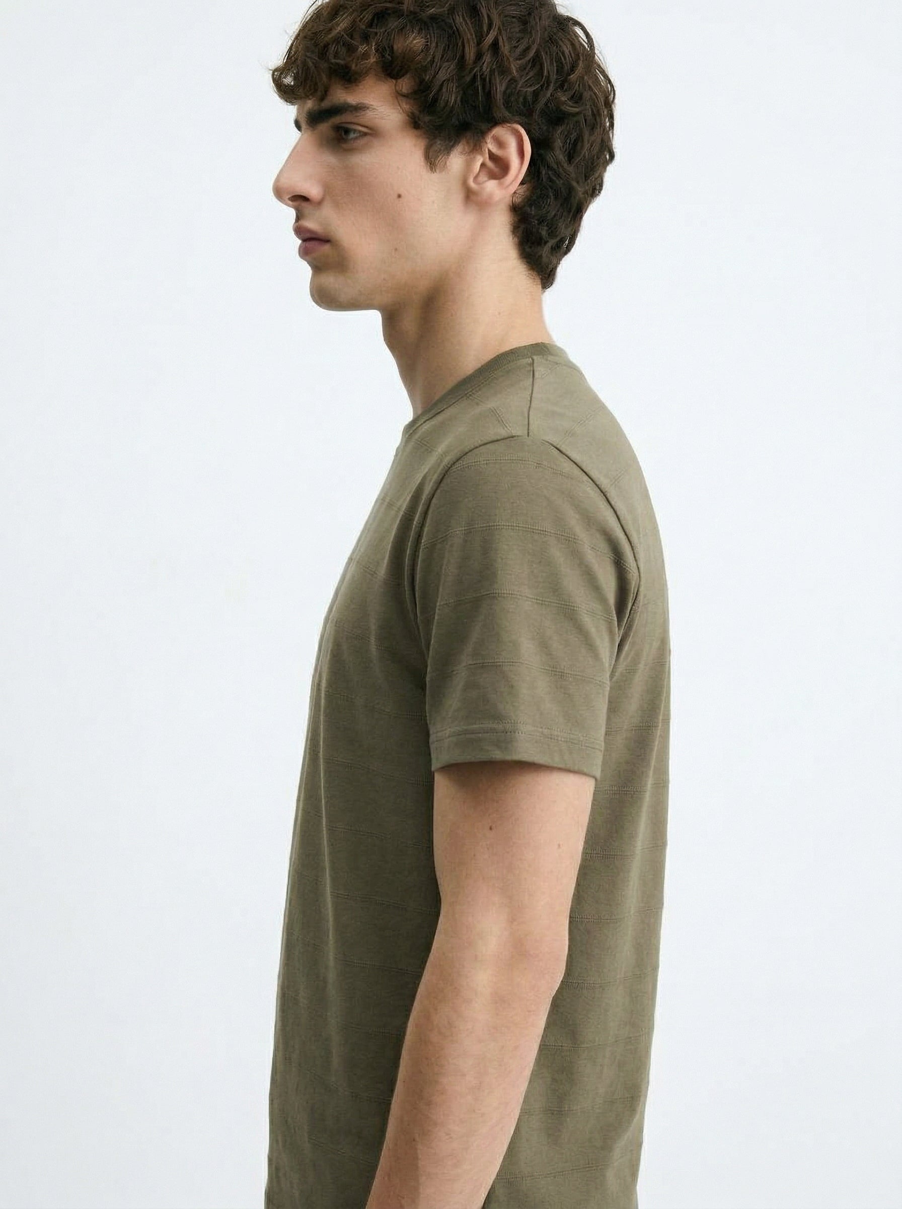 OLIVE TONAL HORIZONTAL STRIPE TEXTURED SLIM-FIT T-SHIRT S26N
