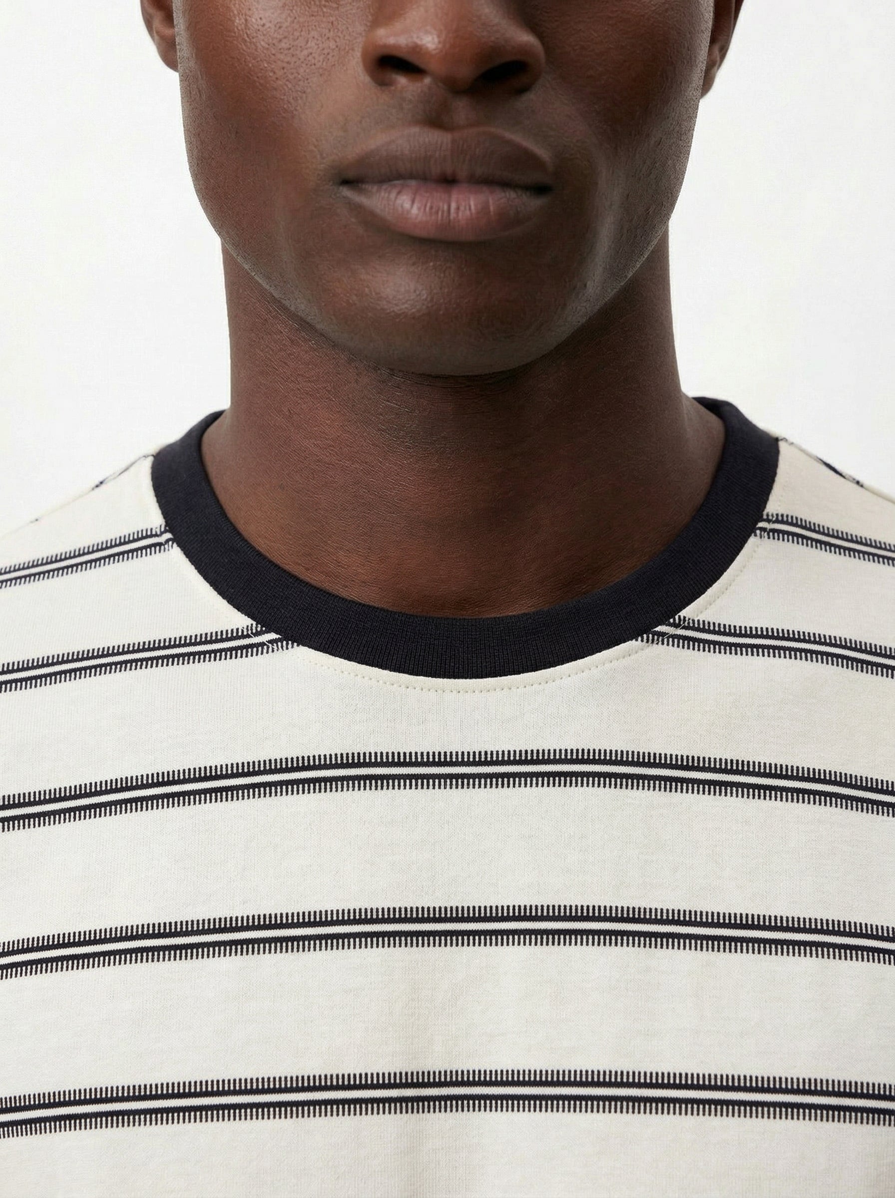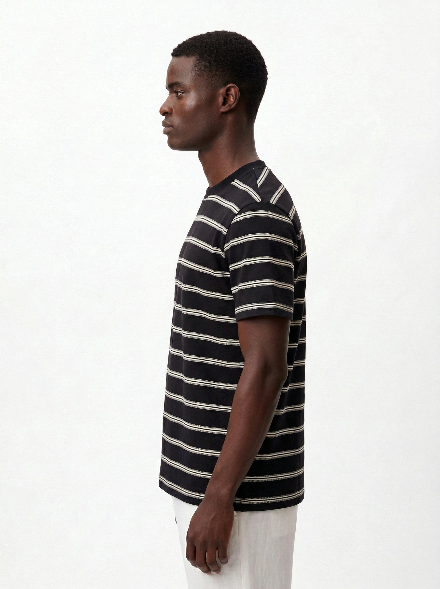 BLACK STRIPED CREWNECK SLIM-FIT T-SHIRT S26N