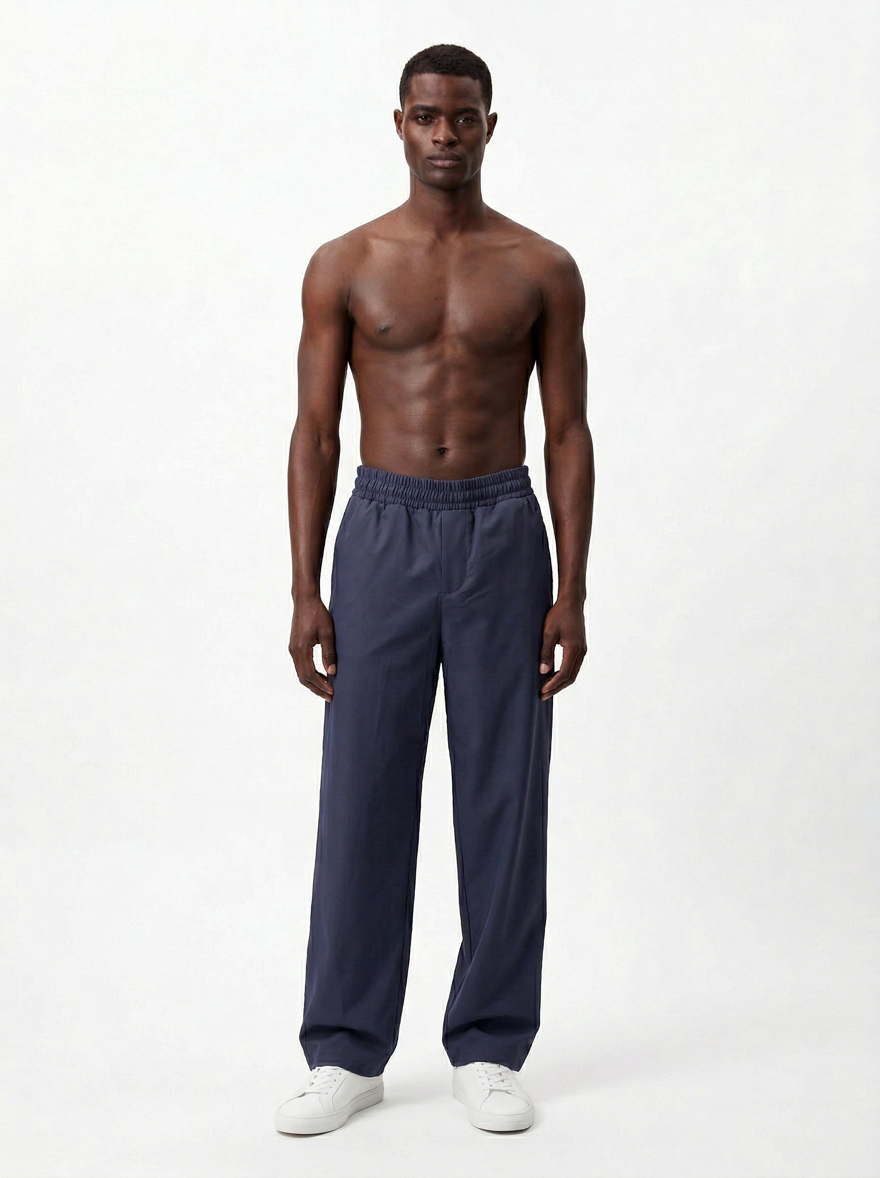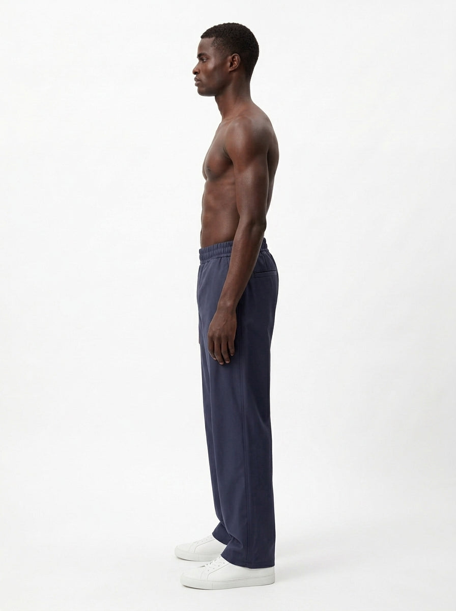 NAVY LIGHTWEIGHT GABARDINE WIDE-LEG PANTS S26N