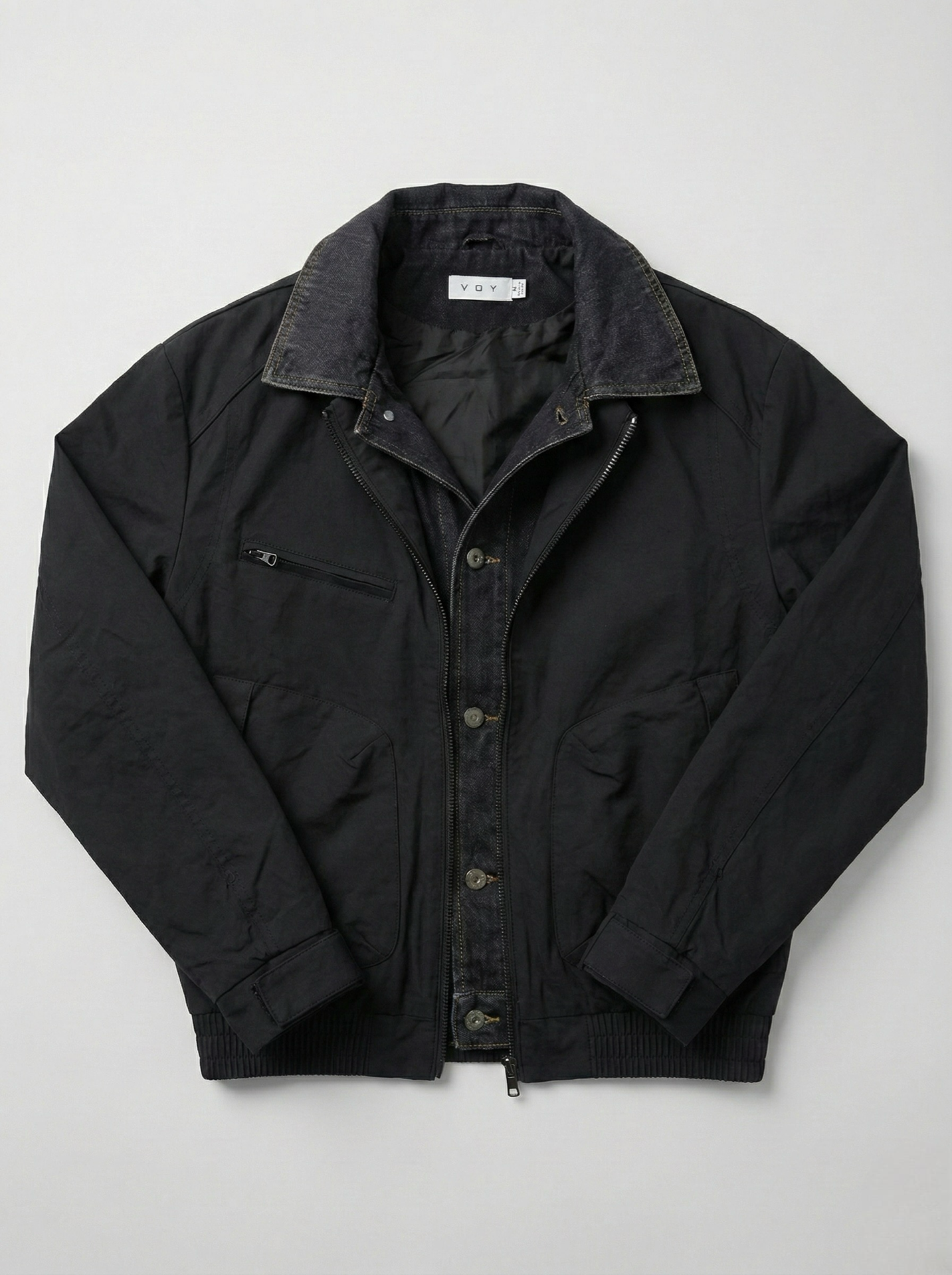 INK BLACK LAYERED BOMBER JACKET W25N