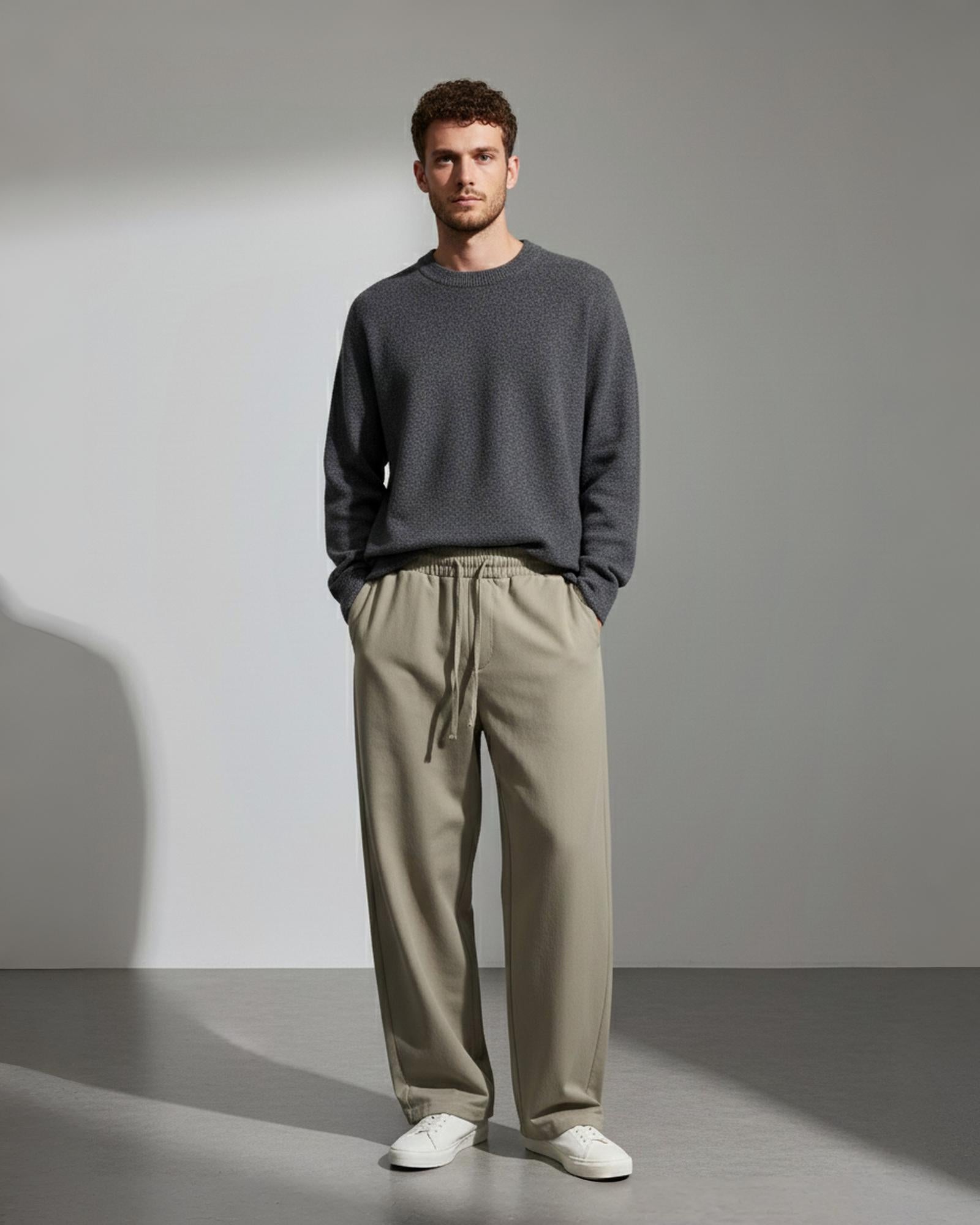 The beige Tapered Drawstring Chino Pant W25N blends tailored sophistication with laid-back comfort. Made from premium gabardine chino fabric, it delivers a smooth texture, clean drape, and all-day flexibility. The tapered fit and minimalist detailing make it ideal for both refined casualwear and contemporary everyday looks.