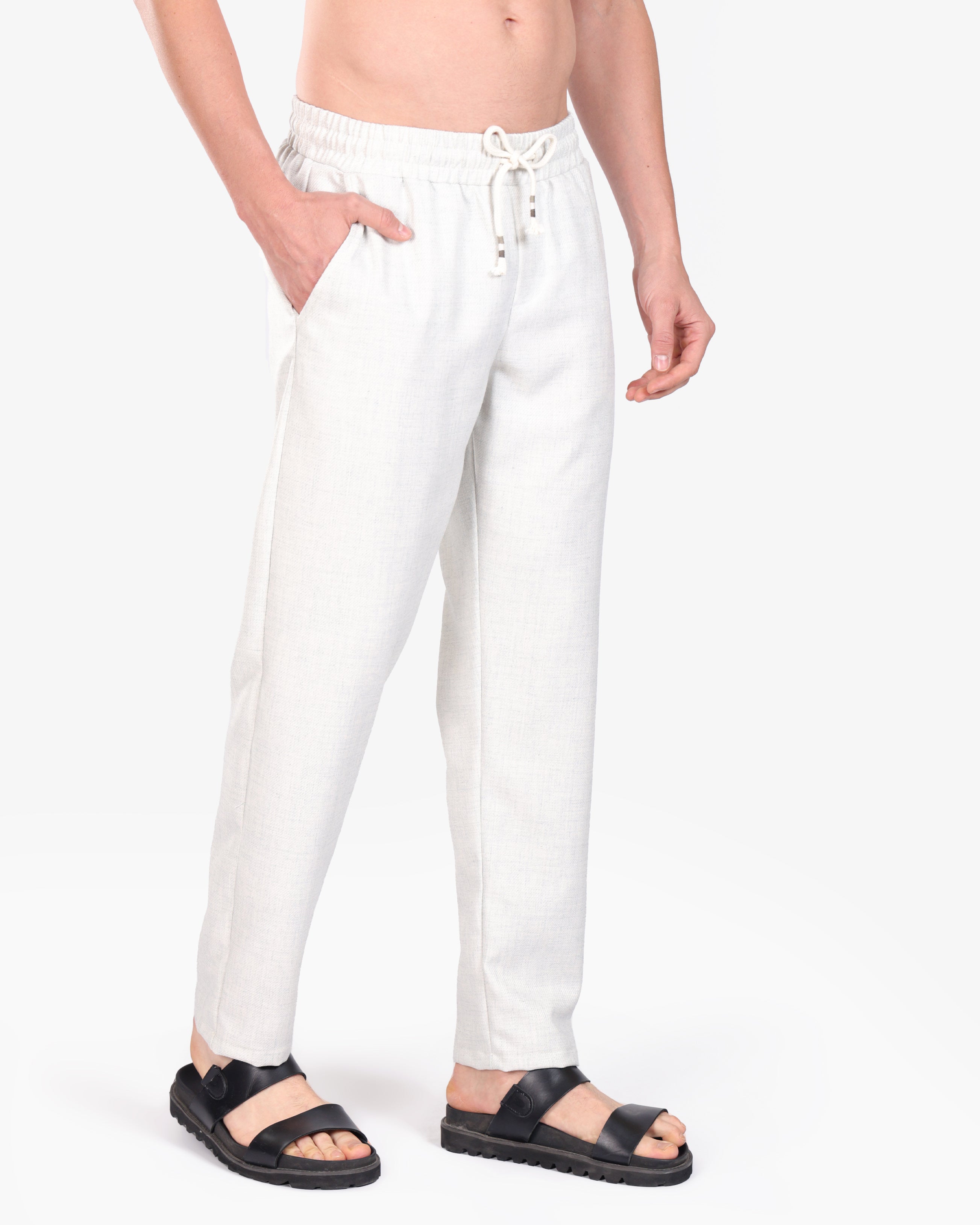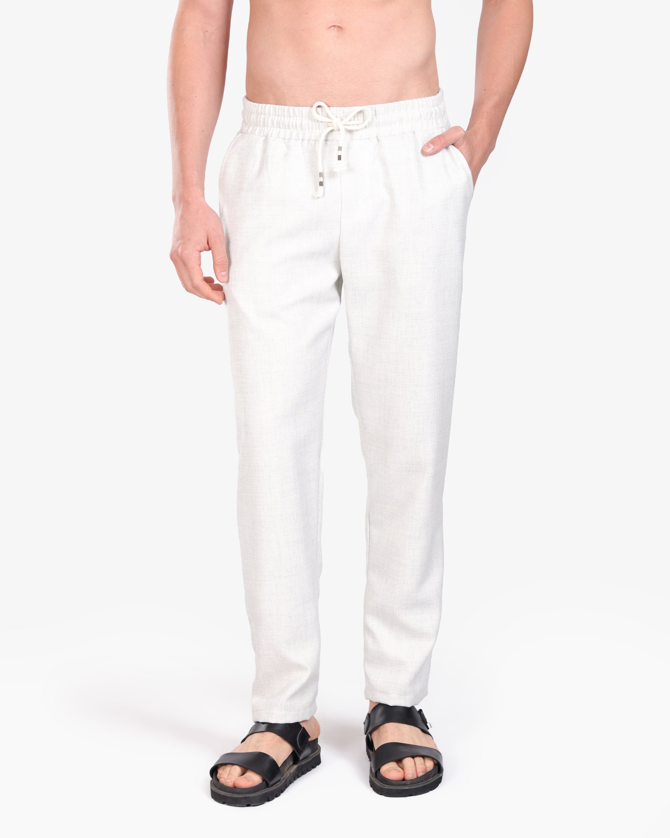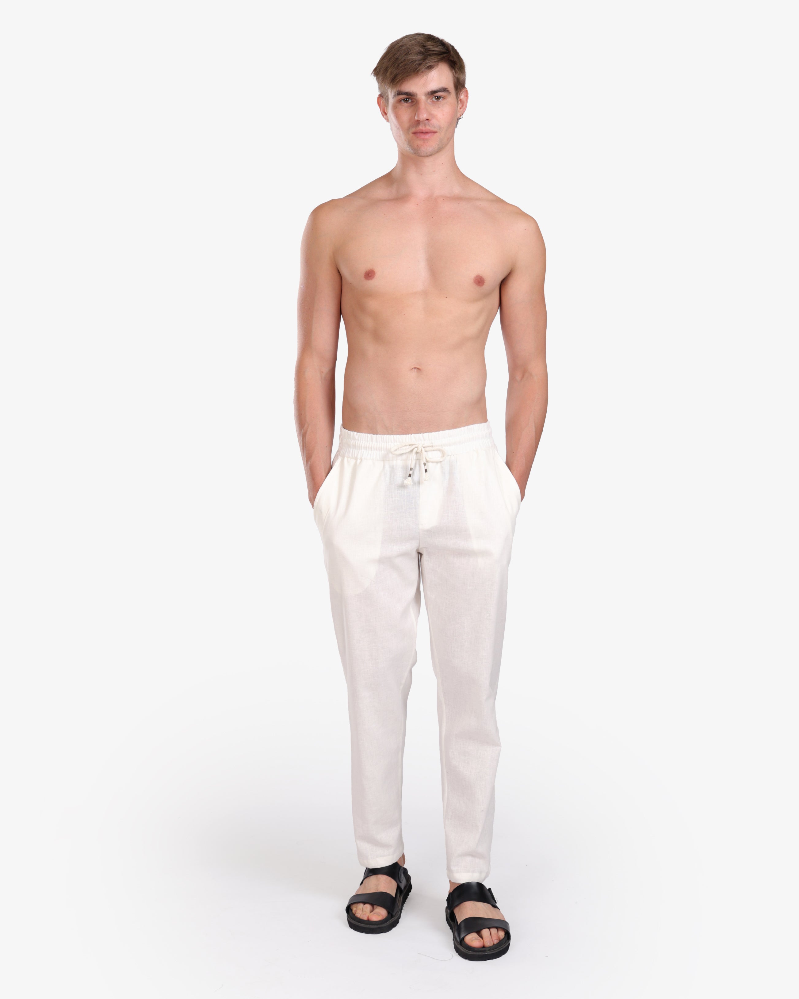 WHITE RELAXED 100% LINEN SLIM-FIT DRAWSTRING PANTS S26N