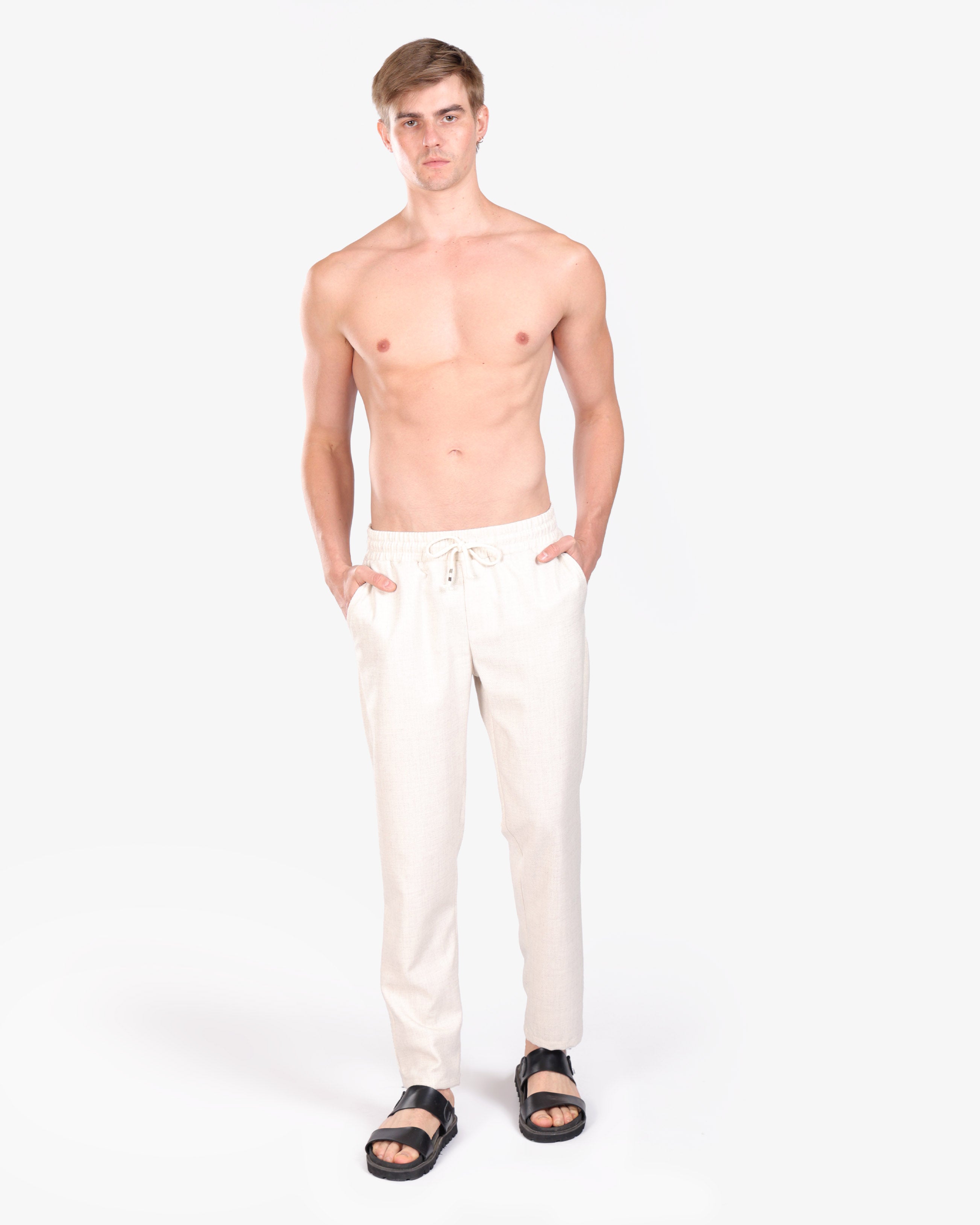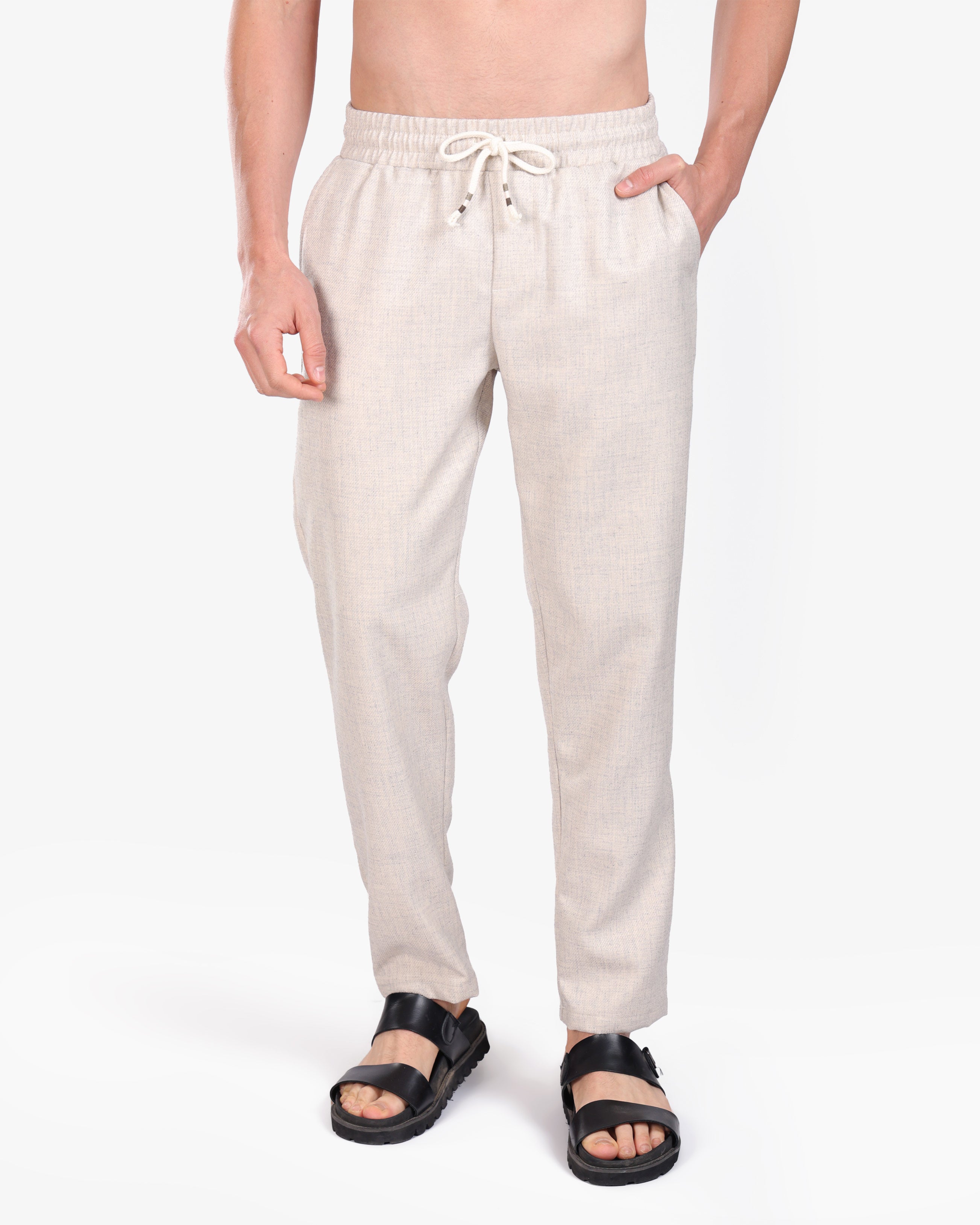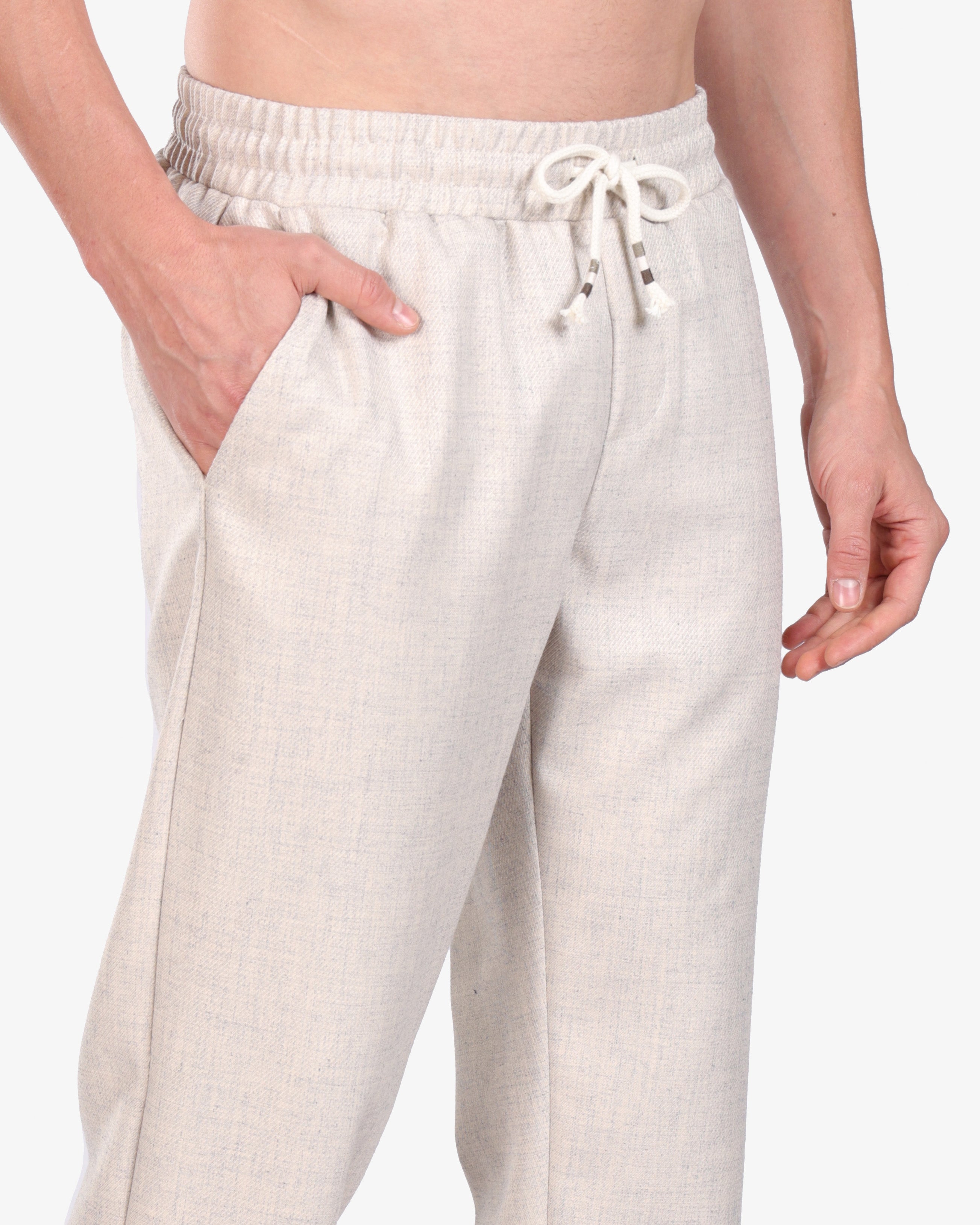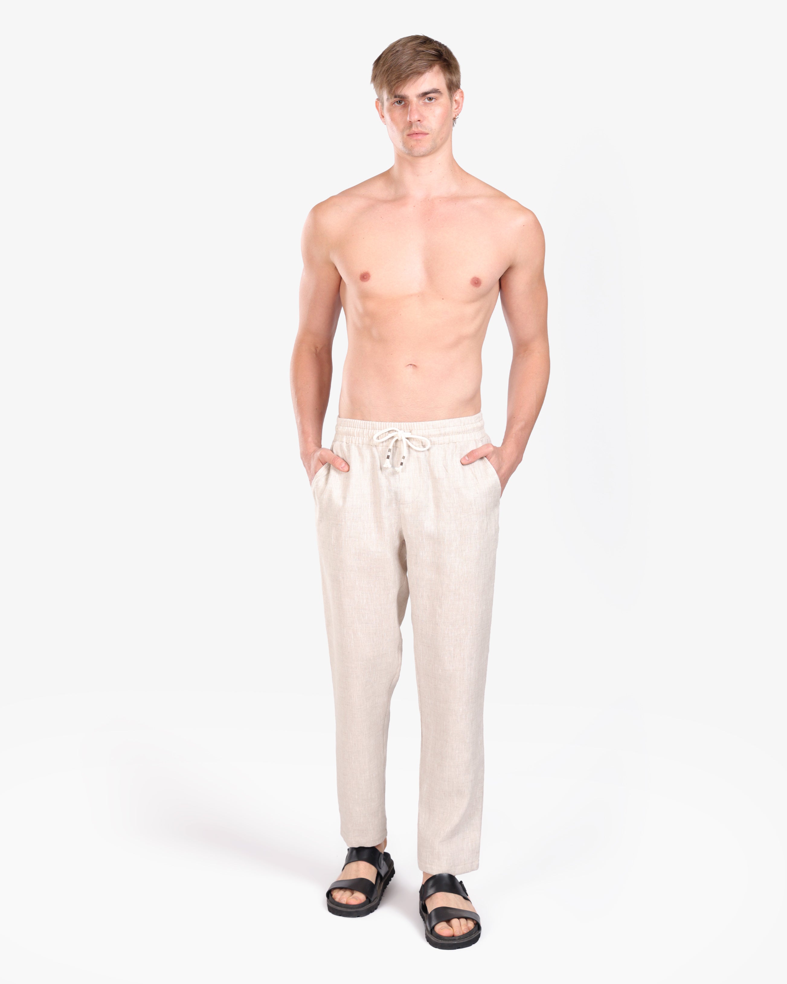 FLAX BEIGE RELAXED 100% LINEN SLIM-FIT DRAWSTRING PANTS S26N