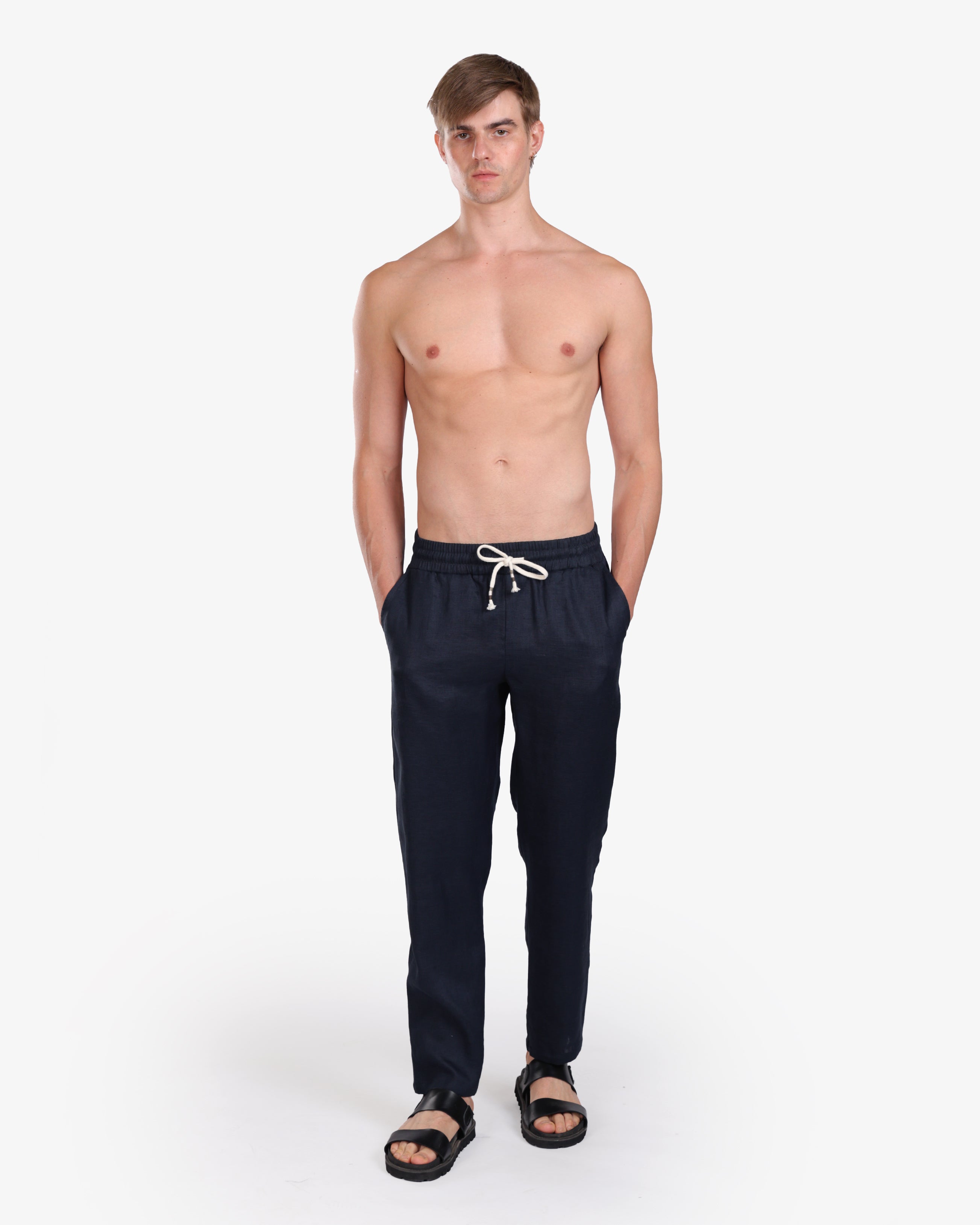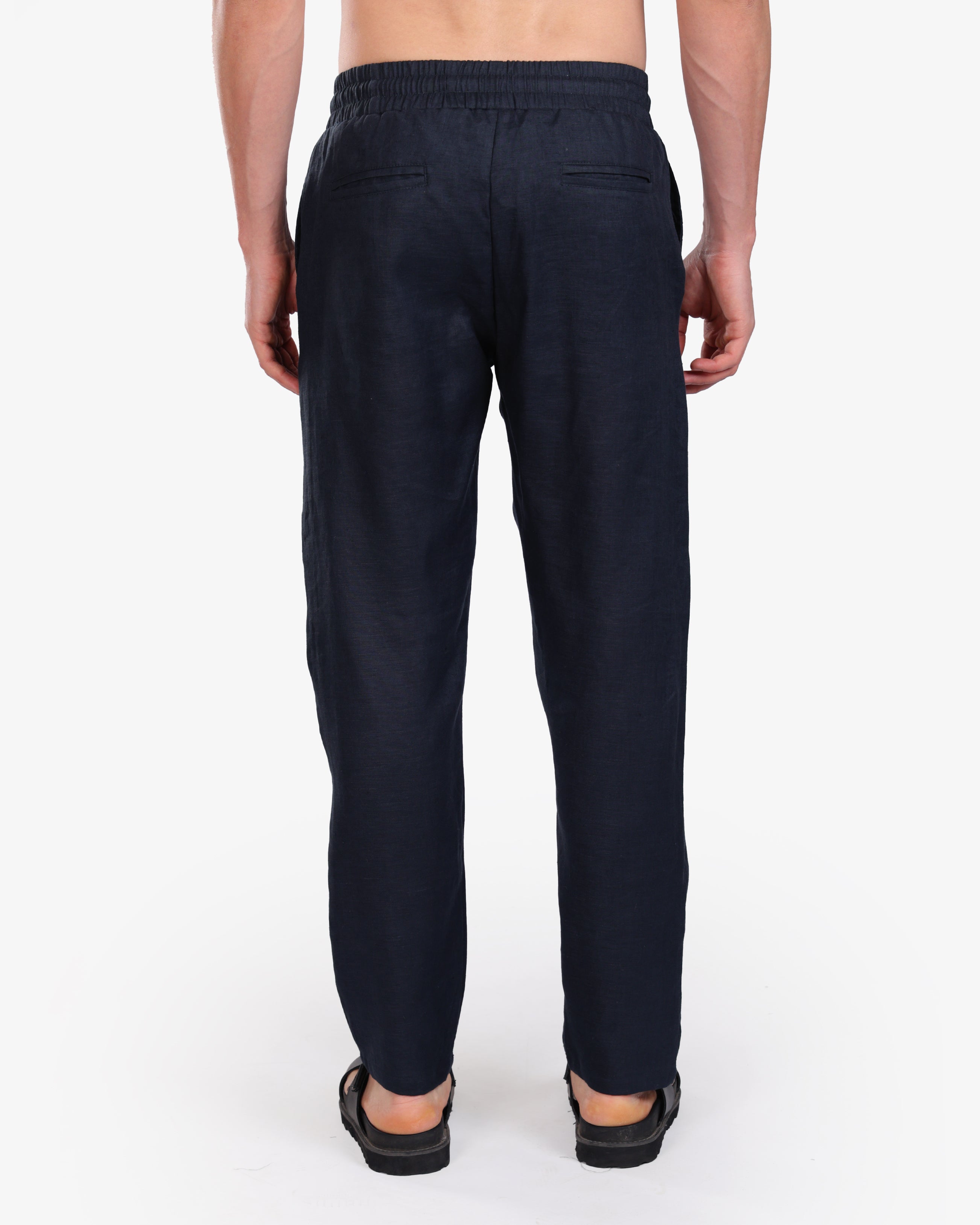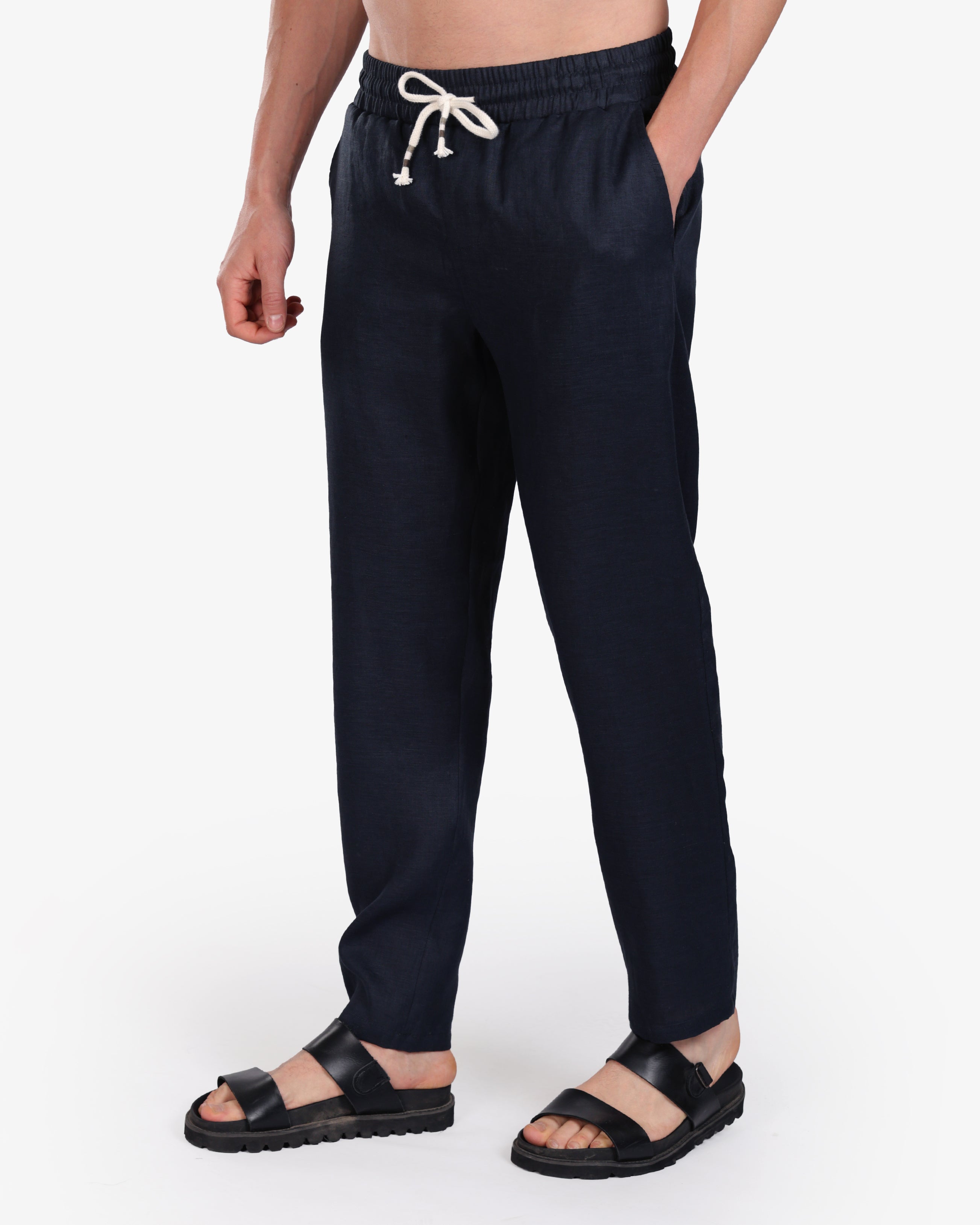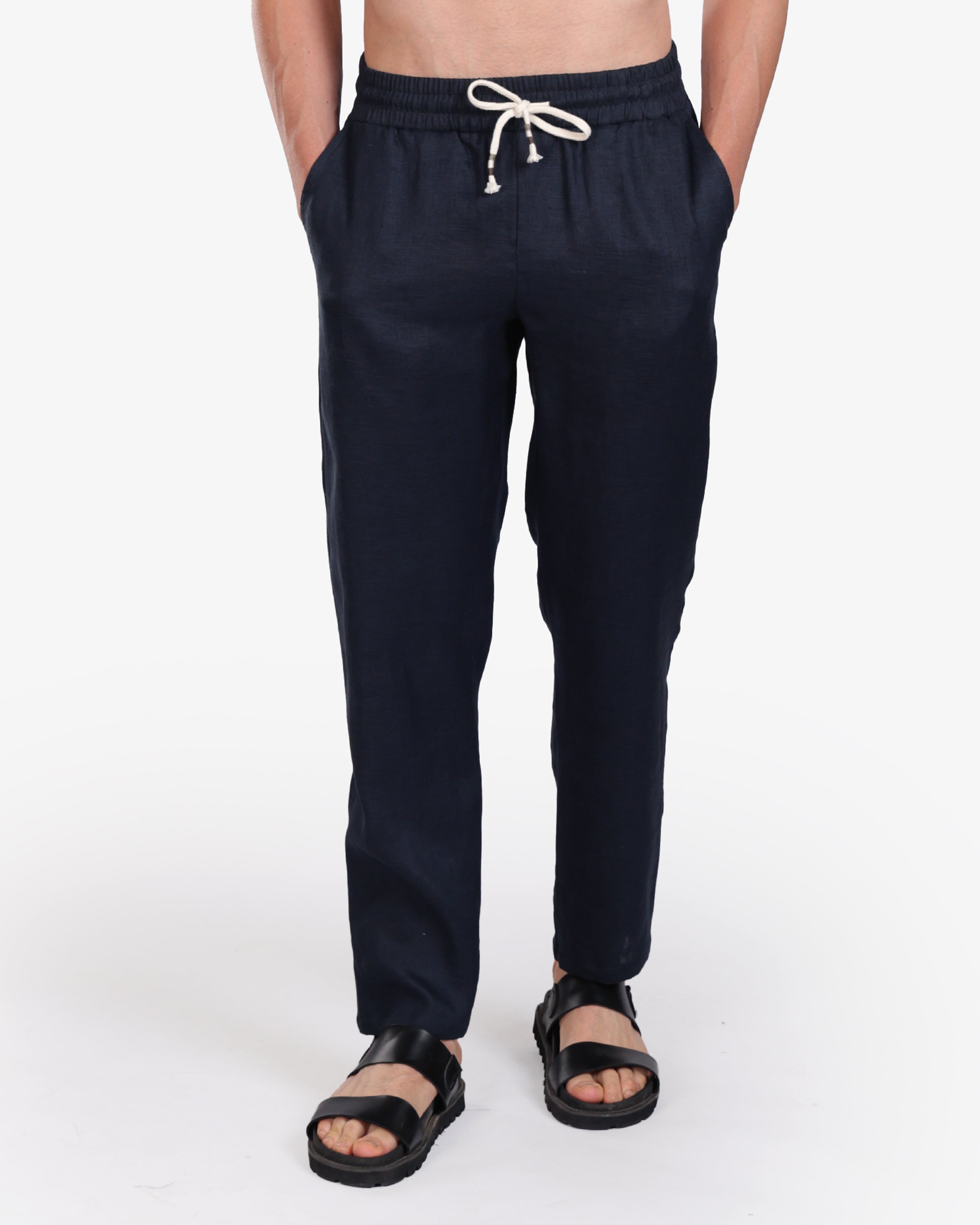 NAVY RELAXED 100% LINEN SLIM-FIT DRAWSTRING PANTS S26N