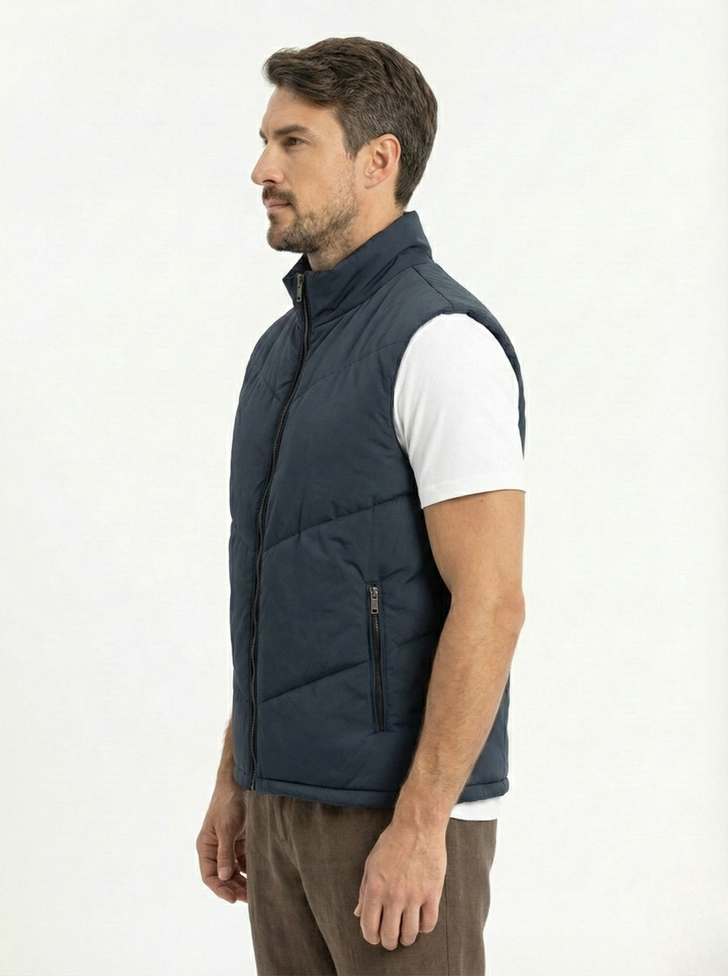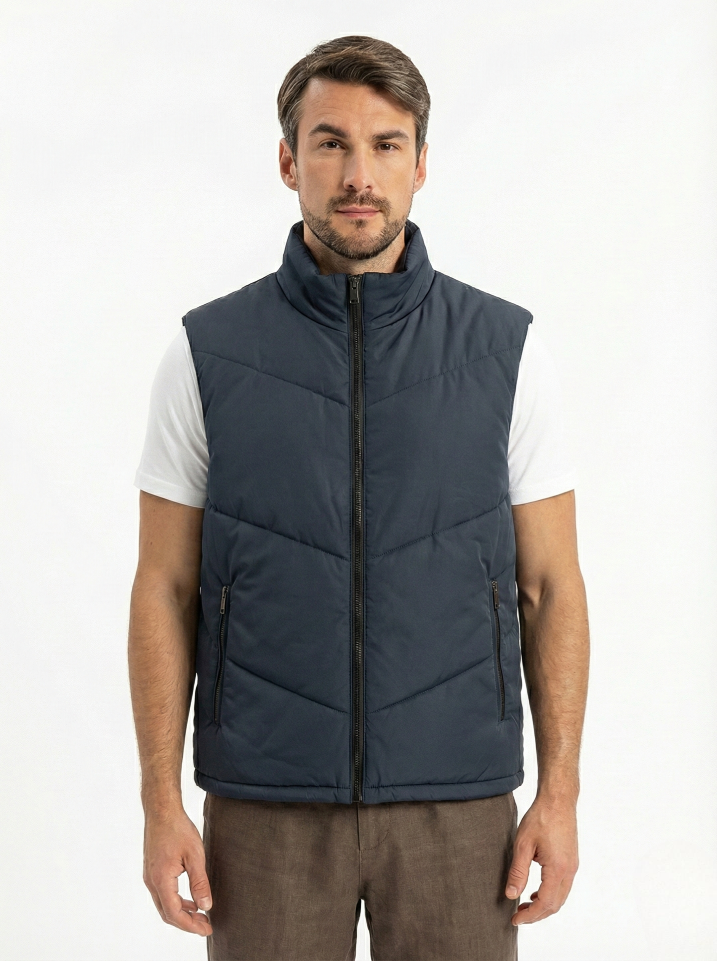 Upgrade your layering game with this navy Quilted Puffer Vest — a sleek and versatile piece designed for modern comfort. Crafted with lightweight insulation and a structured quilted design, it delivers warmth without the bulk. Perfect for transitional weather, this vest pairs effortlessly with sweatshirts, hoodies, or knitwear for a casual yet refined look.