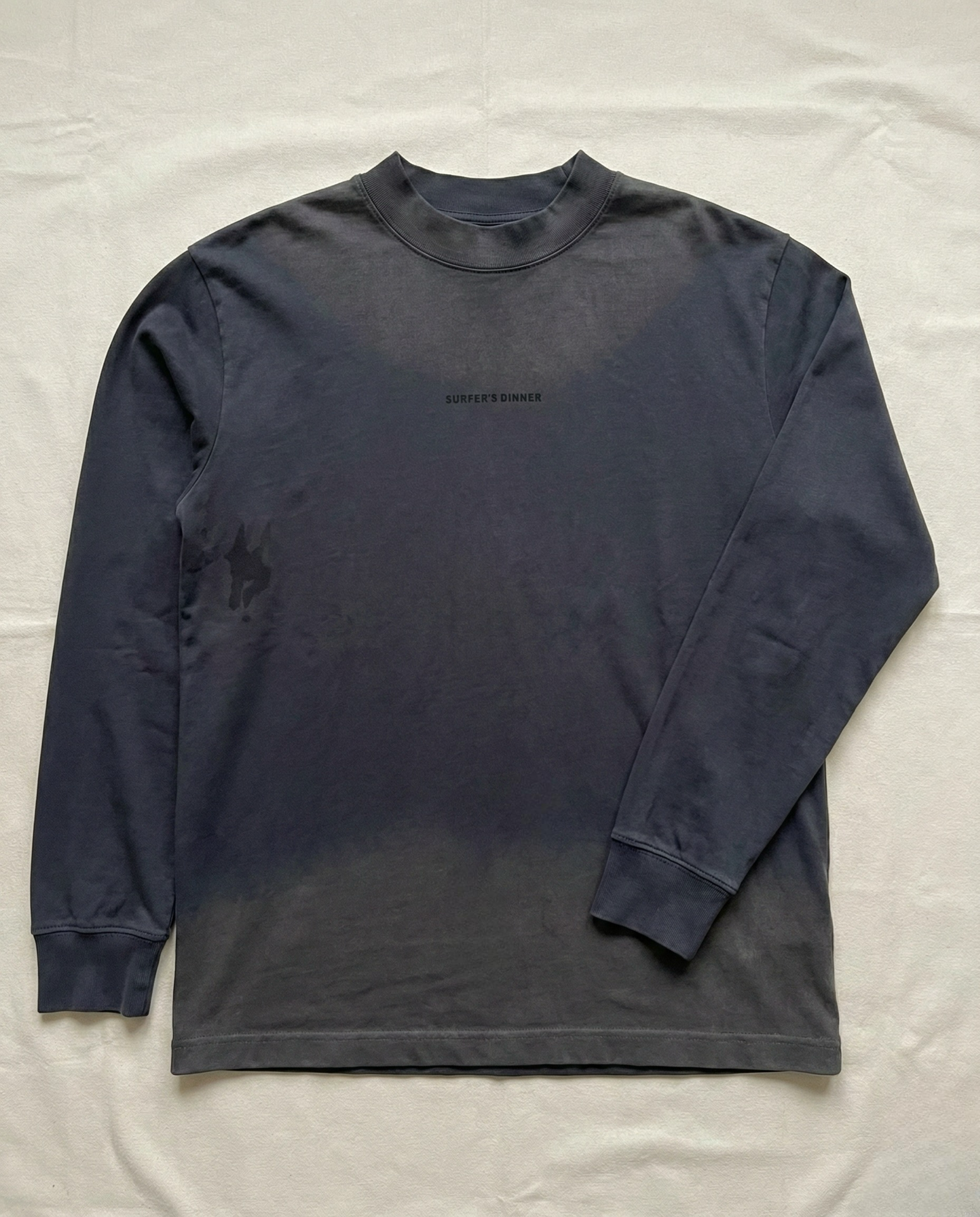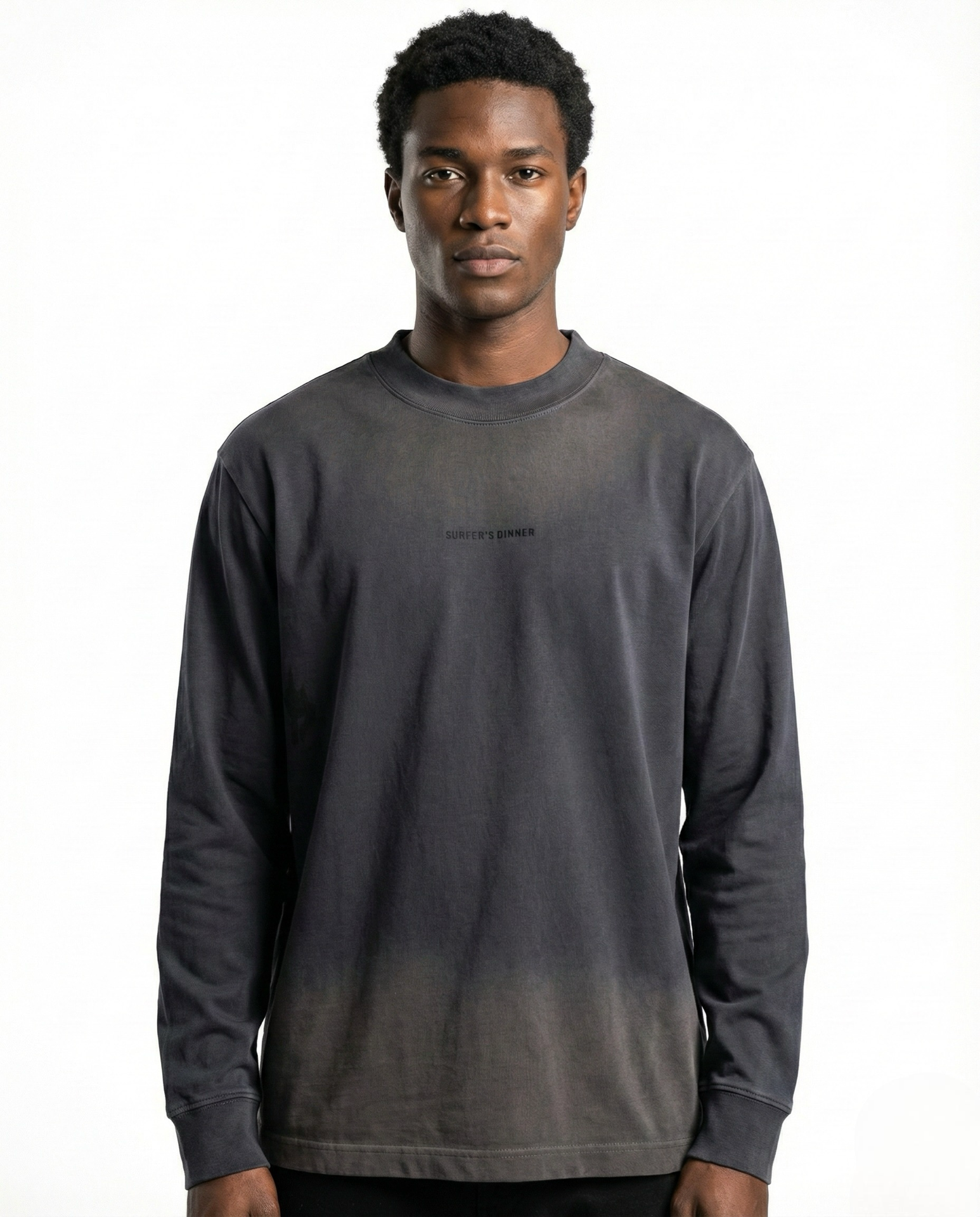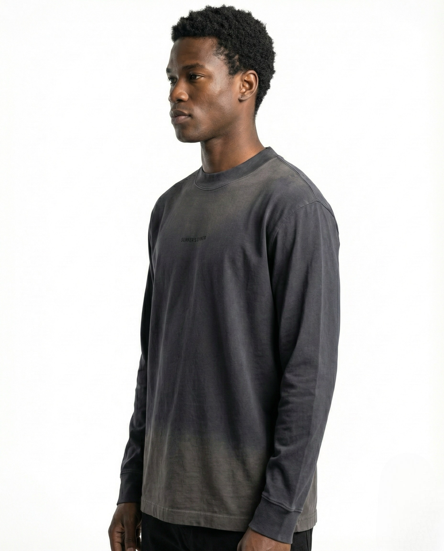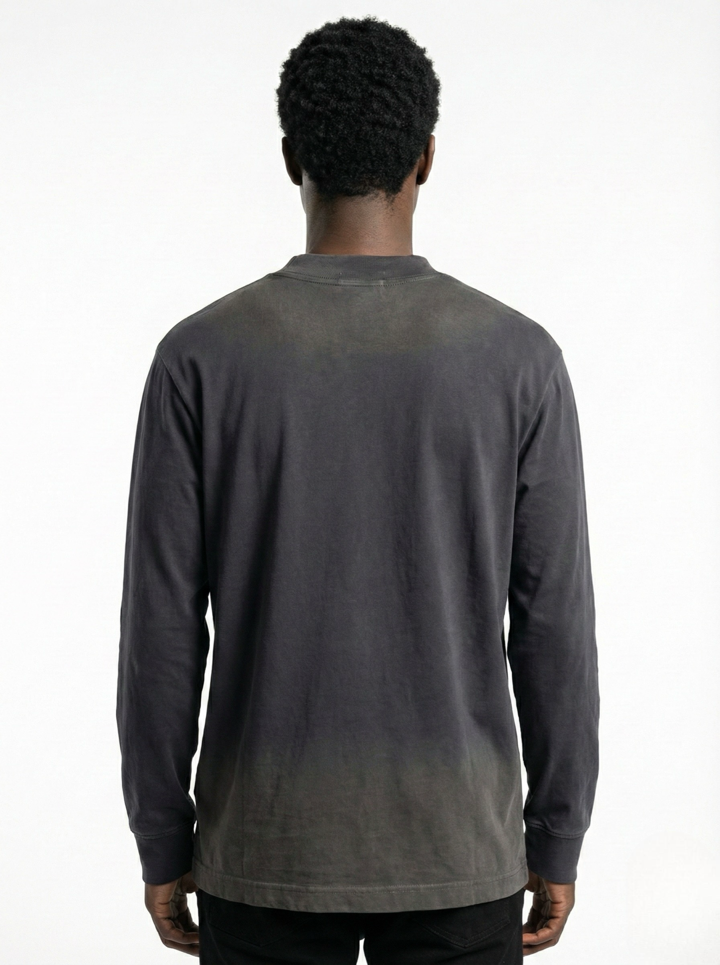 Long-sleeve tee crafted from soft premium cotton with a smooth, natural hand feel. Designed with a subtle surface-wash effect that creates natural fade transitions across the chest and lower body, giving each piece a distinctive washed character and lived-in depth.