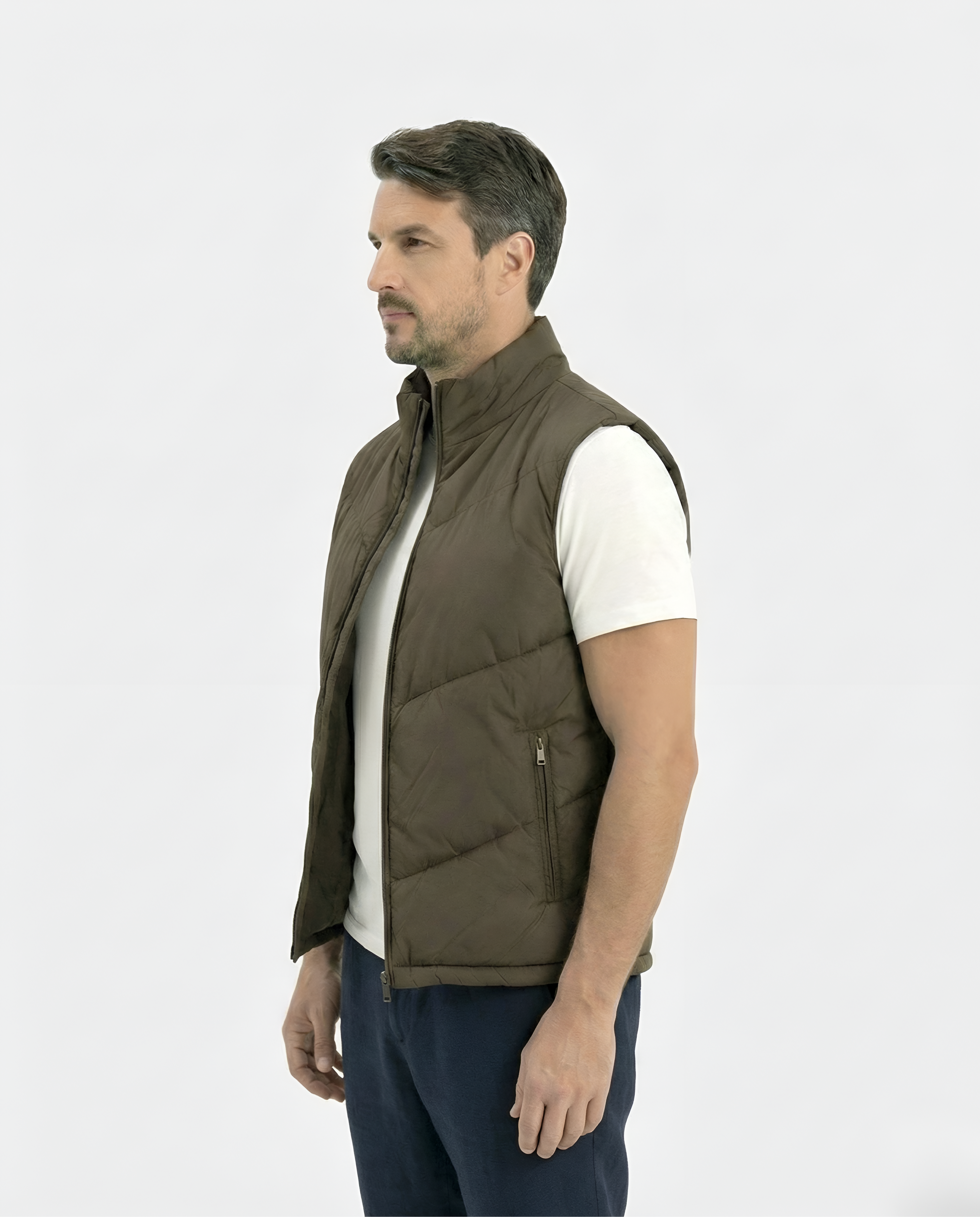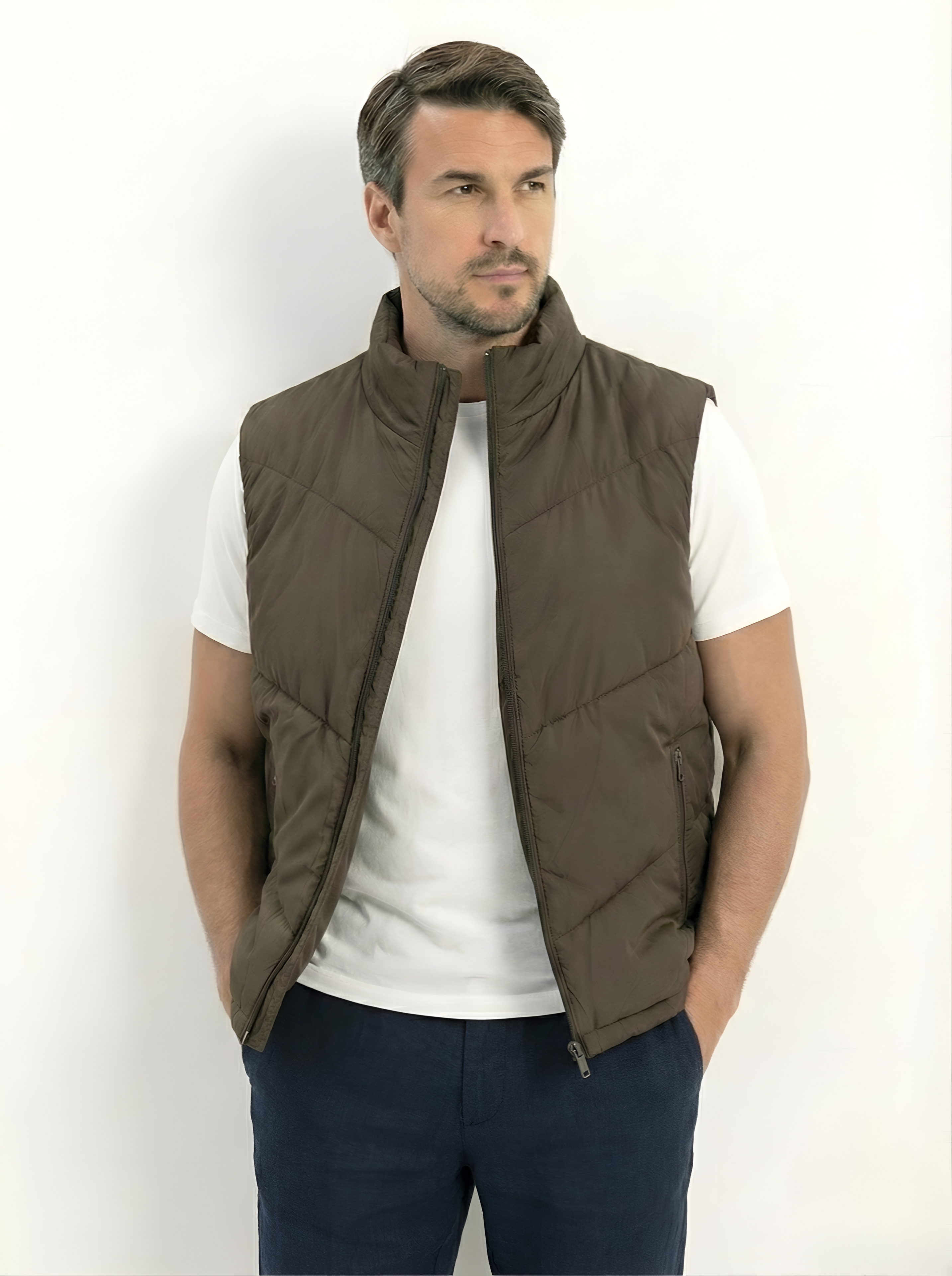 Upgrade your layering game with this Brown Quilted Puffer Vest — a sleek and versatile piece designed for modern comfort. Crafted with lightweight insulation and a structured quilted design, it delivers warmth without the bulk. Perfect for transitional weather, this vest pairs effortlessly with sweatshirts, hoodies, or knitwear for a casual yet refined look.