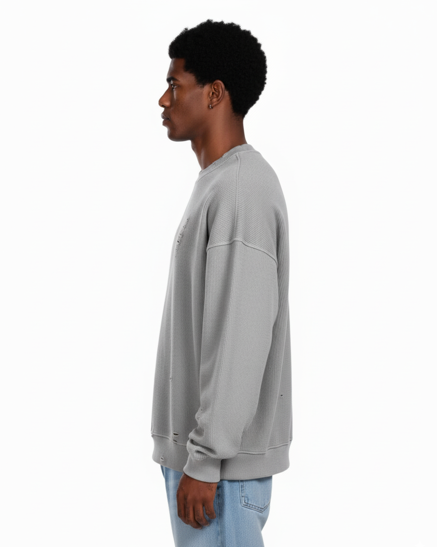 ASH GREY DISTRESSED WAFFLE CREWNECK W25N