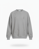 Purposeful distressing details are thoughtfully placed across the front, sleeves, and hem — giving the garment a lived-in, urban worn-in aesthetic without compromising comfort or structure.
