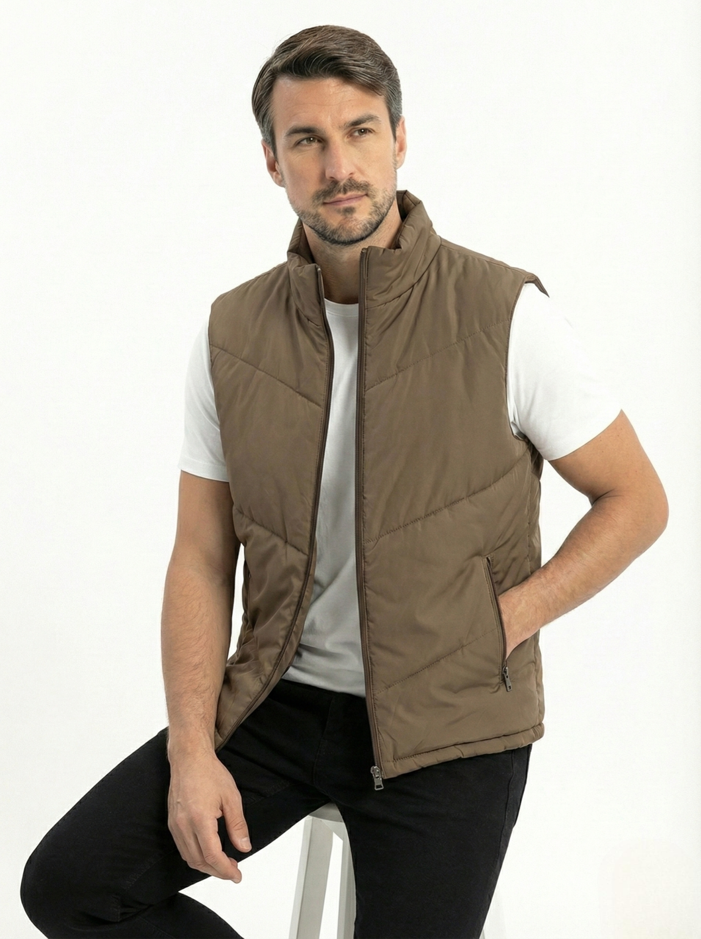 Upgrade your layering game with this khaki Quilted Puffer Vest — a sleek and versatile piece designed for modern comfort. Crafted with lightweight insulation and a structured quilted design, it delivers warmth without the bulk. Perfect for transitional weather, this vest pairs effortlessly with sweatshirts, hoodies, or knitwear for a casual yet refined look.