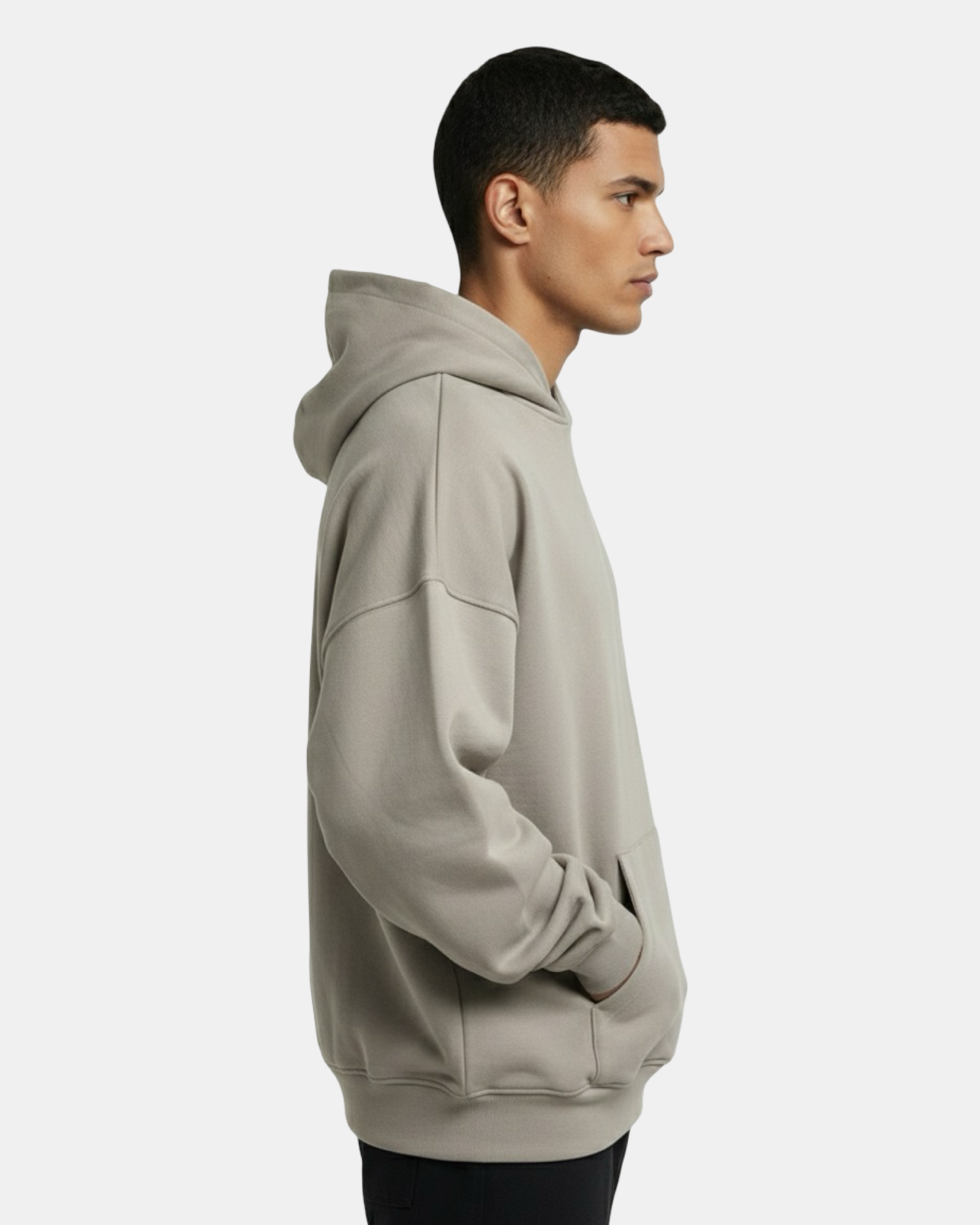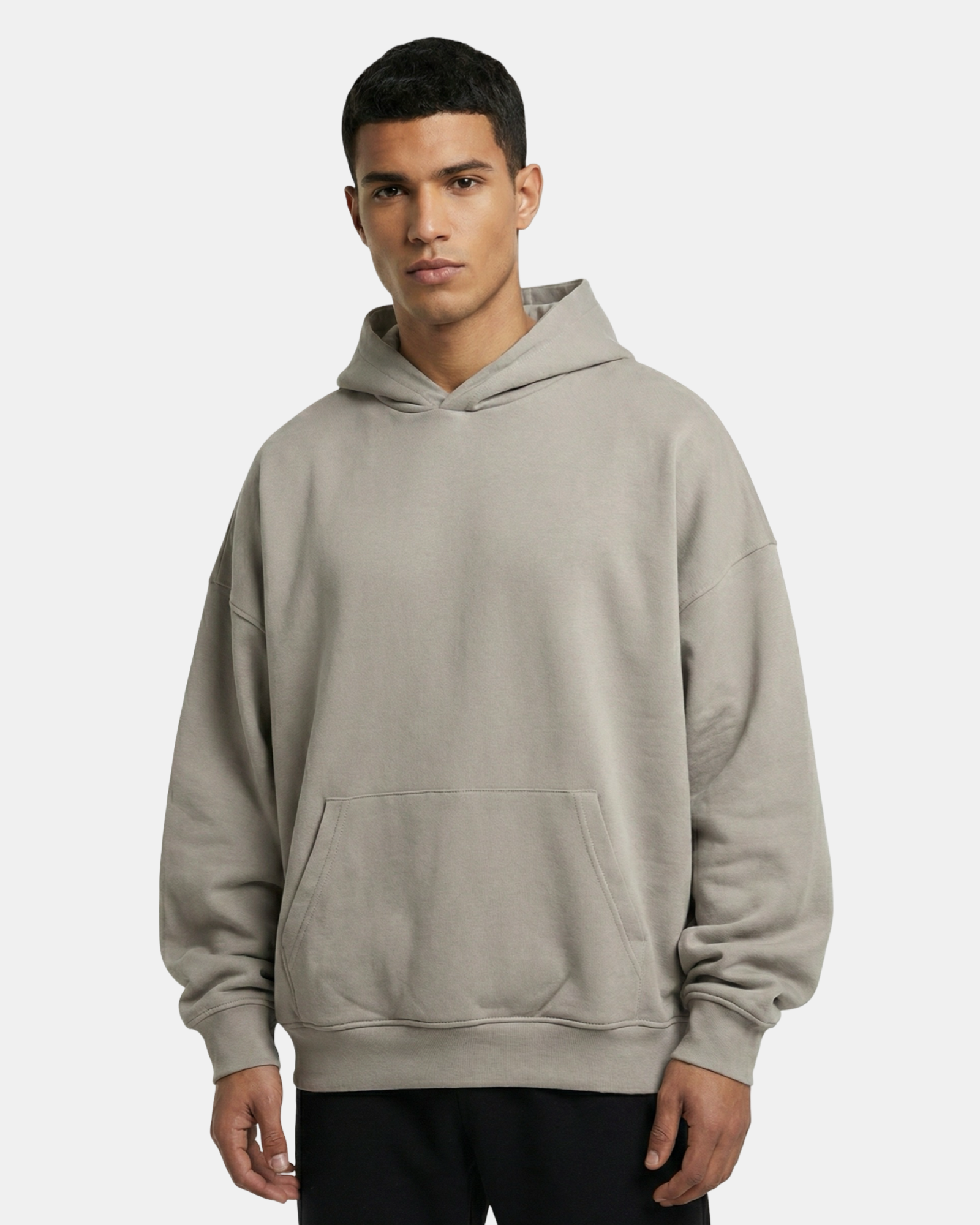 This lightweight oversized hoodie comes in a muted Dusted Taupe tone — a refined, desaturated beige-grey blend designed for modern timeless wardrobes. Featuring a relaxed drop-shoulder silhouette with naturally loose sleeves, it delivers an airy drape without compromising structure.